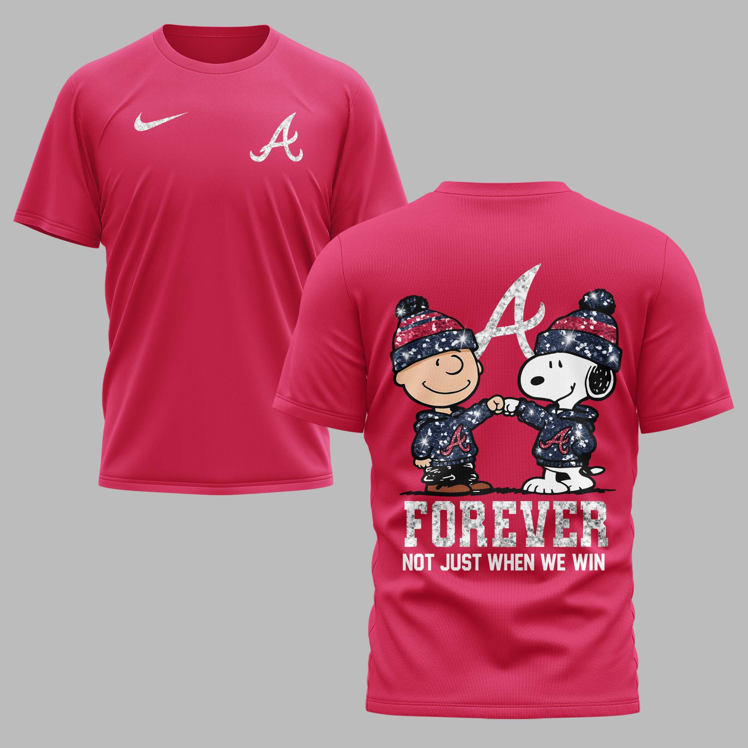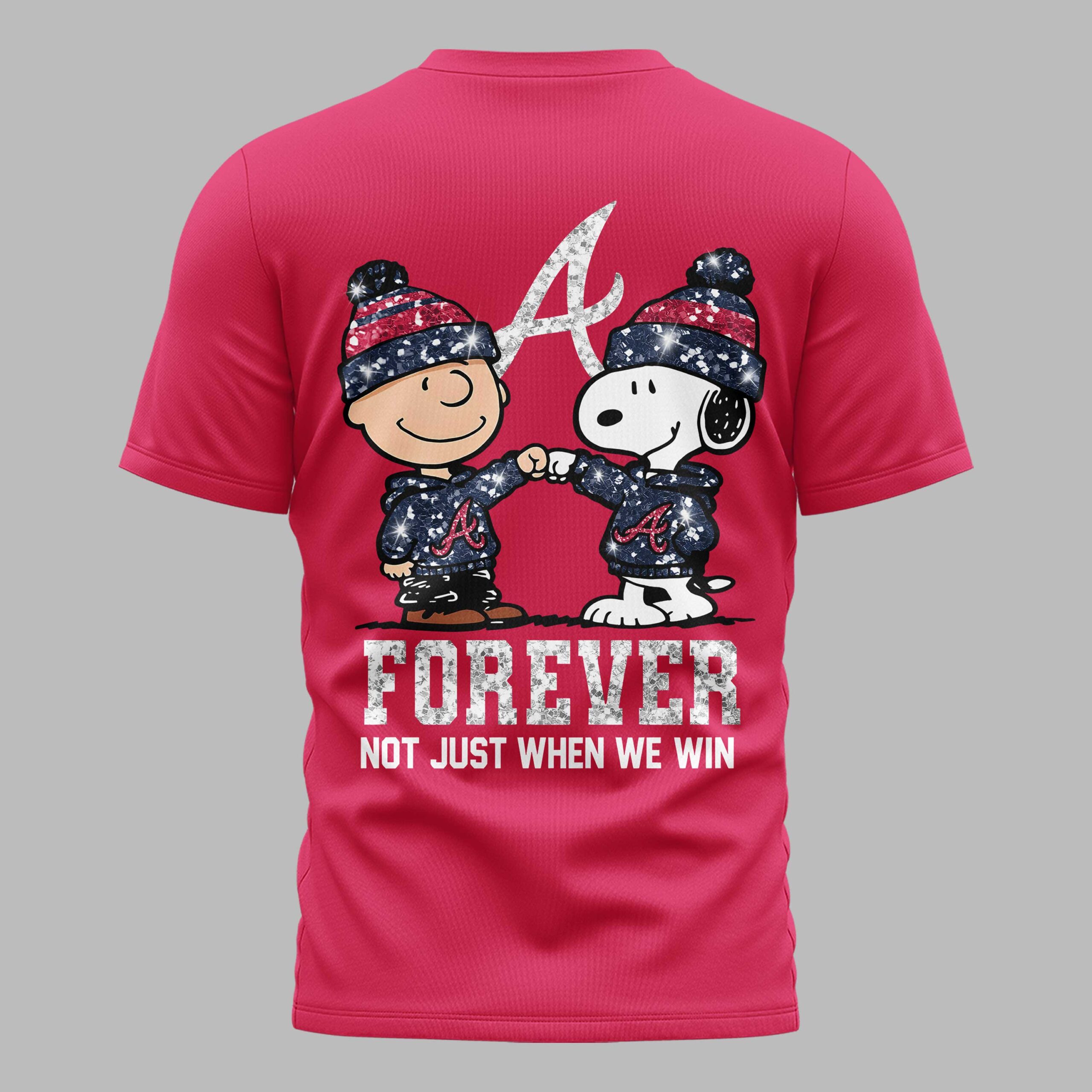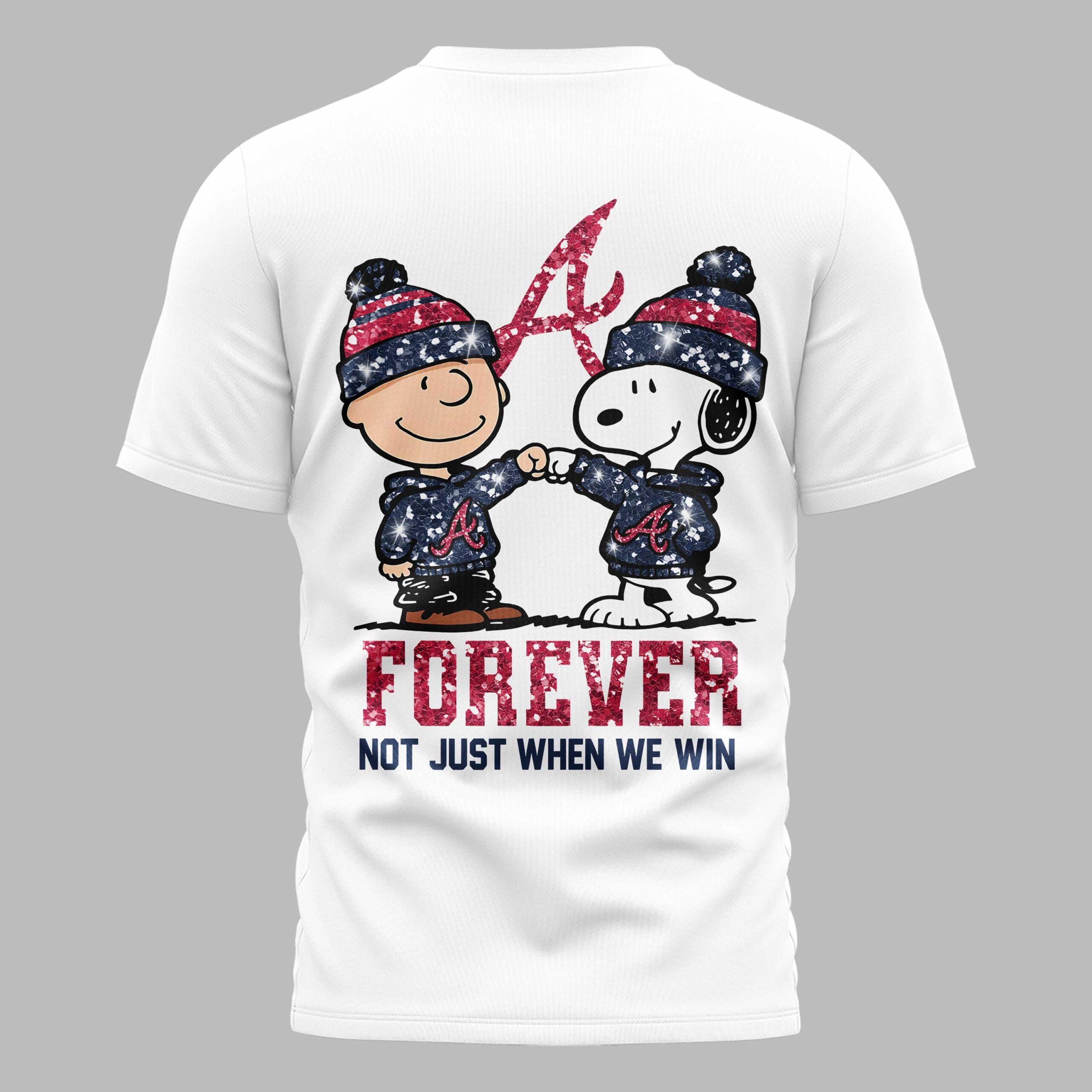 Atlanta Braves “FOREVER – Not Just When We Win” Snoopy & Charlie Glitter Friendship Premium T-Shirt PH00002