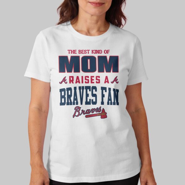 Celebrate the ultimate blend of motherhood and baseball passion with this spirited The Best Kind of Mom Raises a Braves Fan tee! It’s the perfect way for any proud mom to showcase her love for her child and her unwavering support for the Atlanta Braves, making every game day and family outing feel special. The shirt features a bold design, prominently displaying THE BEST KIND OF MOM in vibrant red and strong navy blue lettering. Below, the message RAISES A BRAVES FAN is highlighted, complete with two stylized red ‘A’s and the iconic Braves script logo and tomahawk, tying together family pride with team loyalty in a striking visual statement. Whether you’re cheering from the stands at Truist Park, enjoying a casual family gathering, or simply running errands around town, this shirt is ideal. It’s a fantastic choice for Mother’s Day, birthdays, or just because, letting everyone know where your heart lies – with your Braves-loving kid!