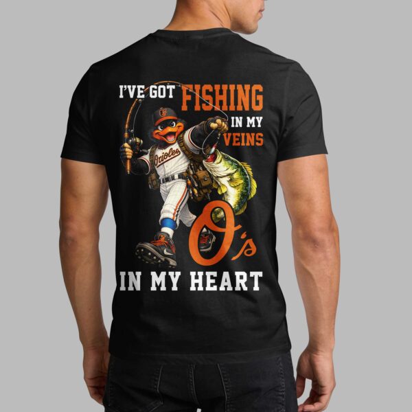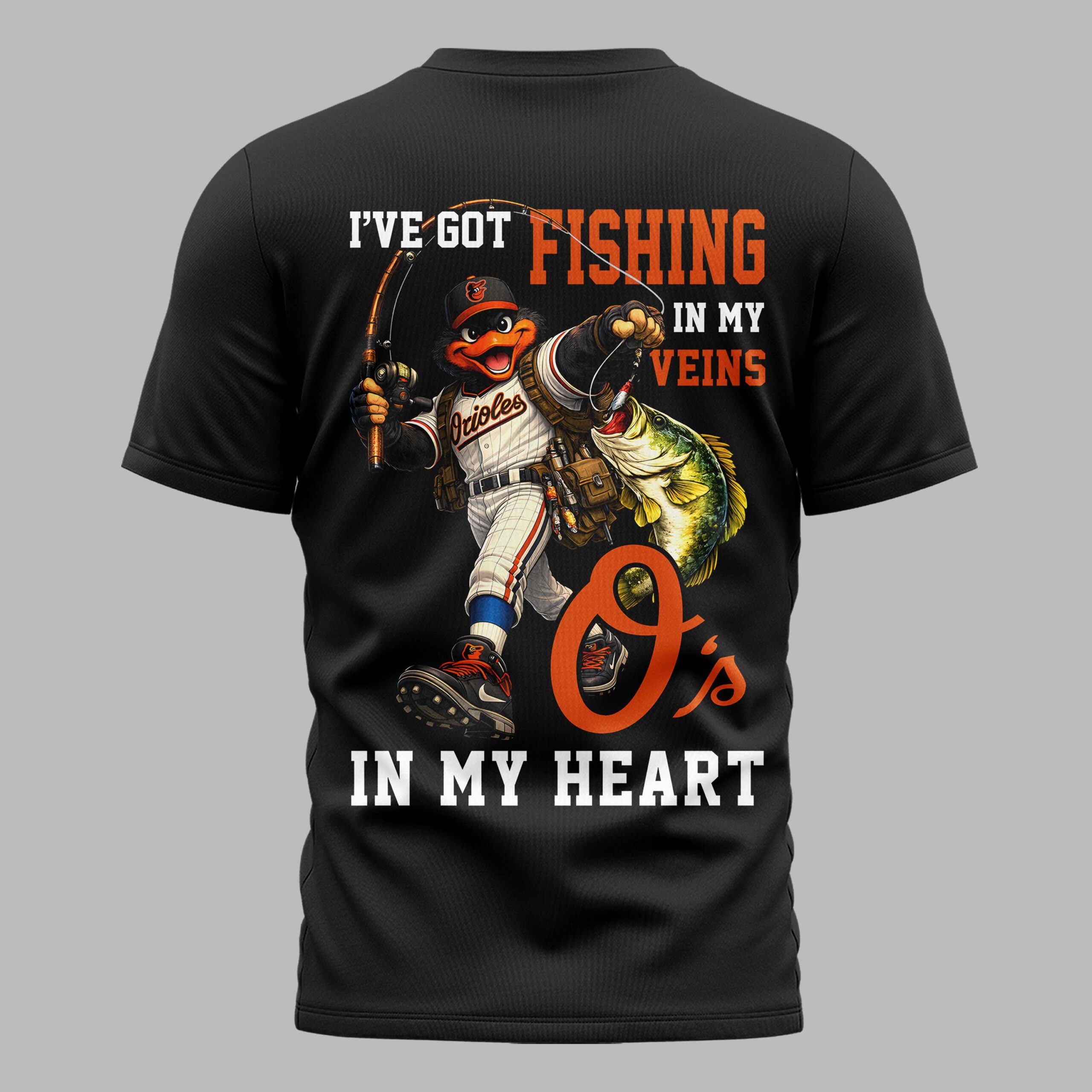 Reel in your passion for both the Baltimore Orioles and the thrill of fishing with this spirited fan tee! It’s the perfect way to celebrate your dual love for America’s favorite pastime and your favorite outdoor hobby, all while proudly backing your beloved O’s. The front of the shirt cleverly blends team pride with fishing flair, featuring the iconic Orioles bird head logo nestled within a unique design of baseball stitches shaped like a fish skeleton, complete with a dangling fishing hook. Turn around to reveal the ultimate declaration: I’VE GOT FISHING IN MY VEINS, O’s IN MY HEART. This bold statement is brilliantly illustrated with the Oriole Bird mascot, dressed in his baseball uniform, enthusiastically reeling in a massive bass. Whether you’re heading to Camden Yards, spending a day by the lake, or just showing off your unique blend of passions around town, this shirt is designed for the true Baltimore fan who lives for both grand slams and big catches. It’s an ideal choice for game days, fishing trips, or any casual occasion where you want to express your devotion.