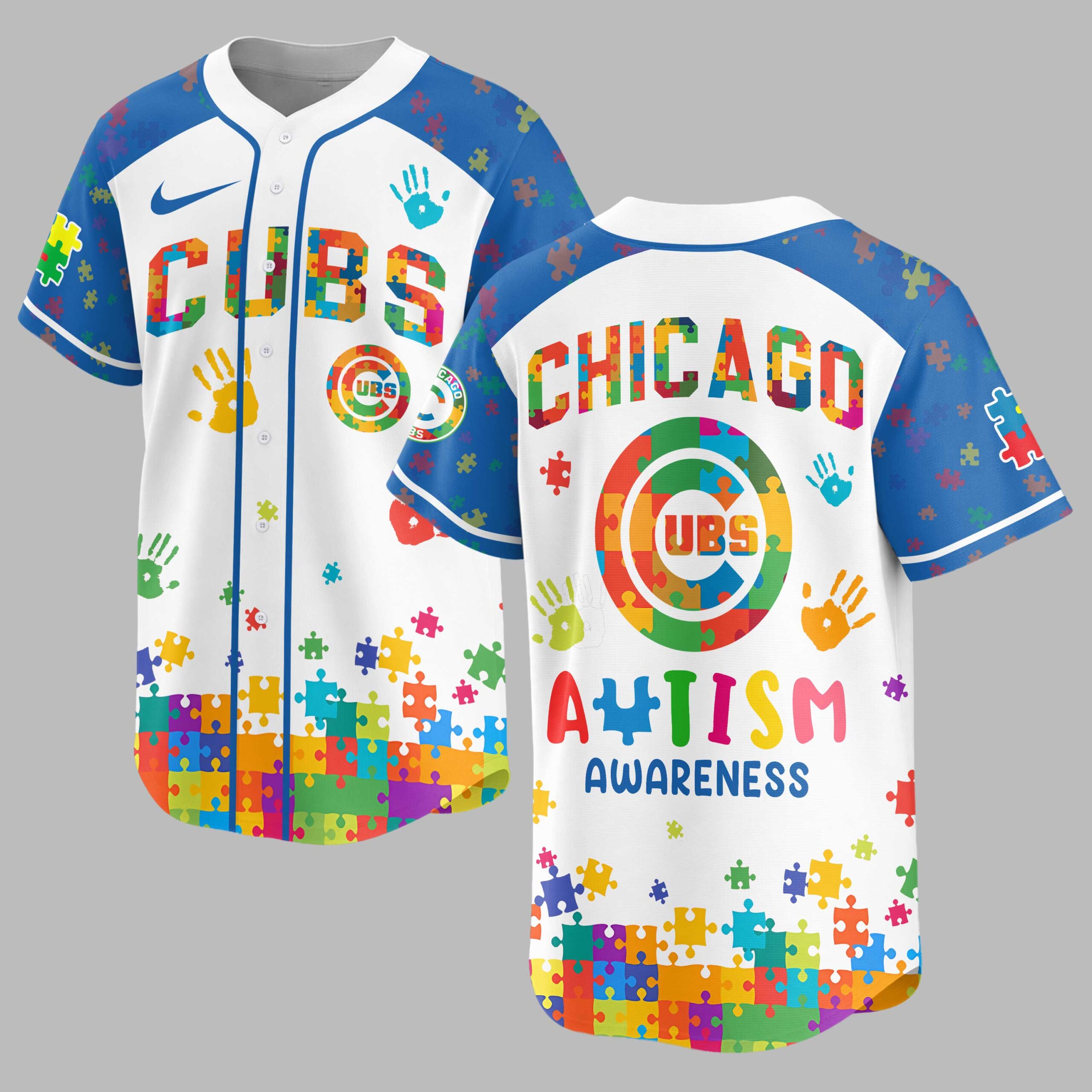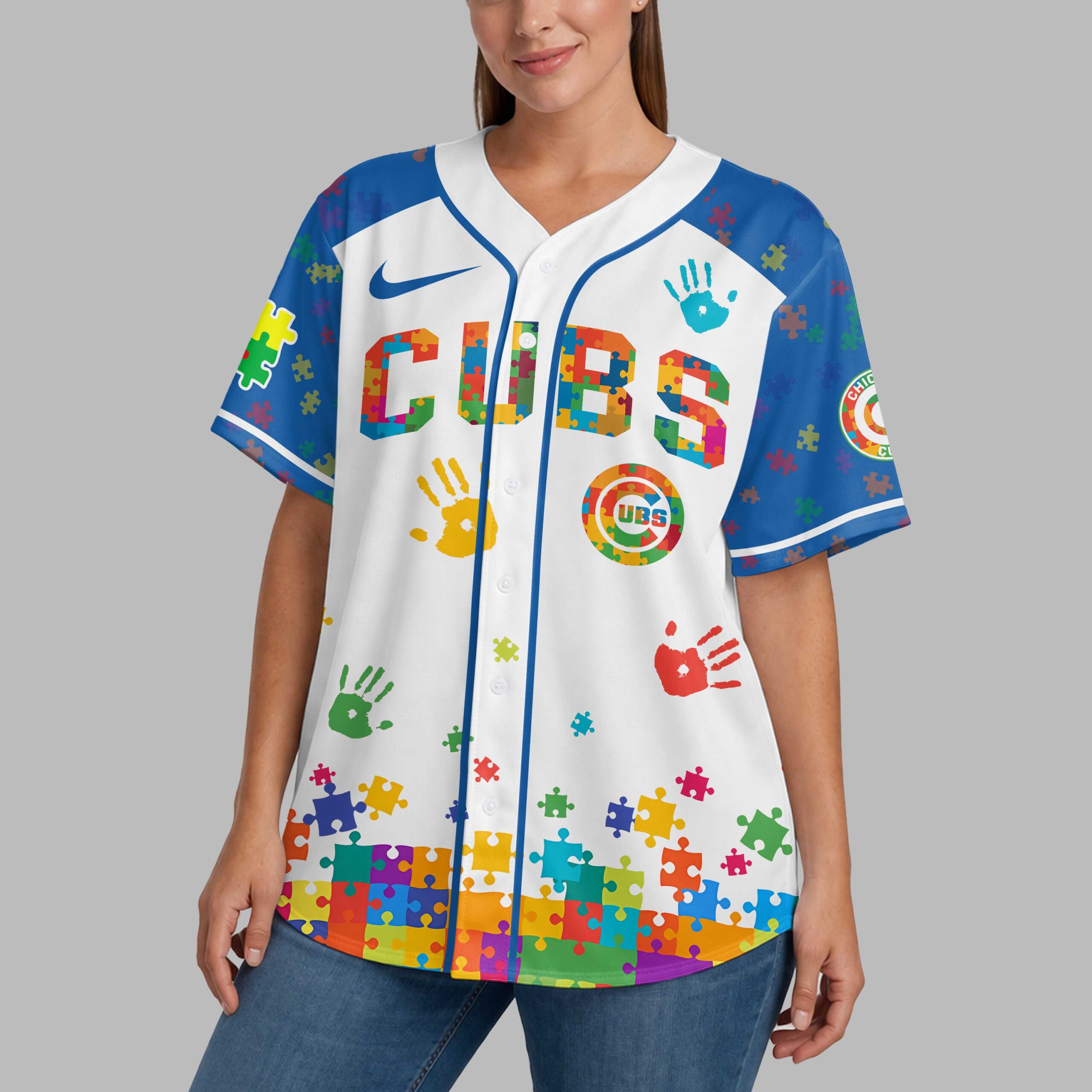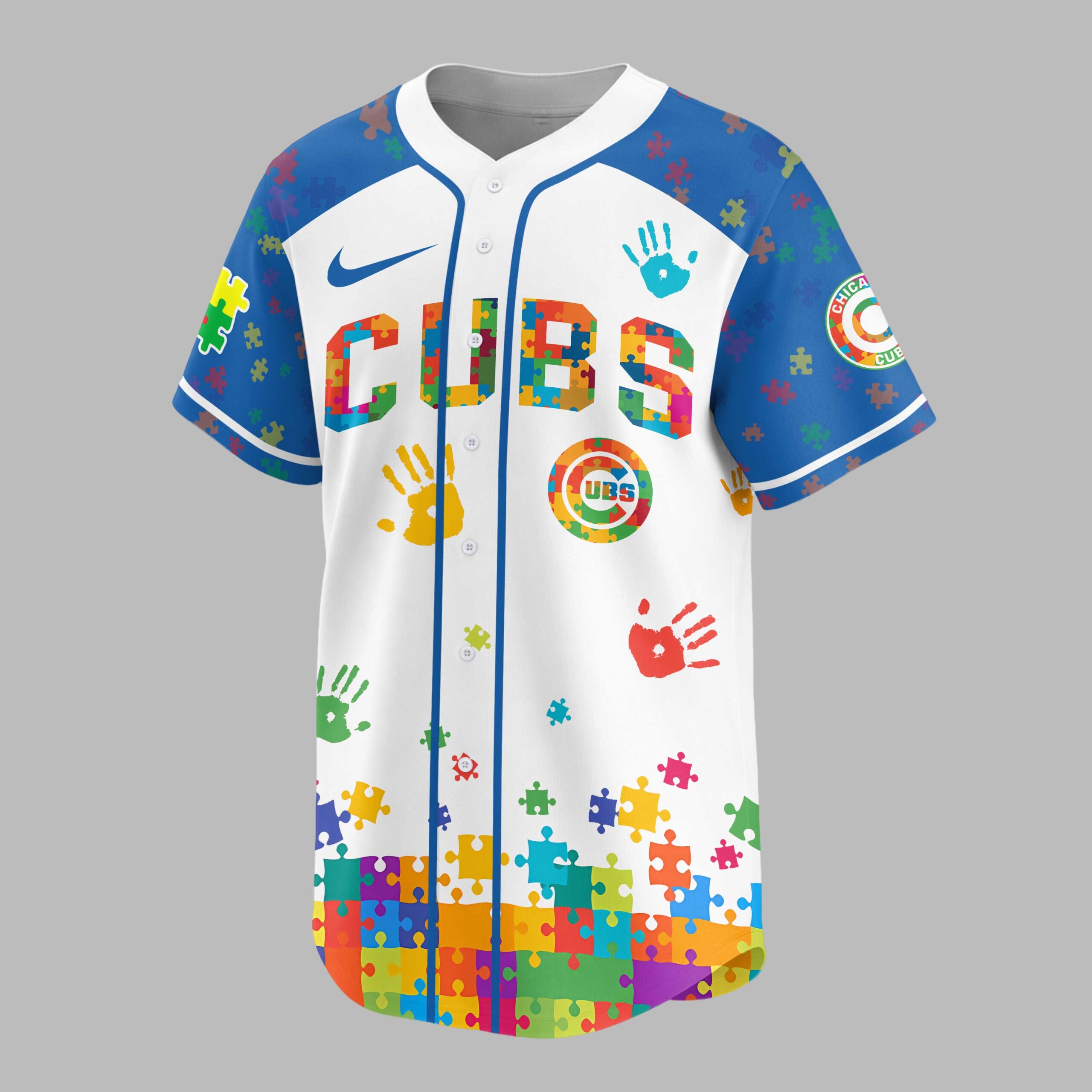 Hit a home run for a cause with this special Chicago Cubs Autism Awareness baseball jersey! Perfect for dedicated fans who want to show their team pride while championing an important message, this shirt blends your love for the Cubs with heartfelt support for the autism community. It’s a vibrant way to stand out and spread kindness. The jersey features the iconic CUBS on the front and CHICAGO across the back, both adorned with a captivating puzzle piece pattern. The sleeves and lower portion are detailed with an array of colorful puzzle pieces and handprints, symbolizing diversity and unity. The official Cubs logo is also reimagined with the same colorful puzzle design, making a powerful statement. Whether you’re cheering from the stands at Wrigley Field, attending an autism awareness event, or simply enjoying a casual day out, this jersey is designed for impactful wear. It’s an ideal choice for game days, community gatherings, or anytime you want to celebrate your favorite team and advocate for autism awareness with style and passion.