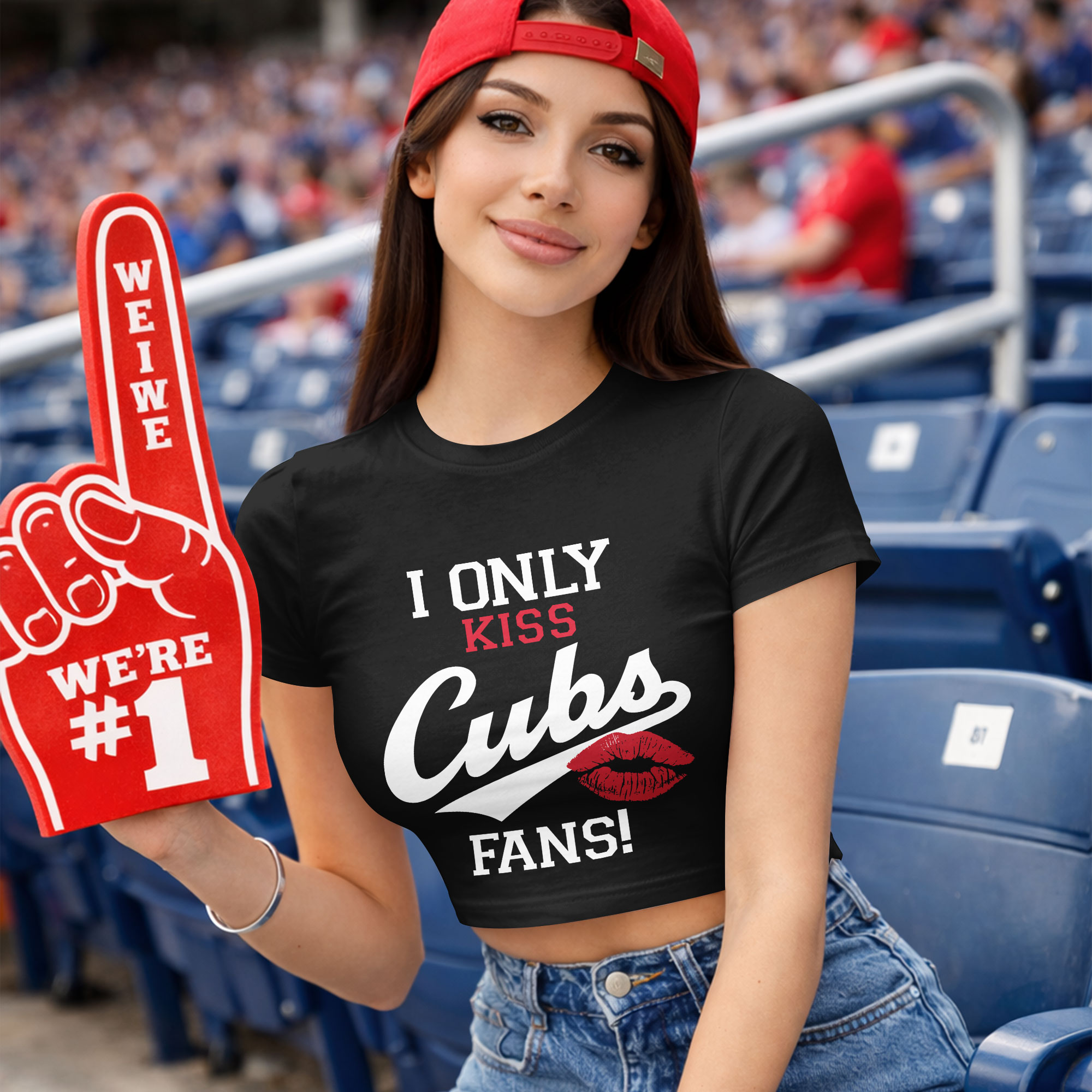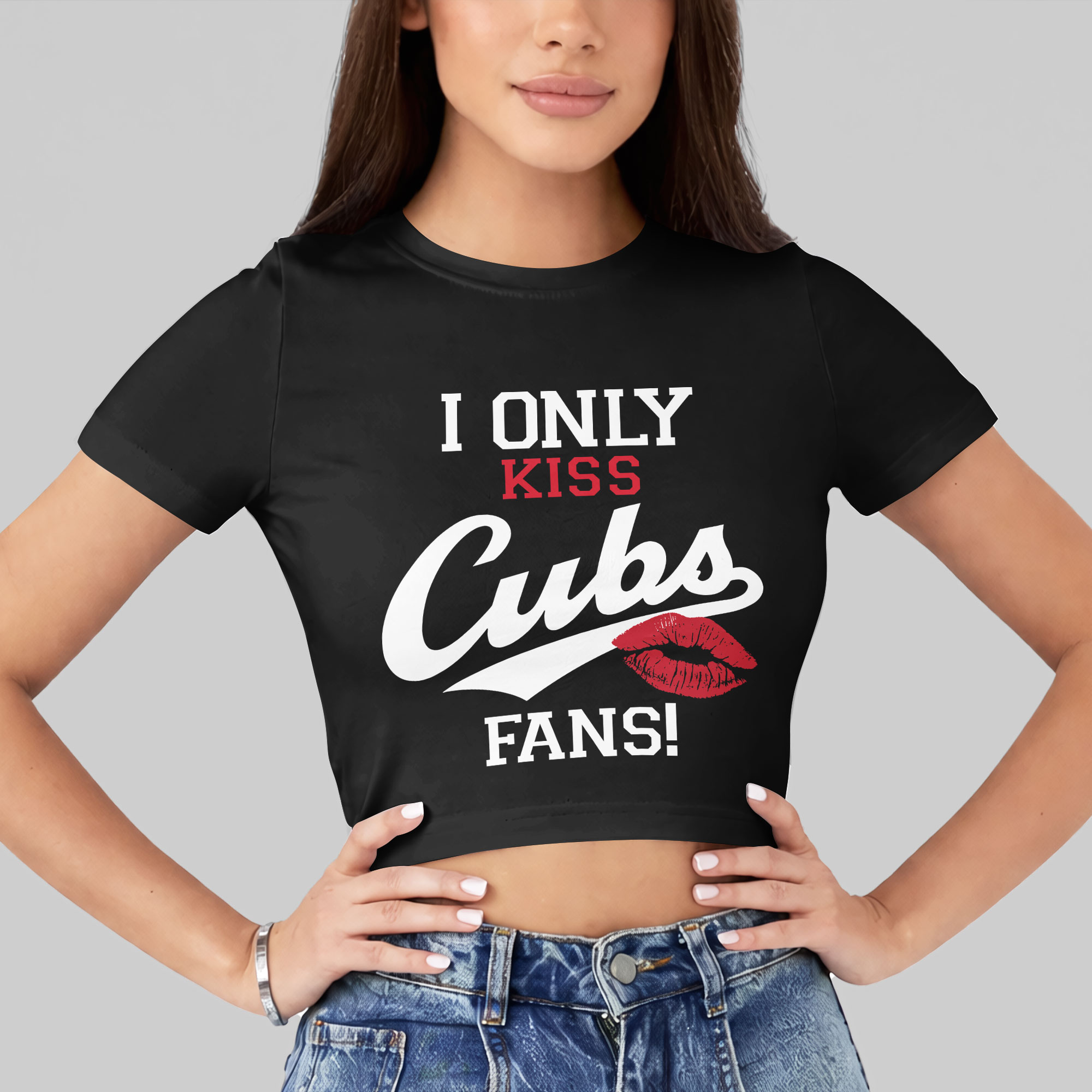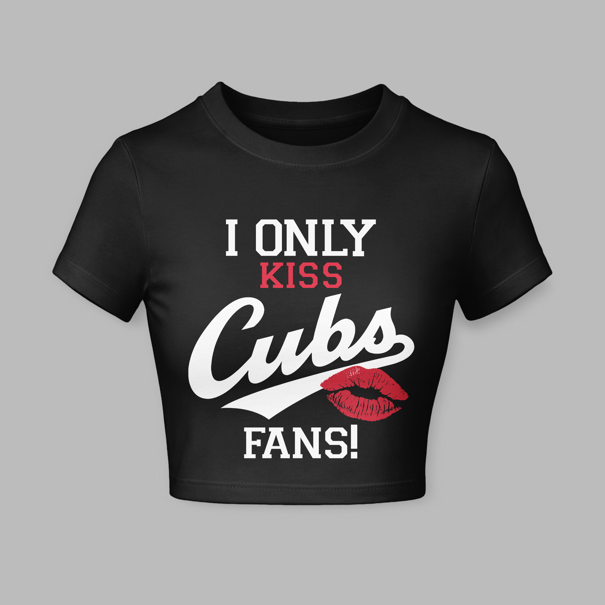 Showcase your unwavering Chicago Cubs pride with this fun and spirited crop top! Perfect for the dedicated fan, this tee makes a bold, playful statement about where your loyalty truly lies, easily sparking conversations and connecting you with fellow enthusiasts. The front boldly proclaims I ONLY KISS in white, with KISS highlighted in red. The iconic Cubs in stylish script is underlined by a striking red lip print, followed by FANS! The back features a subtle, official MLB logo for authentic appeal. Perfect for cheering at Wrigley Field, watch parties, or daily wear, this crop top blends comfort with undeniable team spirit. It’s your stylish way to broadcast a fierce love for the Chicago Cubs at any casual event.
