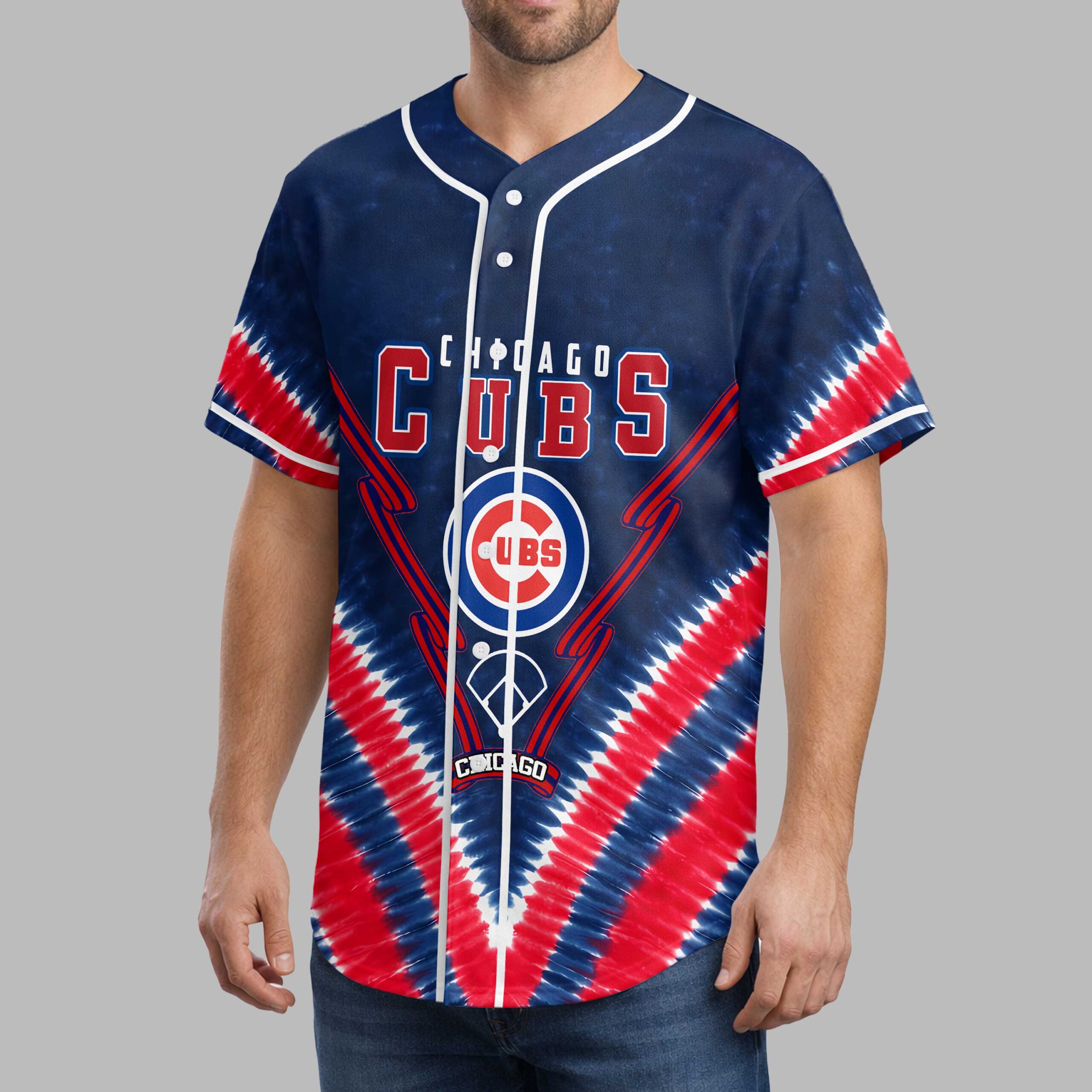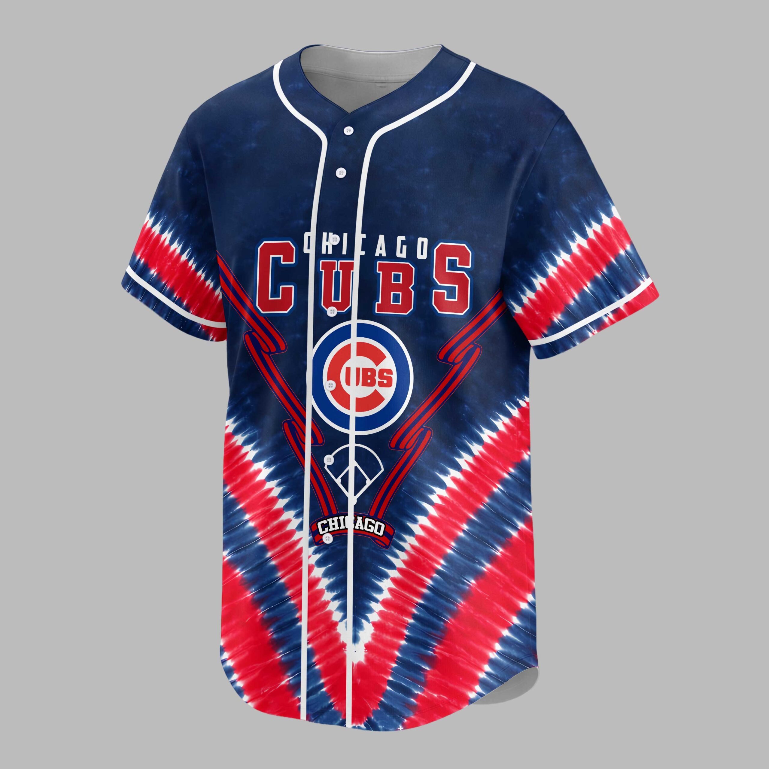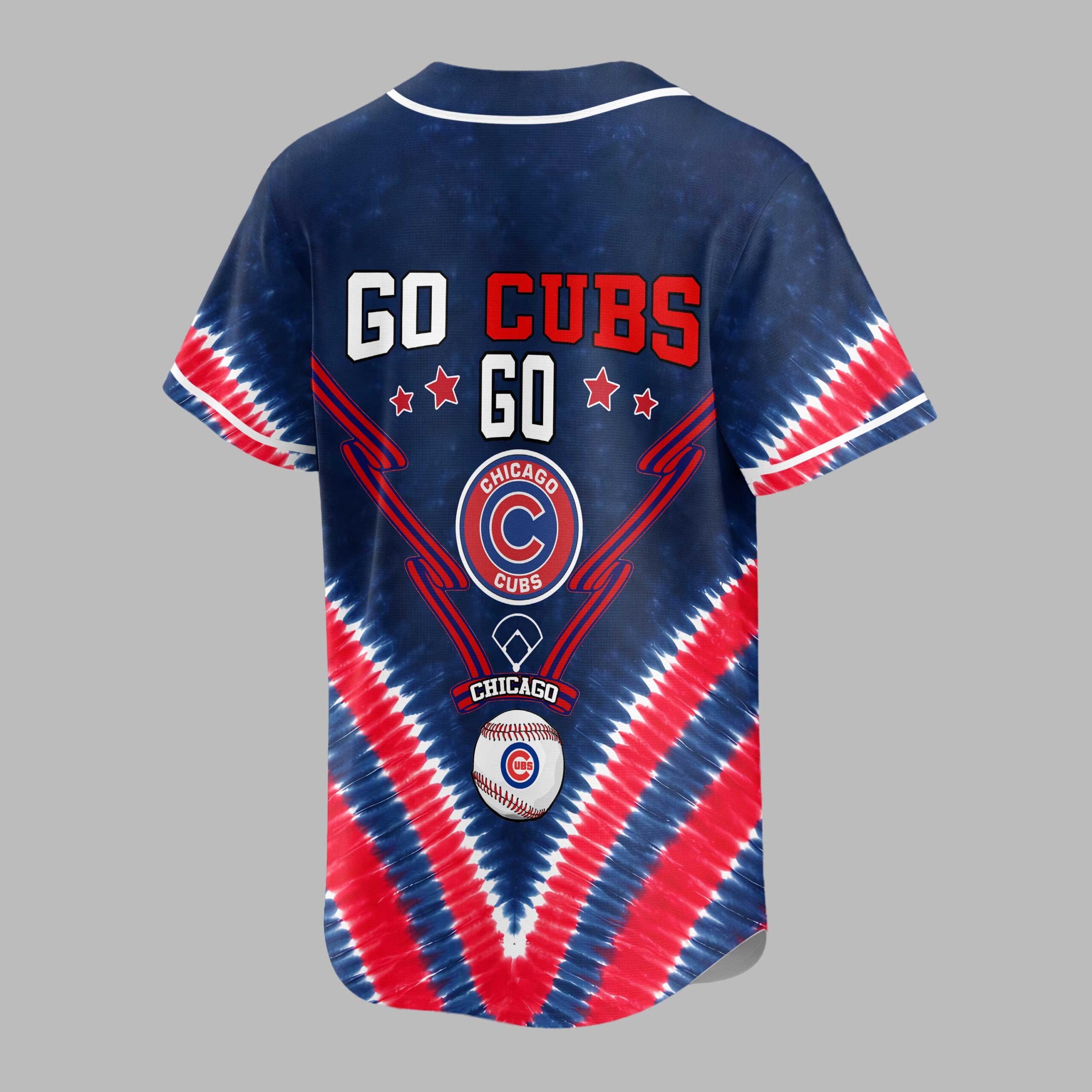 Show your Chicago Cubs pride with this vibrant, tie-dye baseball jersey! Perfect for devoted fans, this shirt combines retro style with undeniable team spirit. Get ready to bring that iconic Wrigleyville energy to every game day and gathering. The front proudly features CHICAGO CUBS in bold red lettering, alongside the classic circular team logo. A dynamic red, white, and blue tie-dye pattern splashes across the sleeves and lower body. The back rallies with GO CUBS GO, accented by stars, another team logo, and a baseball graphic, ensuring your fandom shines. This spirited jersey is ideal for game days at Wrigley Field, watch parties, or casual events. It’s ultimate gear for celebrating every home run and victory, making you stand out as a true Cubbies supporter.