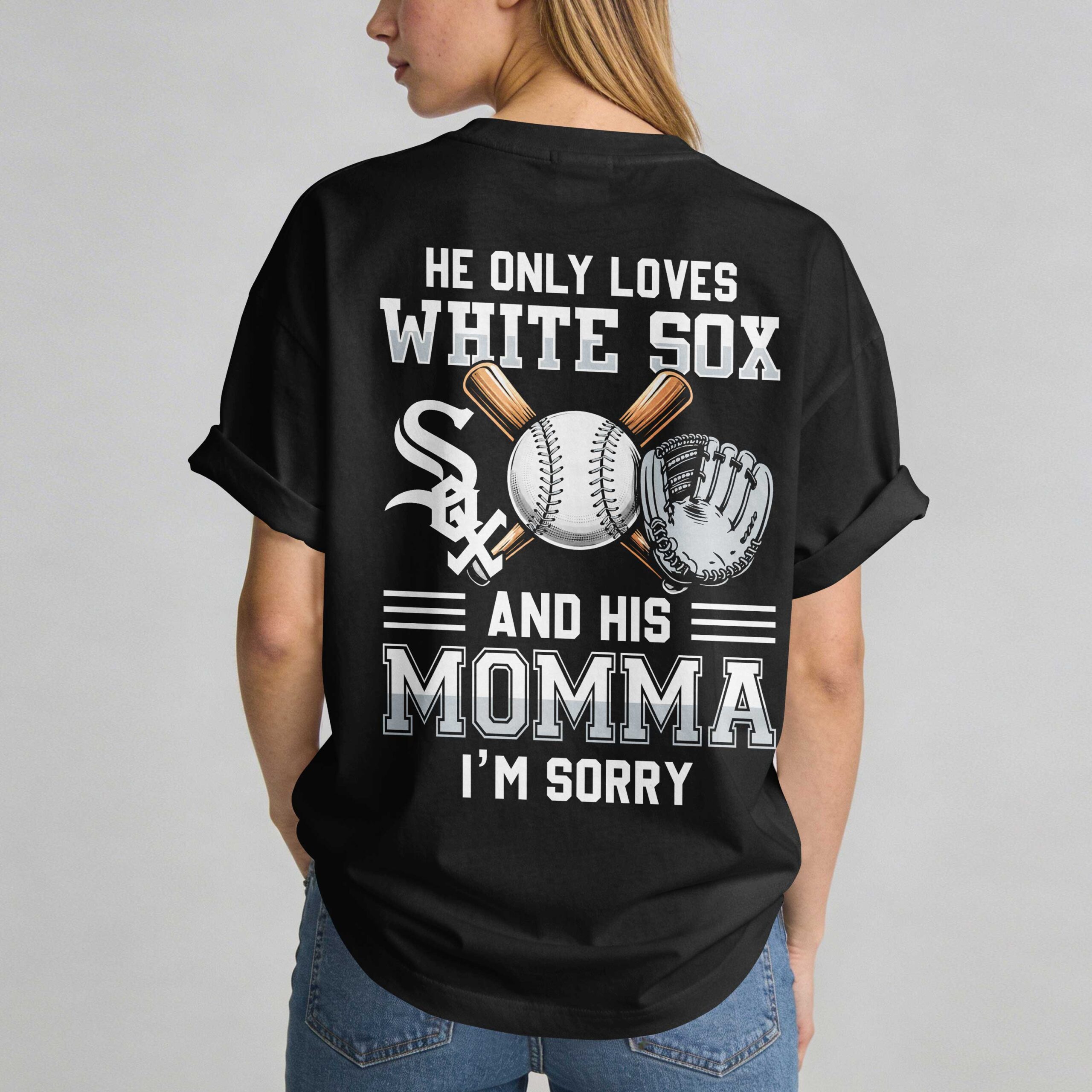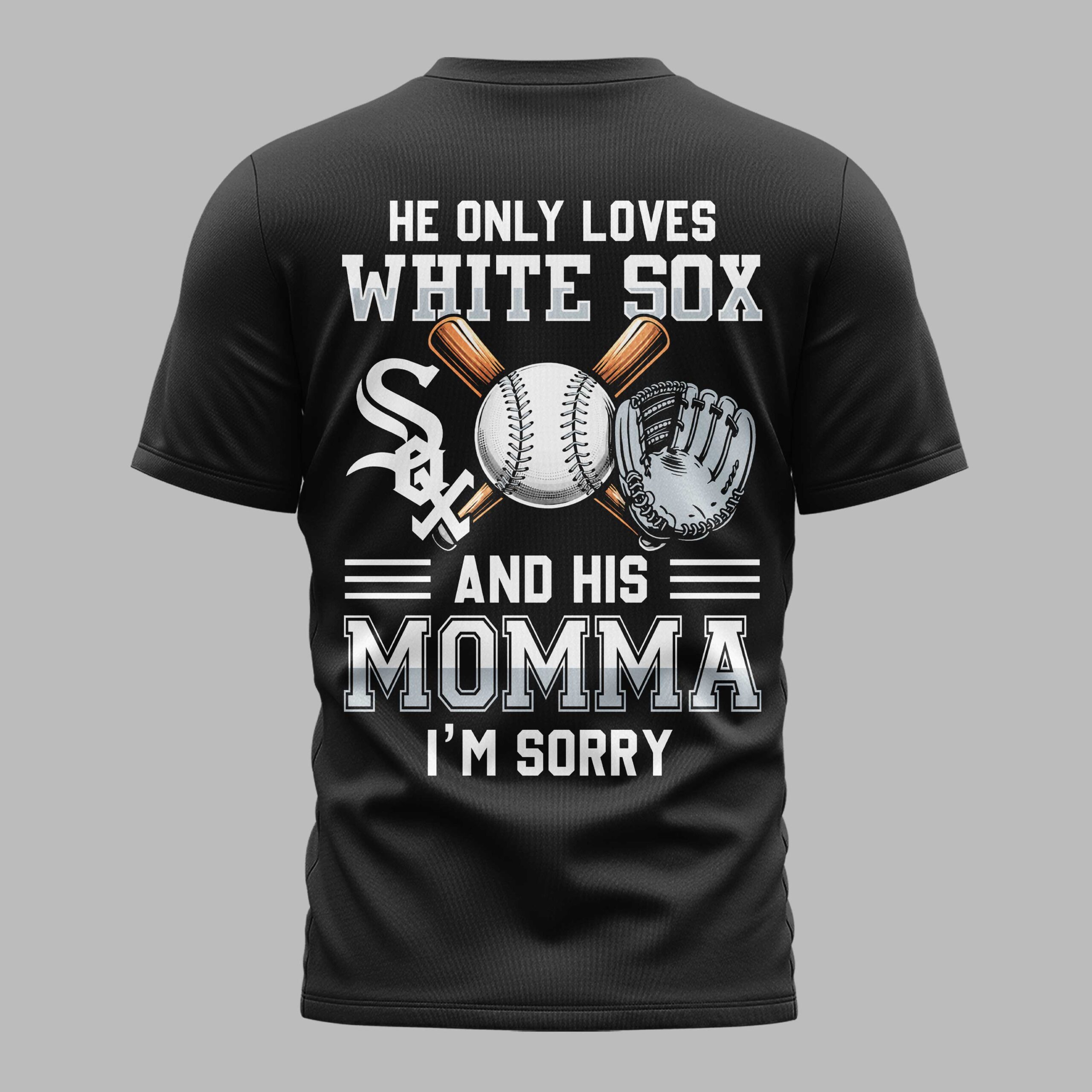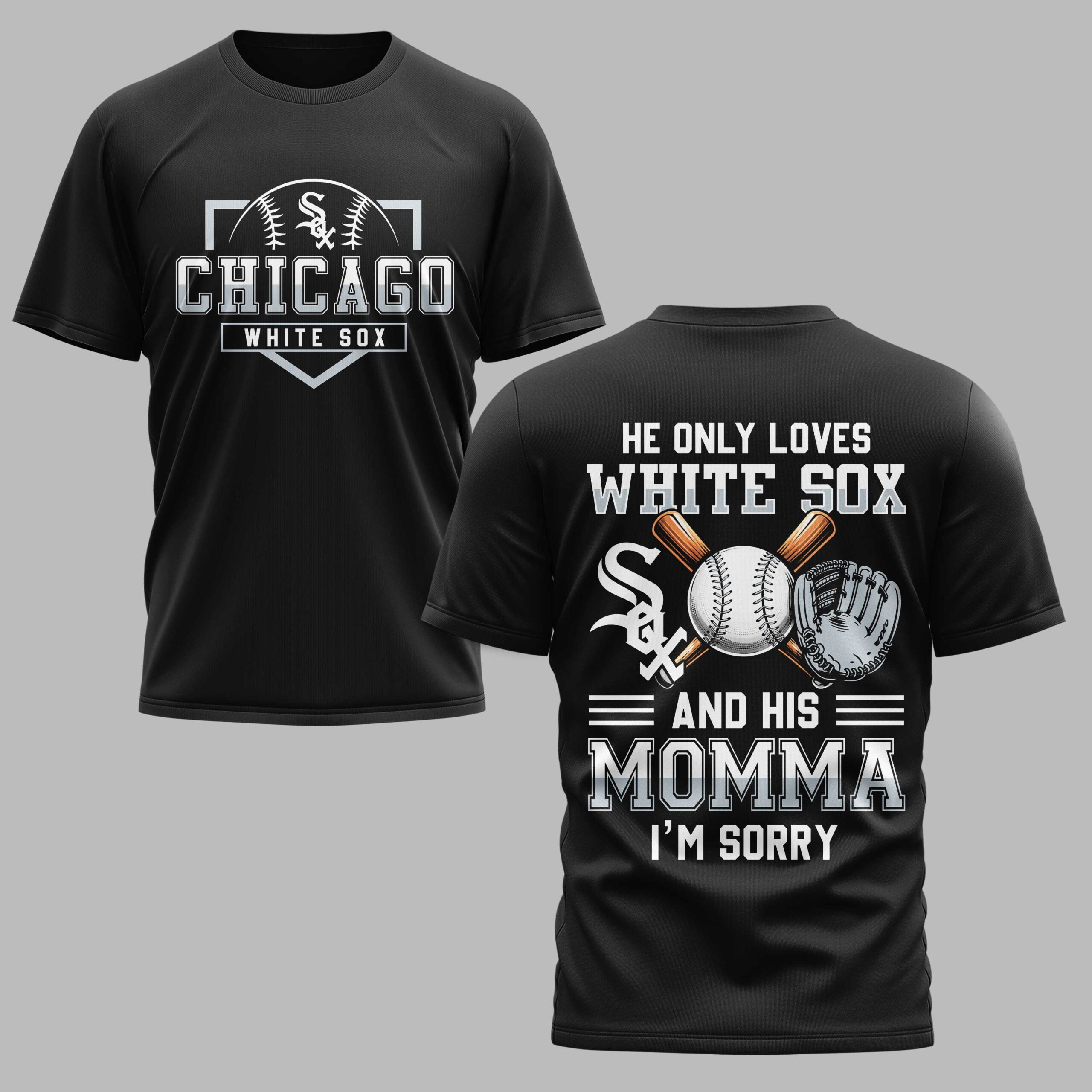Show your unwavering loyalty to the South Side with this bold Chicago White Sox t-shirt. Designed for the most dedicated fans, this gear blends fierce team pride with a touch of humor and American spirit. It’s the perfect way to showcase your devotion to the game and the heritage of one of baseball’s most storied franchises. The front features a sharp Chicago White Sox graphic anchored by the iconic team logo inside a baseball diamond. The back makes a loud statement, declaring, He only loves White Sox and his momma I’m sorry, flanked by detailed illustrations of crossed bats, a glove, and a baseball. The high-contrast design ensures your South Side pride is clear from every angle. Wear it to the ballpark, Independence Day festivities, or anytime you’re representing the Windy City. It’s essential gear for any fan who puts team and family first.