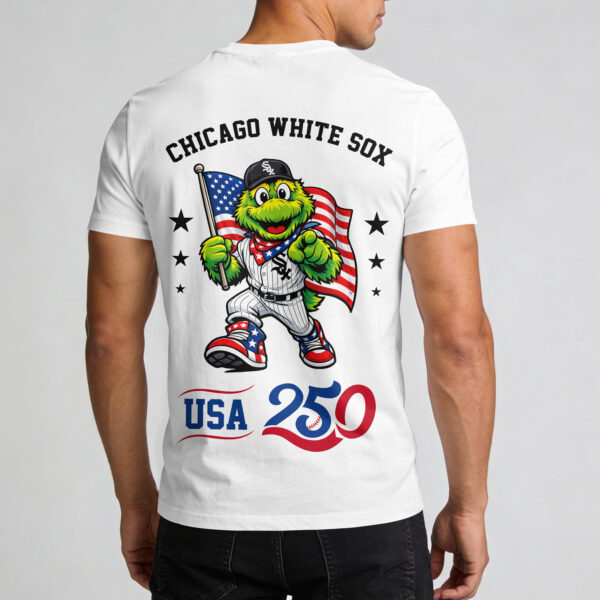 Show your unwavering South Side pride and celebrate a historic milestone with this Chicago White Sox USA 250 Independence T-Shirt. This design is perfect for fans who want to combine their love for the Pale Hose with a bold patriotic spirit. It’s a powerful tribute to both the team’s legacy and our nation’s 250th anniversary. The front features a clean WHITE SOX wordmark paired with an AMERICA 250 chest logo. On the back, a dynamic graphic shows Southpaw waving the Stars and Stripes while decked out in star-spangled gear and a team uniform. The arched team name and the commemorative USA 250 emblem at the bottom make this a standout piece of fan apparel. Wear it to the ballpark for a summer night game, an Independence Day celebration, or any casual outing where you want to represent Chicago. This shirt is essential gear for any dedicated fan looking to celebrate freedom and baseball.