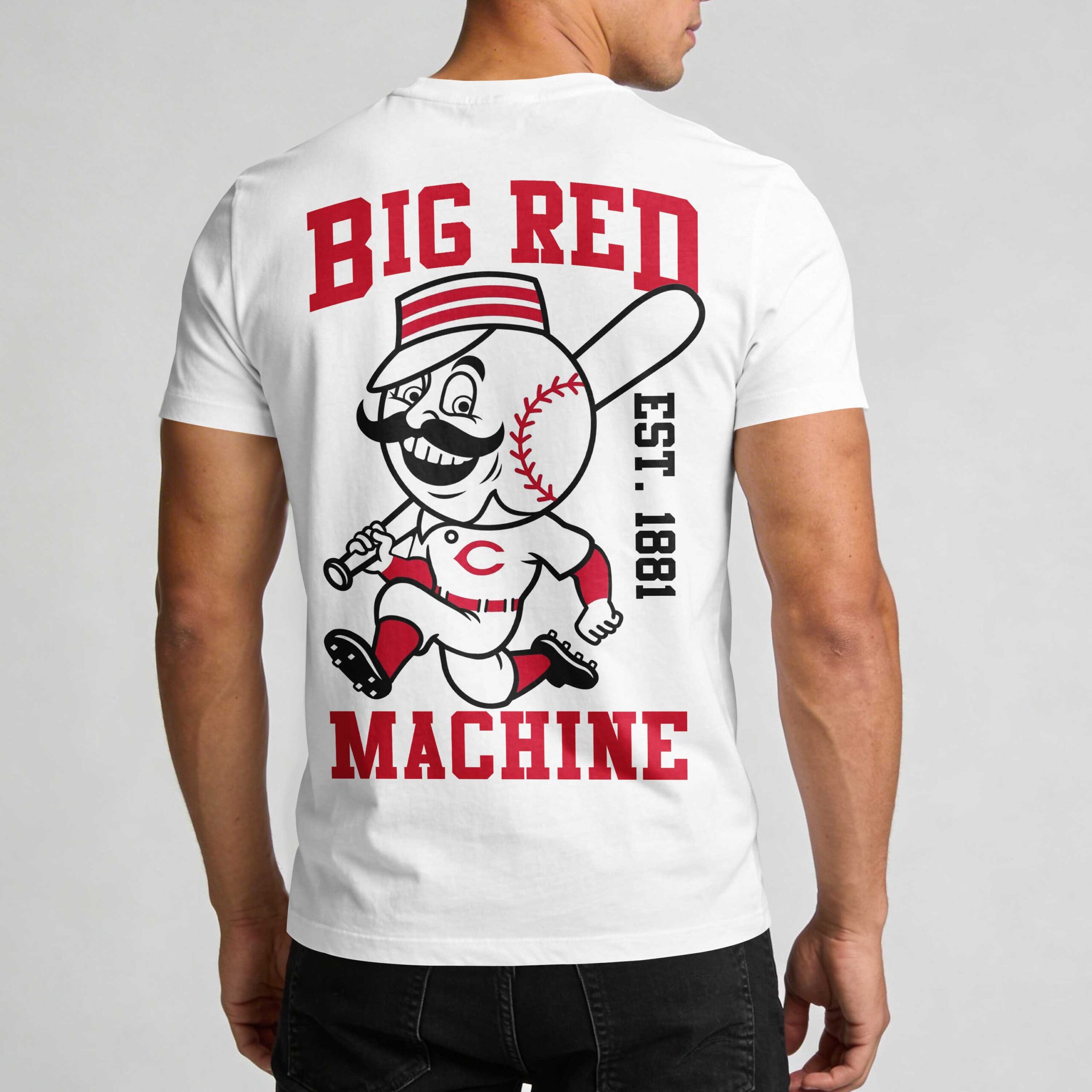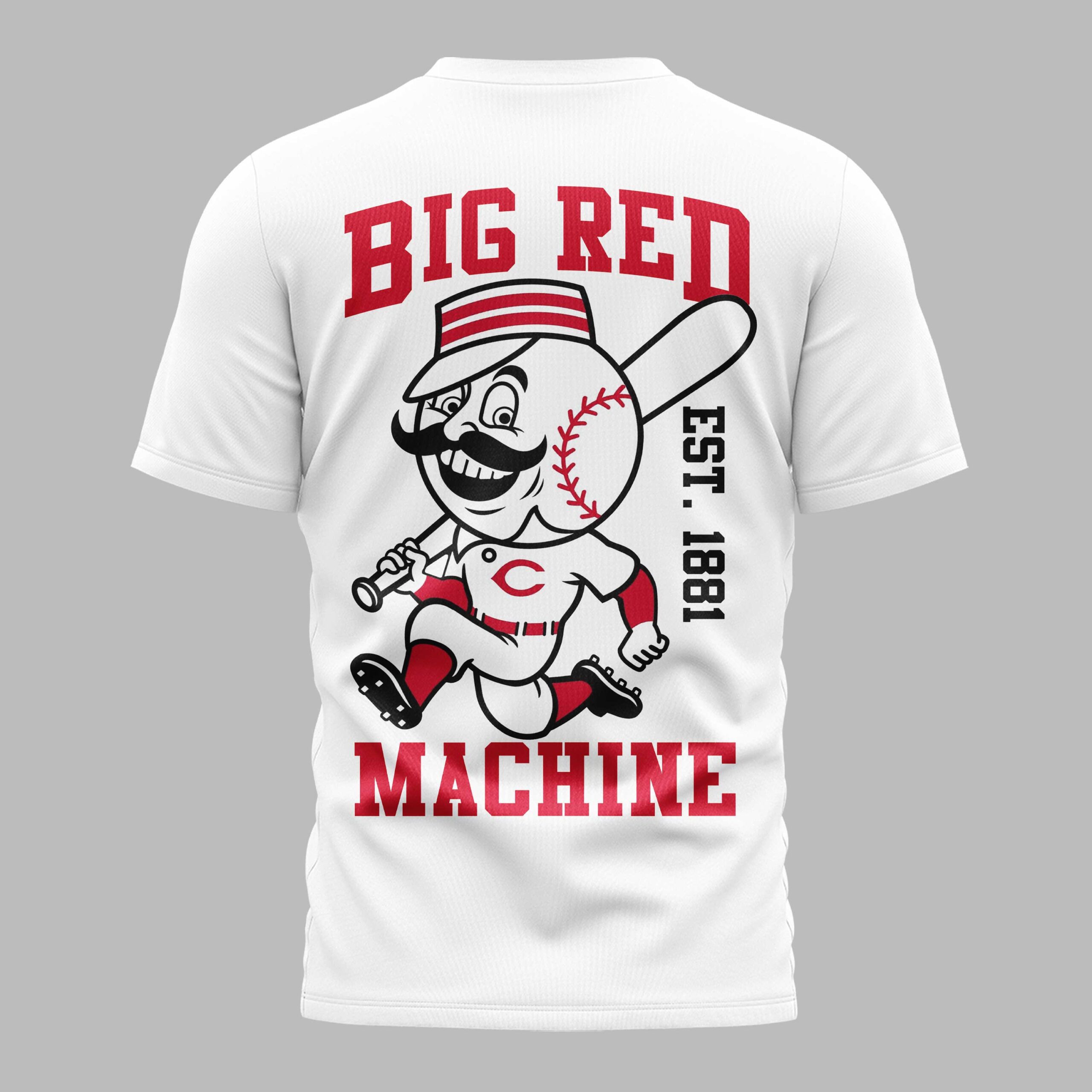 Step up to the plate and show your Cincinnati pride with this stunning Reds fan t-shirt. Celebrating the legendary history of the oldest professional franchise in baseball, this shirt captures the spirit of the Queen City and the enduring legacy of the Big Red Machine. It’s the perfect way to honor American baseball heritage while cheering on your favorite team during a historic season of national celebration. The front of the shirt features a dynamic design showcasing the Cincinnati skyline and iconic bridge silhouette set behind a bold Reds script and baseball graphic. On the back, the vintage Mr. Redlegs mascot takes center stage, framed by Big Red Machine text and the historic EST. 1881 mark. This detailed artwork ensures you represent the city’s rich sporting tradition from every angle. Whether you’re heading to the ballpark for a day game, celebrating Independence Day under the fireworks, or just repping the city on a casual afternoon, this shirt is your new go-to. It’s a must-have for any dedicated Cincinnati supporter looking to wear their team colors with pride.