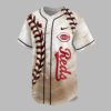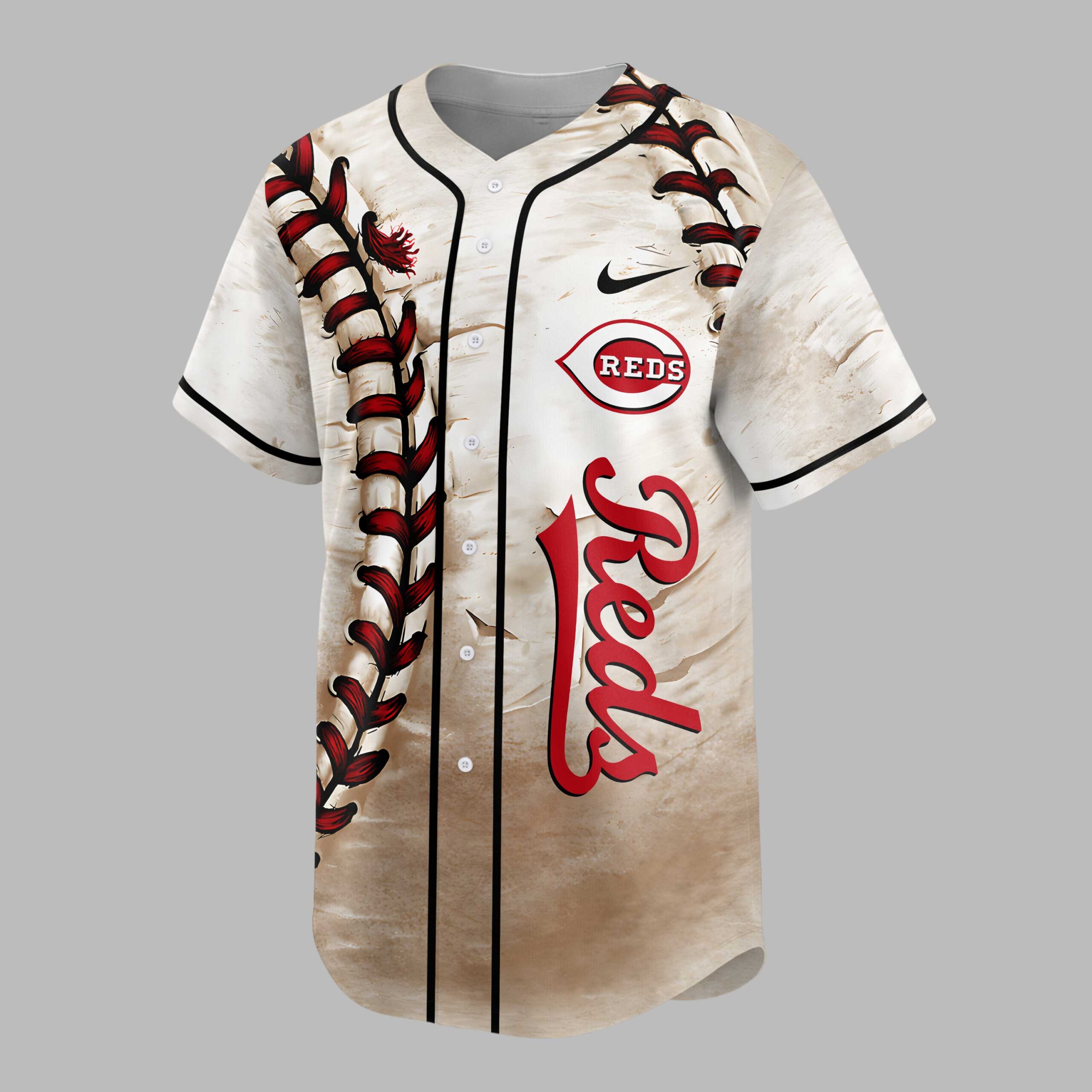 Show your unwavering Cincinnati Reds pride with this striking custom baseball jersey! Perfect for devoted fans, this shirt captures the timeless essence of America’s favorite pastime with a unique, well-loved aesthetic. It’s more than just apparel; it’s a bold statement of your loyalty and passion for the Reds. The front features a distressed background, mimicking the grit of the field, accented by dramatic red baseball lacing running vertically. The classic Reds script and iconic team logo proudly showcase your allegiance. On the back, personalize your pride with Your Name in stylish red script and your chosen 00 number, each digit uniquely filled with baseball stitching, all against the same vintage-inspired texture. Cheer from the stands, gather for a game day barbecue, or simply show off your team colors around town – this jersey is designed for ultimate fan expression. It’s the ideal way to celebrate every home run, every strikeout, and every unforgettable moment with the Cincinnati Reds.