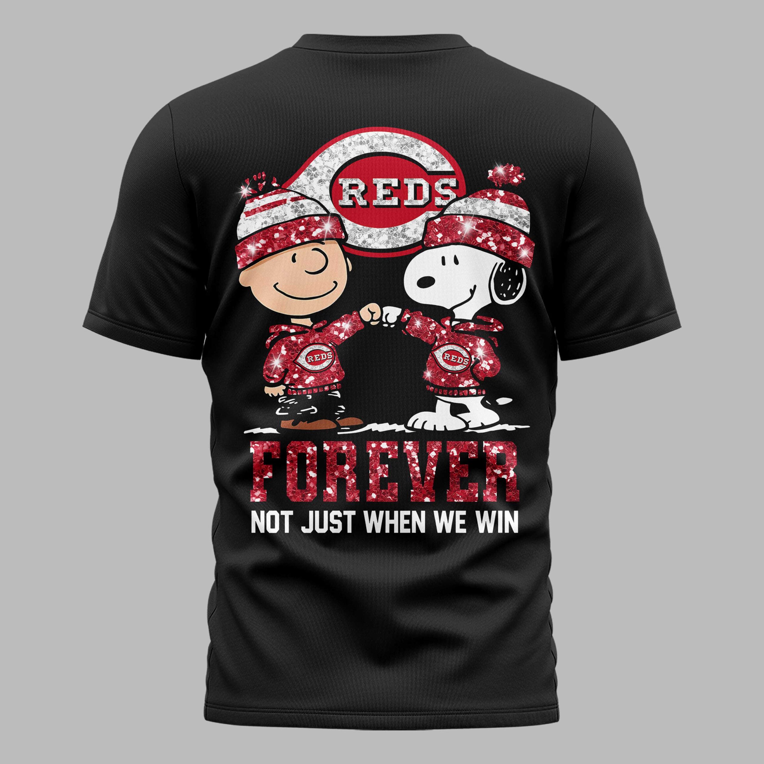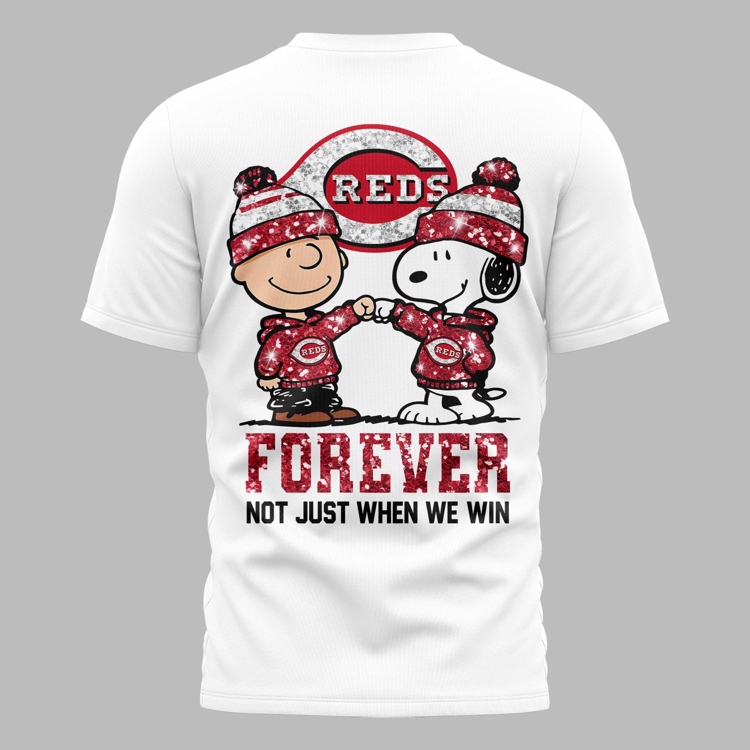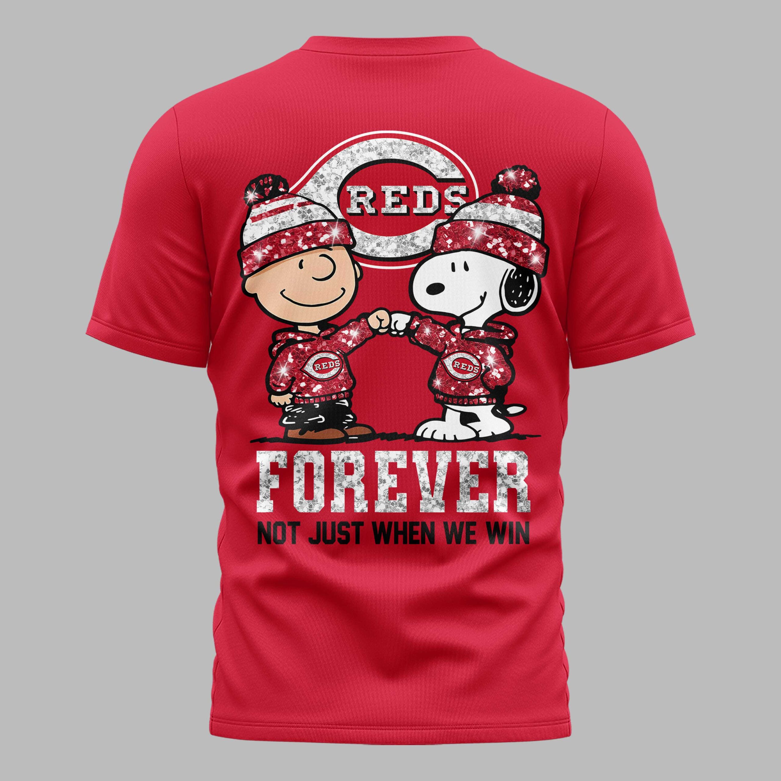Cincinnati Reds “FOREVER – Not Just When We Win” Snoopy & Charlie Glitter Friendship Premium T-Shirt PH00002