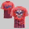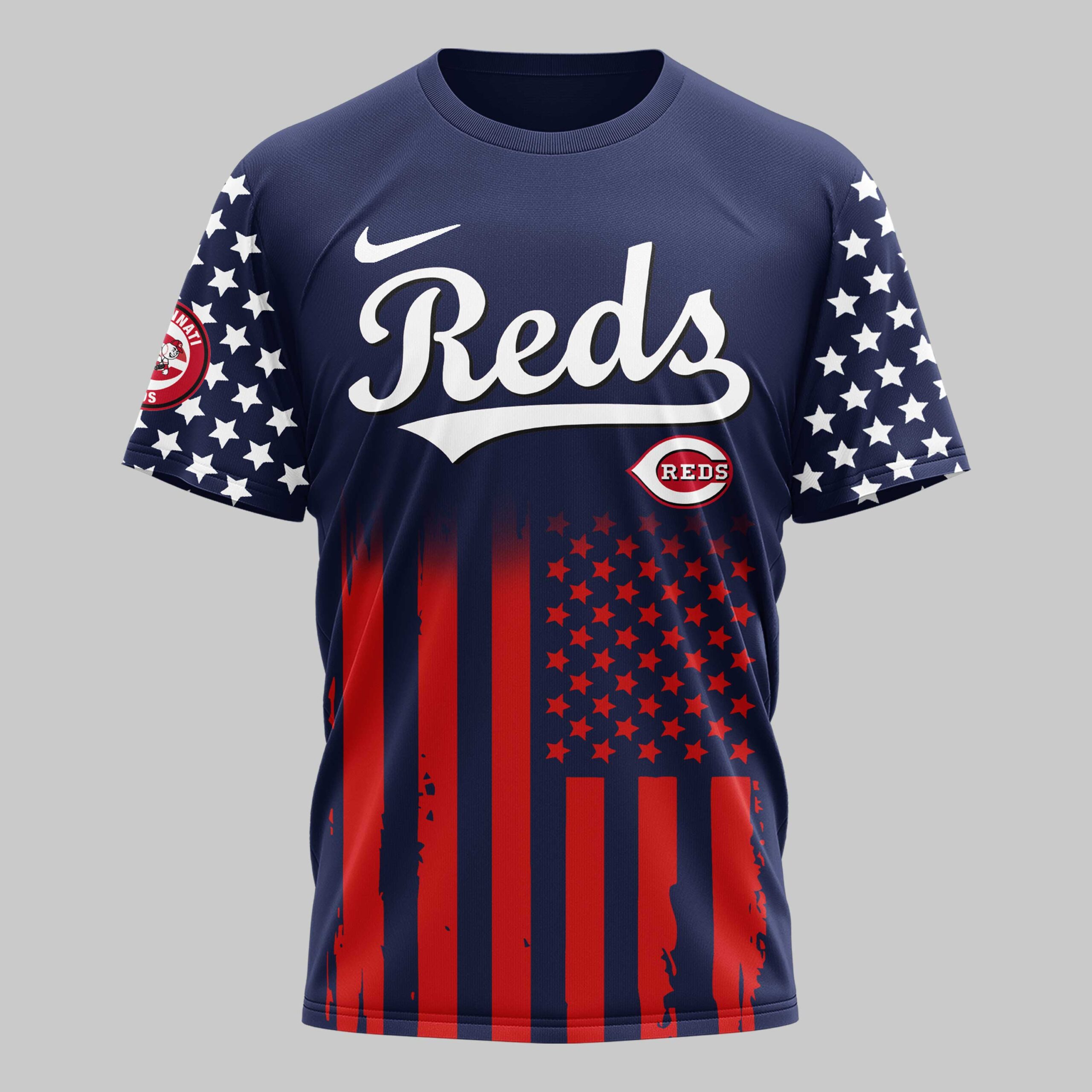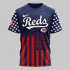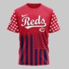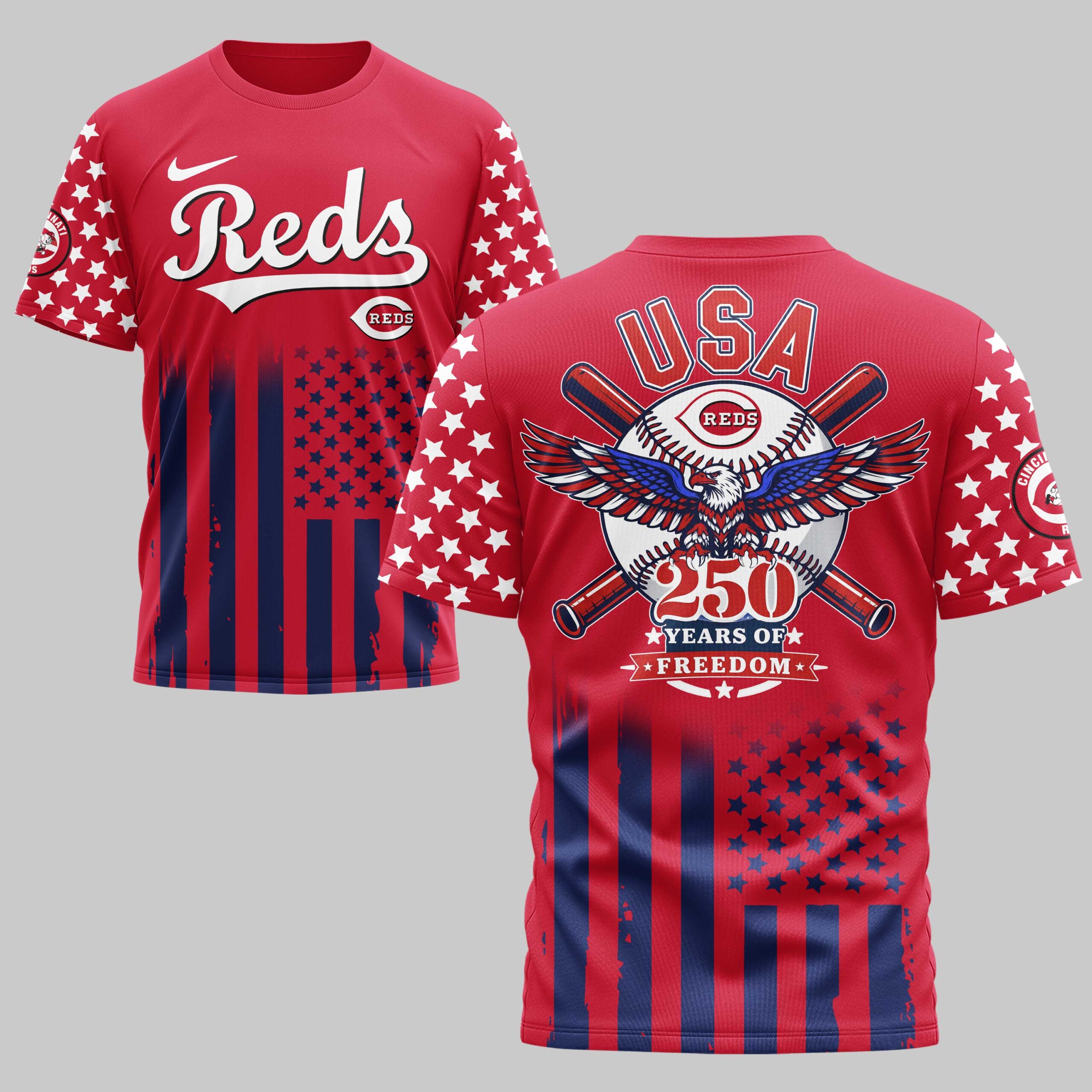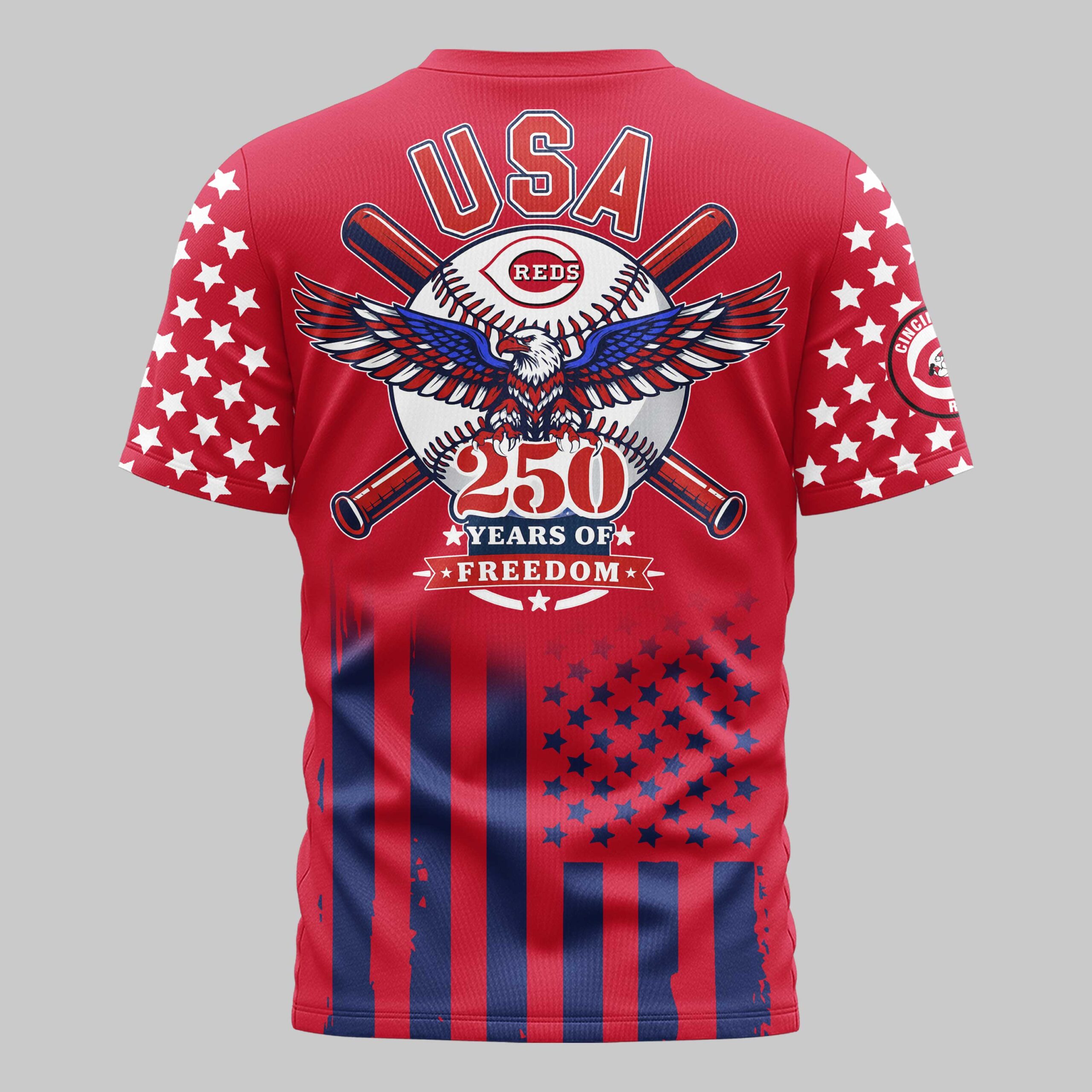 Show off your unwavering team spirit and national pride with this Cincinnati Reds USA 250 Independence Baseball Fan T-Shirt. Designed for fans who bleed red, white, and blue, this shirt celebrates a monumental milestone in American history while honoring your favorite ball club. The front features the iconic Reds script and logo set against a navy backdrop with starry sleeves and a bold flag-inspired base. The back showcases a powerful graphic featuring a majestic bald eagle with outspread wings, crossed bats, and 250 Years of Freedom commemorative text. Every detail, from the star-spangled sleeves to the vibrant stripes, captures the essence of American baseball. Wear it to Great American Ball Park, your next Fourth of July celebration, or any time you want to display your Cincinnati pride. It’s the ultimate choice for fans who want to stand out in the crowd.