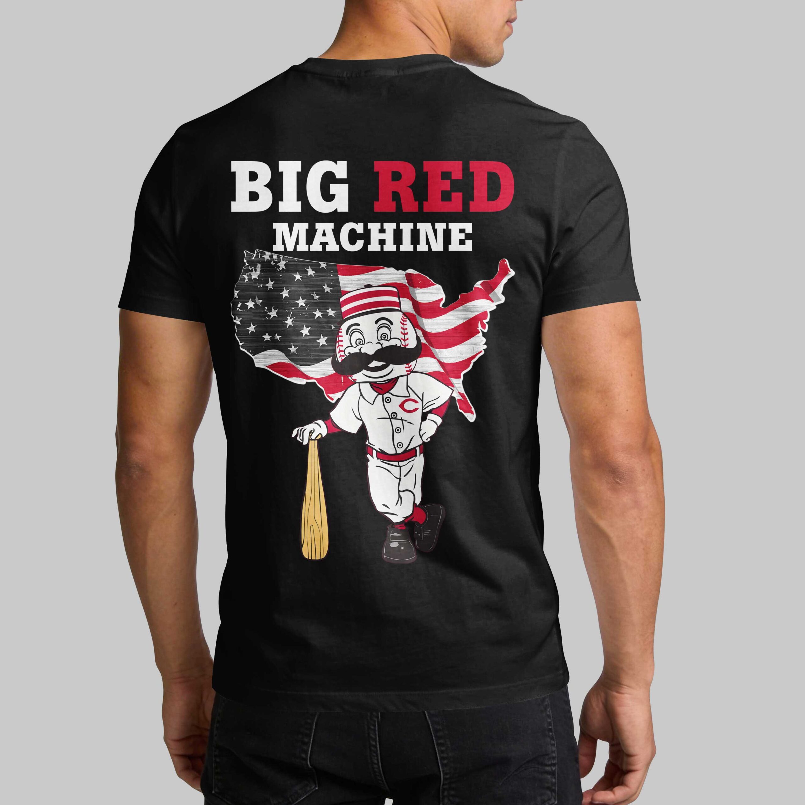 Show off your Cincinnati pride and your love for the stars and stripes with this unique Reds fan apparel. Perfect for those who bleed red and white, this shirt blends legendary baseball heritage with a bold patriotic theme. It’s a must-have for any fan looking to celebrate the Big Red Machine spirit alongside a deep-rooted American tradition. The front features a striking USA graphic paired with the iconic Reds logo. Turn it around to reveal a powerful back graphic showcasing the beloved Mr. Redlegs mascot leaning on his bat. He stands proudly in front of a map of the United States filled with the American flag, topped with the classic Big Red Machine lettering that every Cincinnati fan knows and loves. Whether you’re heading to the ballpark, hosting an Independence Day barbecue, or representing your team around town, this shirt is the ultimate gear for showing your spirit. It’s a standout piece for any dedicated fan’s summer wardrobe.