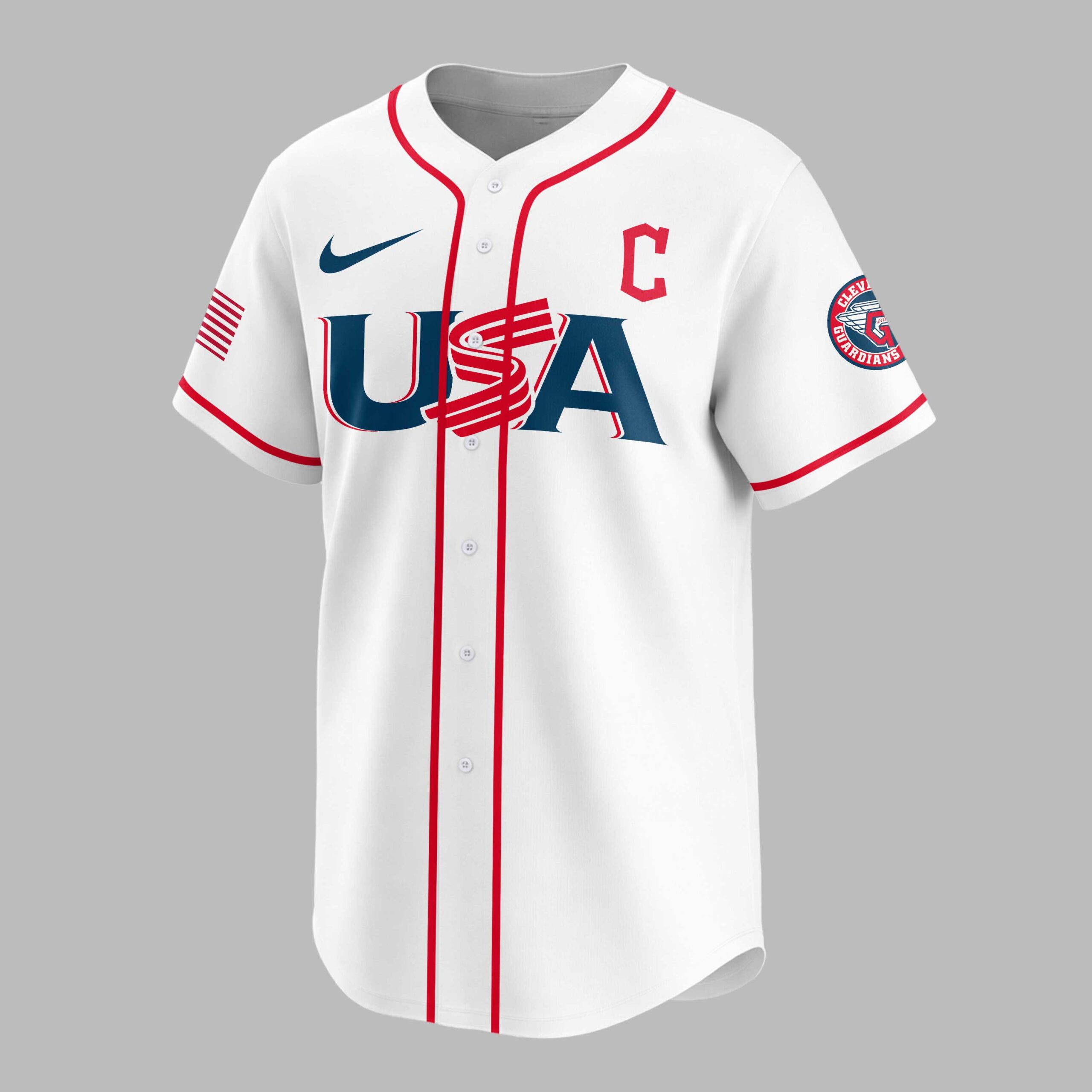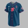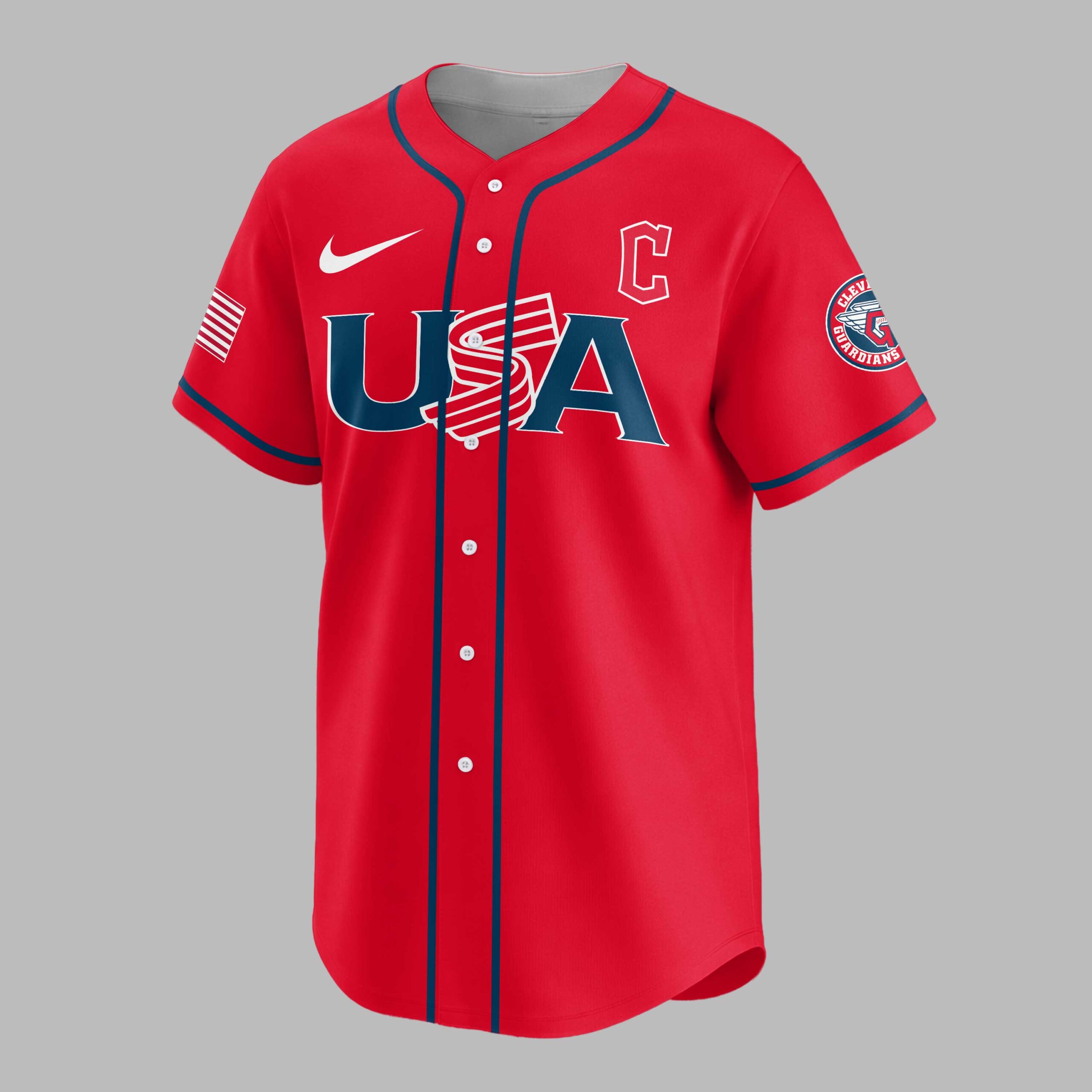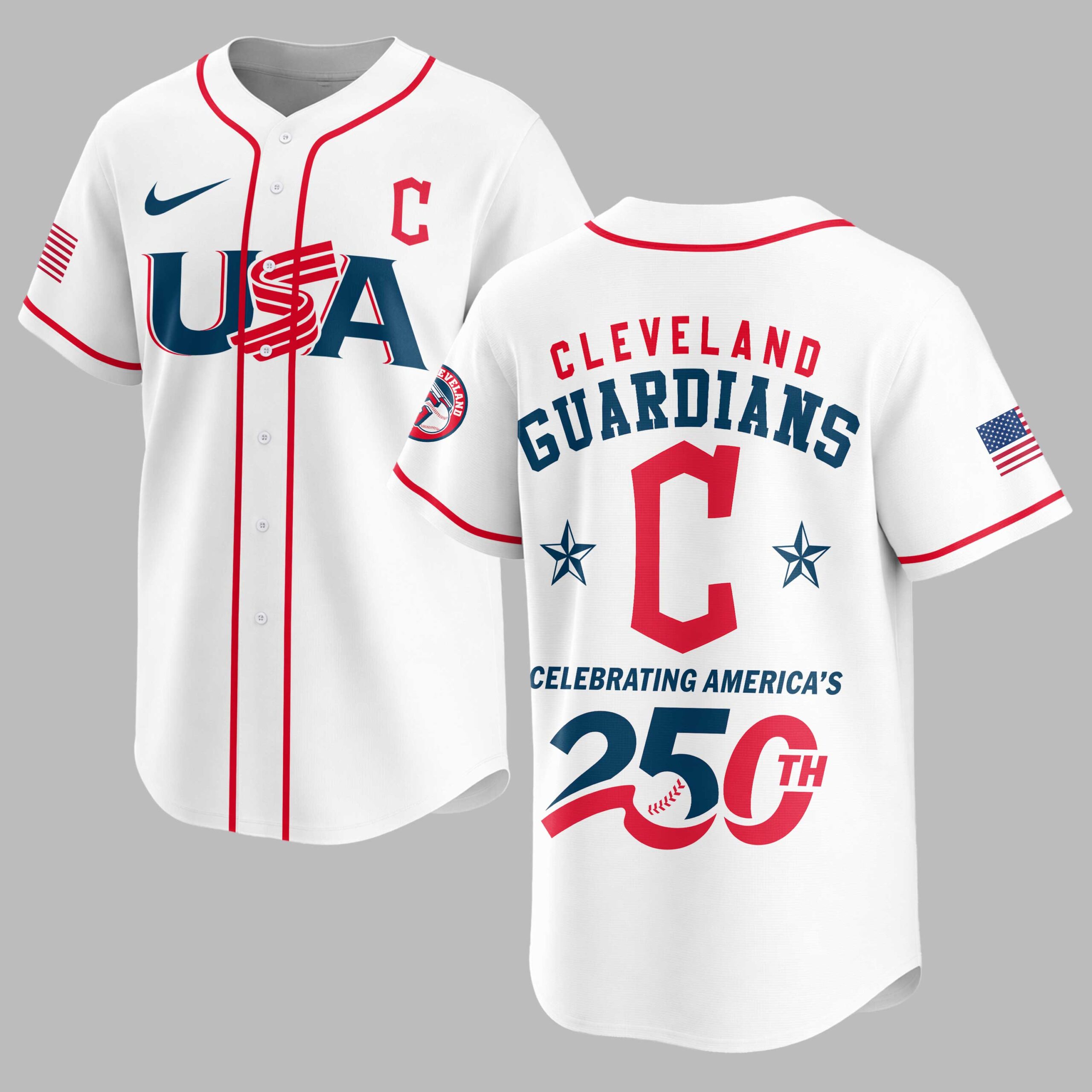 Celebrate America’s 250th anniversary and proudly display your Cleveland Guardians spirit with this special edition patriotic baseball jersey! This vibrant blue jersey perfectly blends spirited baseball fandom with heartfelt national pride. The front proudly features USA in a bold red, white, and blue design, complemented by the iconic Cleveland Guardians C logo. The back showcases CLEVELAND GUARDIANS arching over a large C flanked by stars. Below, CELEBRATING AMERICA’S 250TH is highlighted with a unique baseball graphic, with American flag patches adorning both sleeves. Ideal for game days, Fourth of July events, or any patriotic gathering. This jersey lets you cheer on the Guardians while honoring America’s rich history, making it a standout for fans and patriots to wear with pride.