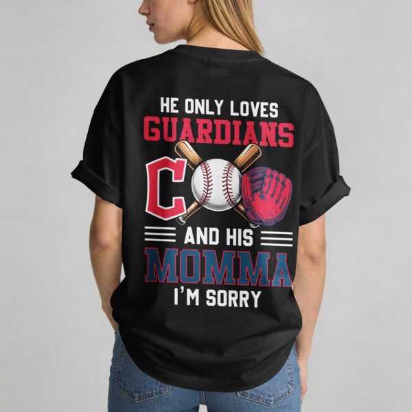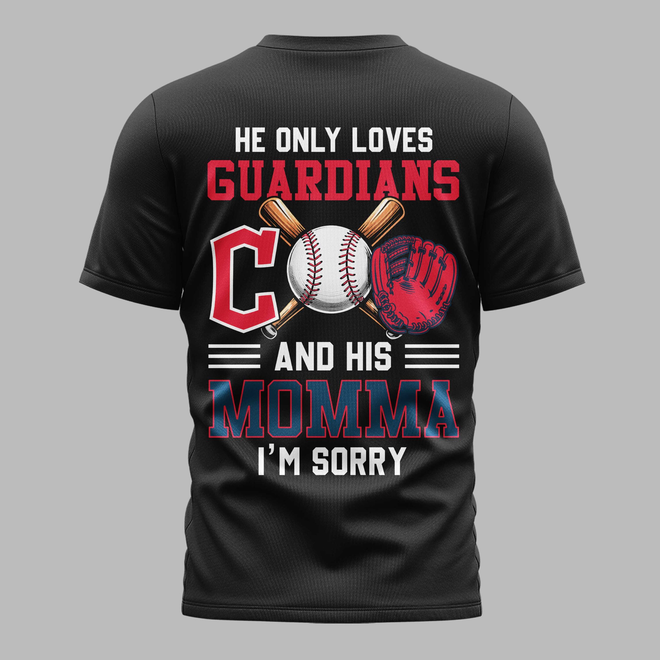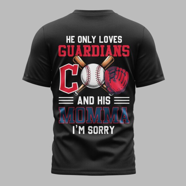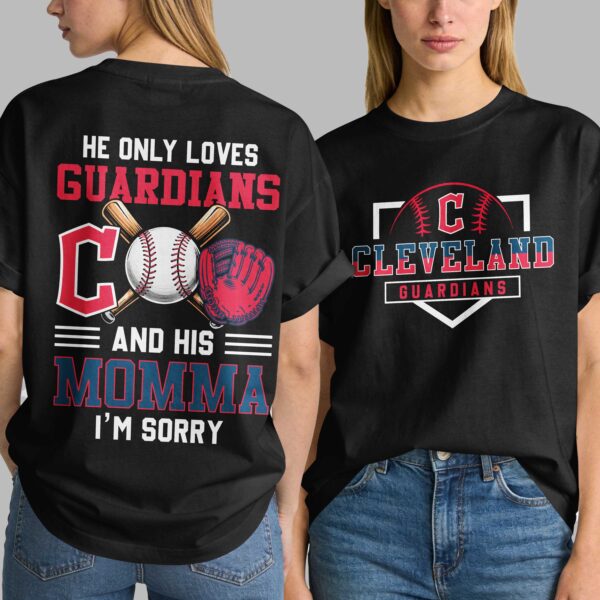 Celebrate your ultimate loyalty with this dynamic Cleveland Guardians fan tee! Perfect for the dedicated fan, this shirt proudly declares where your heart truly lies – with your favorite baseball team and, of course, Momma. The front showcases a bold Cleveland Guardians logo with a baseball-stitched C and CLEVELAND GUARDIANS in a banner. The back delivers a humorous message: HE ONLY LOVES GUARDIANS AND HIS MOMMA I’M SORRY, accompanied by a baseball, crossed bats, and a vibrant red glove. This spirited apparel is ideal for game day at the stadium, casual watch parties, or everyday wear to showcase your team spirit and playful side. It’s a perfect gift for any ultimate Cleveland Guardians fan who cherishes both their team and their mother, making a clear and comical statement.