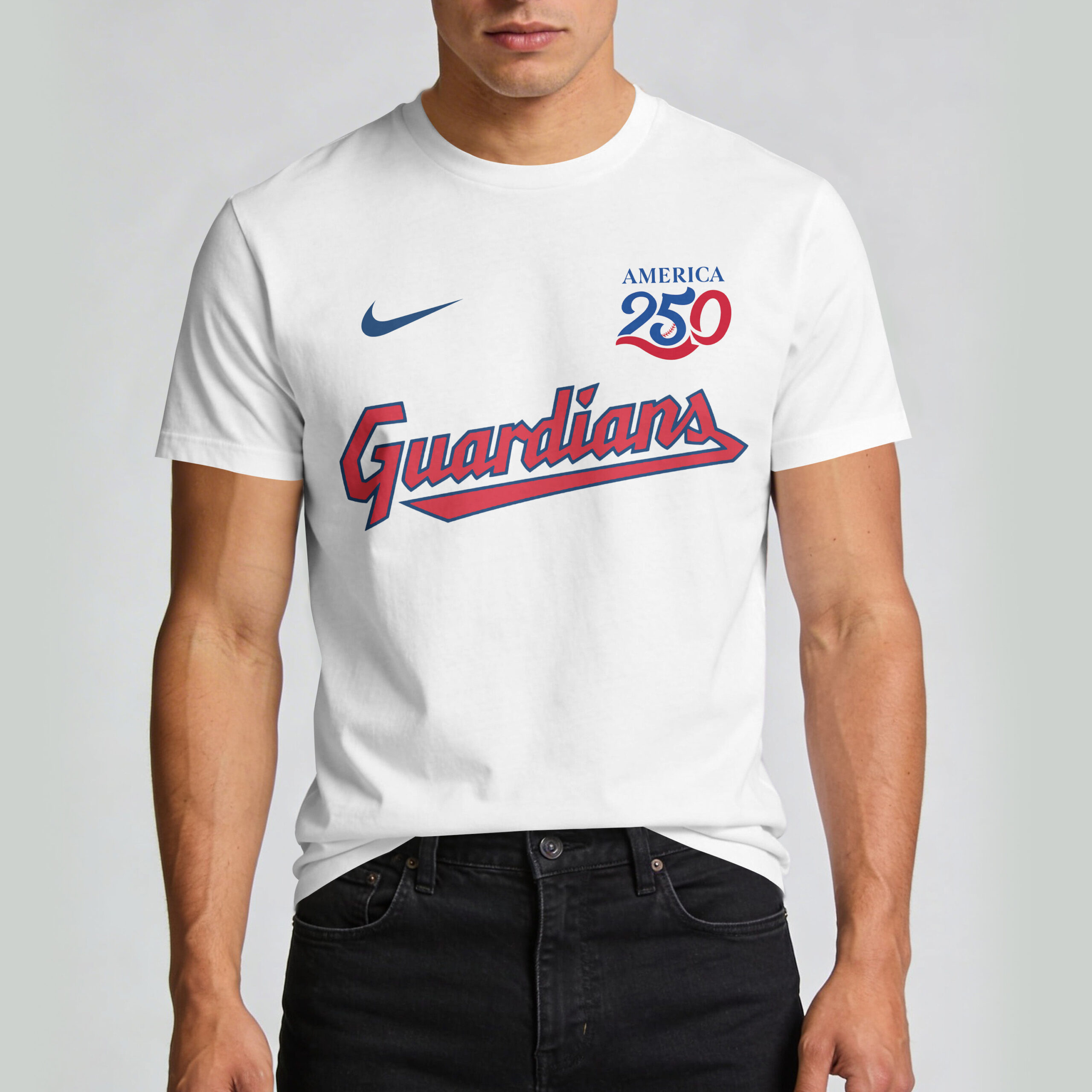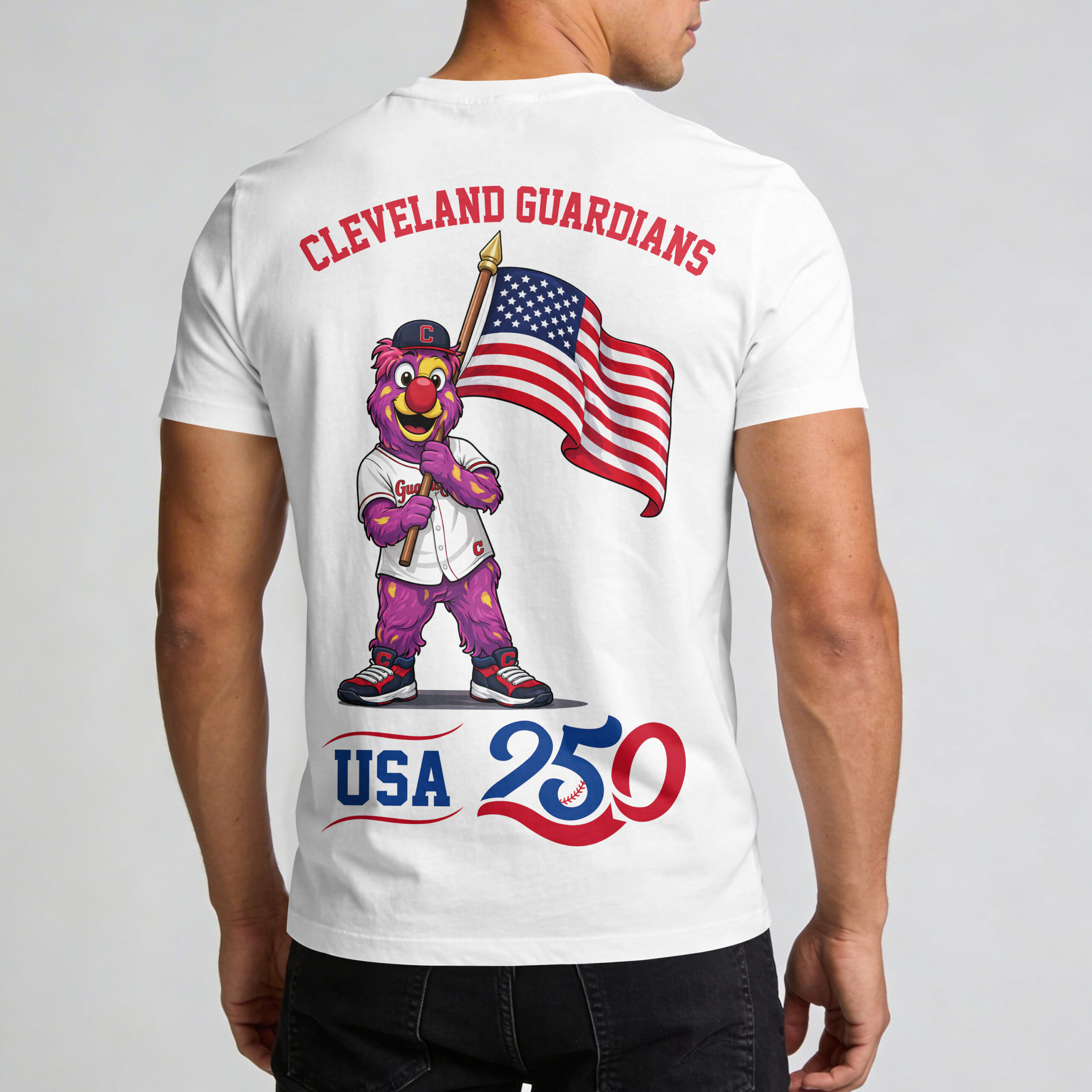 Unite your passion for the Cleveland Guardians with patriotic pride in this exclusive USA 250 Independence Baseball Fan T-Shirt! A must-have for devoted fans, this tee perfectly blends team loyalty with a momentous American celebration. The front features a vibrant ‘AMERICA 250’ graphic, highlighting a baseball stitch on the ‘0’, positioned above the iconic red script ‘Guardians’ logo, outlined in blue. The back proudly displays ‘CLEVELAND GUARDIANS’ arched, with a spirited mascot in uniform enthusiastically waving the American flag. Below, the ‘USA 250’ graphic reinforces this special patriotic theme. Wear it to the ballpark, Fourth of July celebrations, or any day you want to showcase your Cleveland Guardians allegiance and American spirit. A grand slam for any true fan!