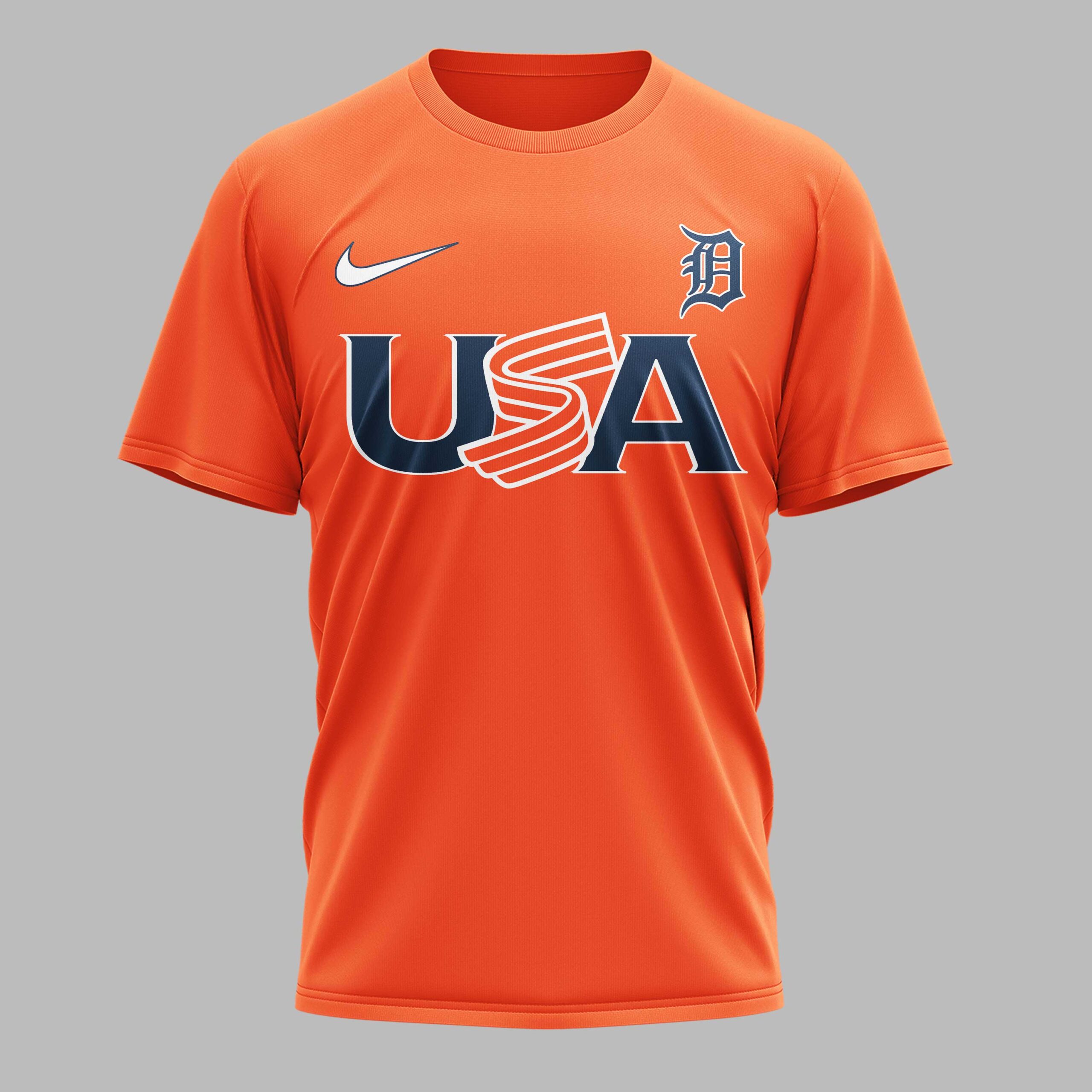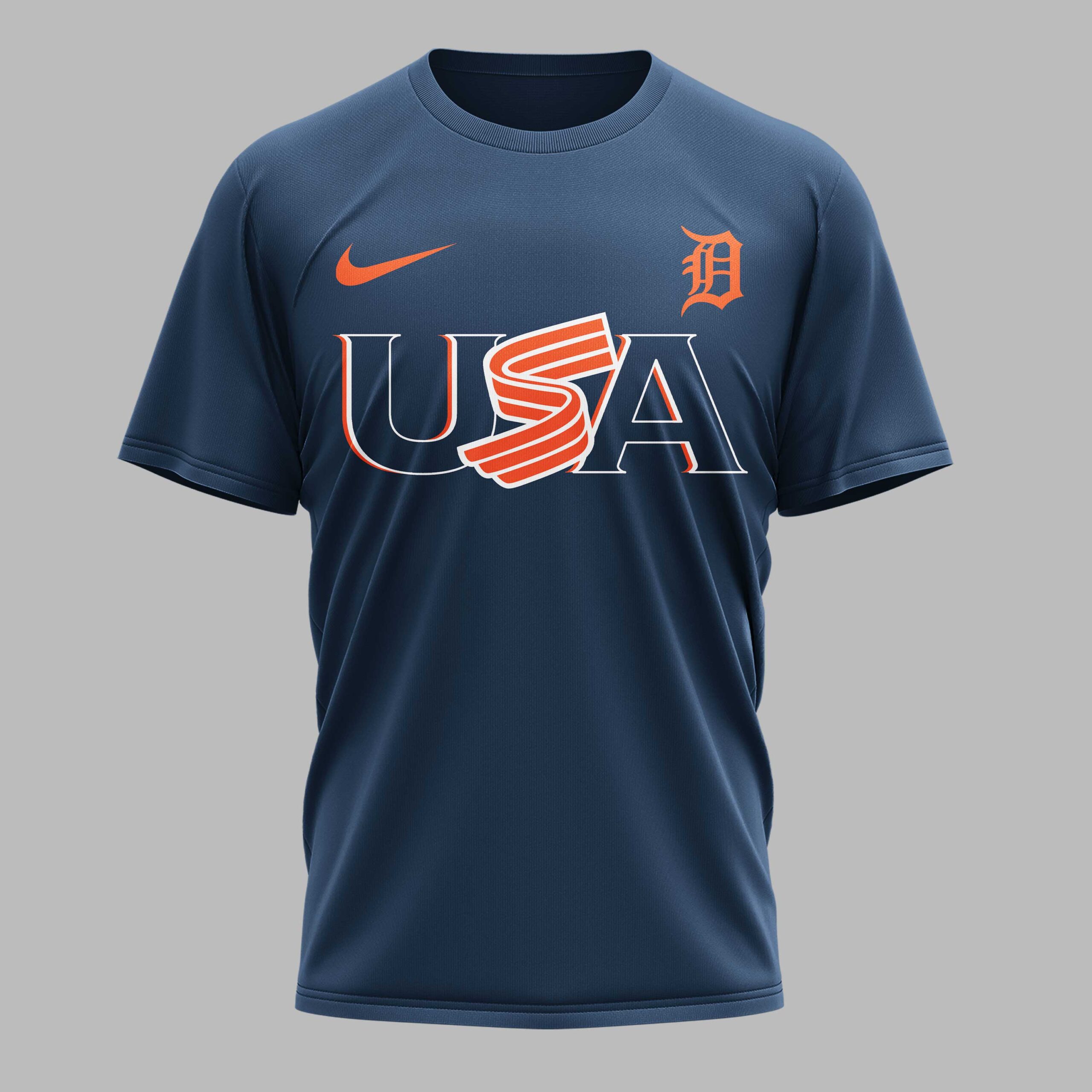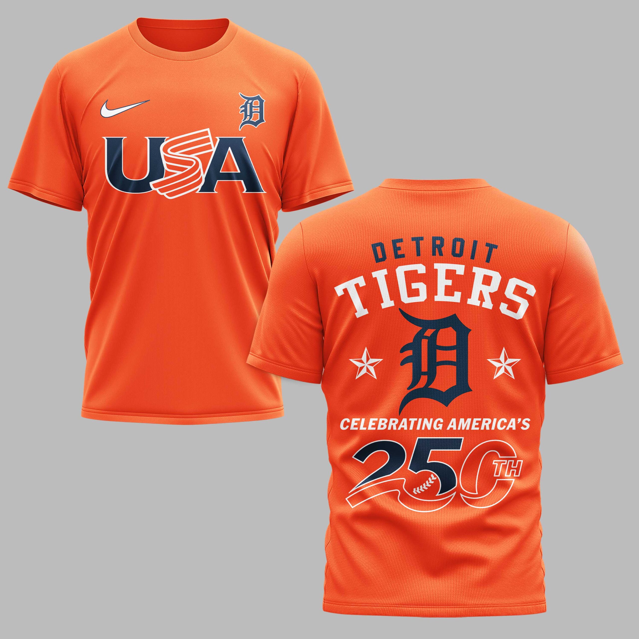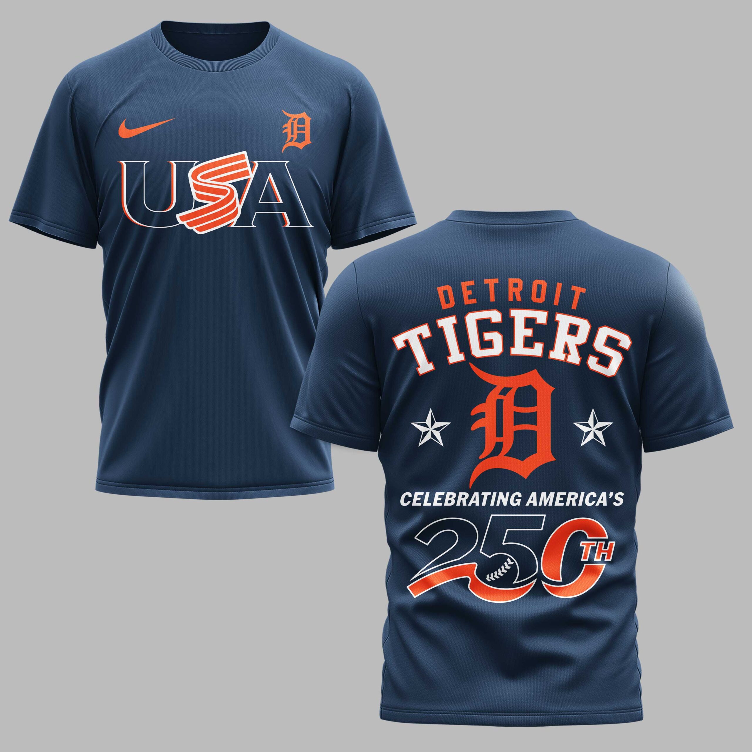 Detroit Tigers USA 250 Independence Baseball Fan T-Shirt Show off your Detroit Tigers pride and your love for the red, white, and blue with this commemorative T-shirt. Designed for the ultimate fan, it blends iconic baseball heritage with a bold celebration of the nation’s milestone 250th anniversary. It is the perfect way to display your loyalty to both your team and your country in a single, energetic look. The front features a striking USA graphic in the team’s signature navy and orange colors, accented by the classic Old English D on the chest. On the back, the Detroit Tigers name stands out prominently above a large team logo and patriotic stars. The design is anchored by a special Celebrating America’s 250th graphic, showcasing a unique 250 with a baseball-inspired ribbon. This shirt is the perfect choice for game day at the ballpark, family Fourth of July barbecues, or simply showing your team spirit around town. It’s a must-have for any Tigers supporter who wants to celebrate this historic American anniversary in style.