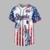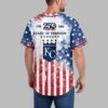 Celebrate American heritage and Kansas City Royals pride with this vibrant commemorative baseball jersey. Marking 250 years of freedom, this design blends national spirit with team loyalty, honoring the past while you cheer on your team. The front proudly features the Royals script, a 250 Years of Freedom emblem with a bald eagle, the KC crown logo, and the Statue of Liberty. The back shows 1776, 250, 2026, and Years of Freedom against a dynamic red, white, and blue stars and stripes background. Ideal for game days, patriotic holidays like the Fourth of July or Memorial Day, or showcasing your American spirit and team allegiance. Stand out, celebrating both freedom and your Royals with bold patriotic flair.