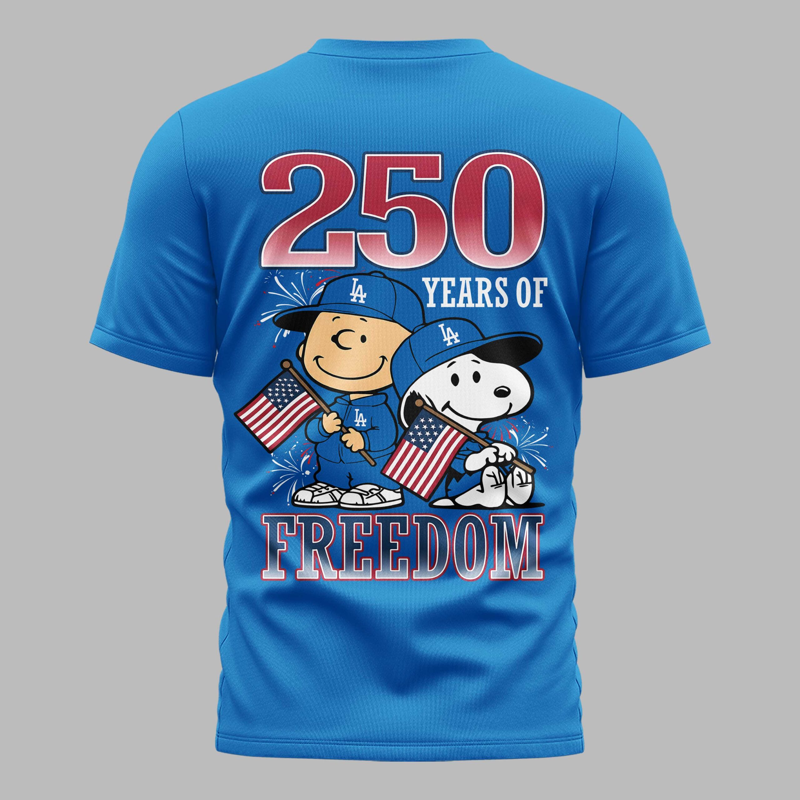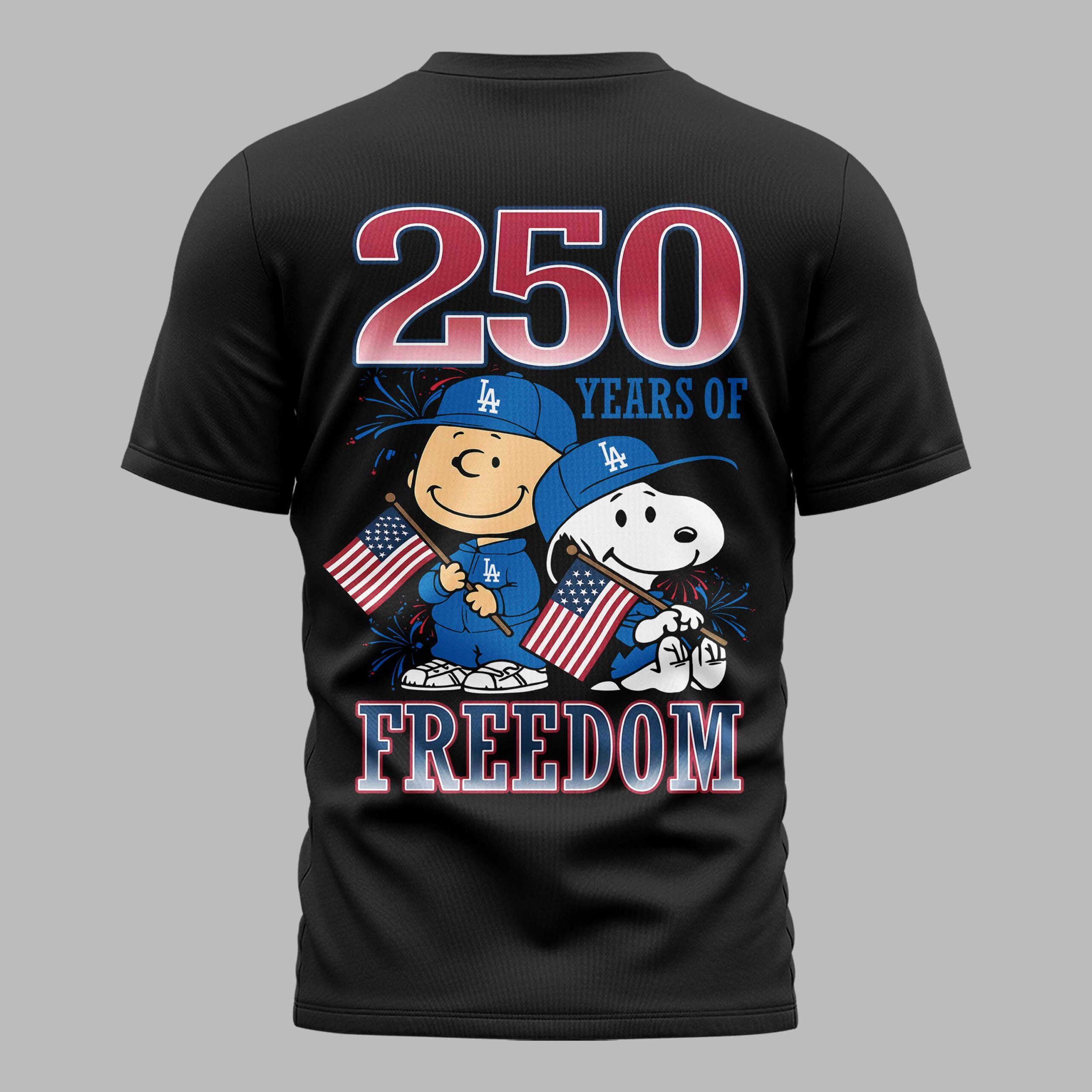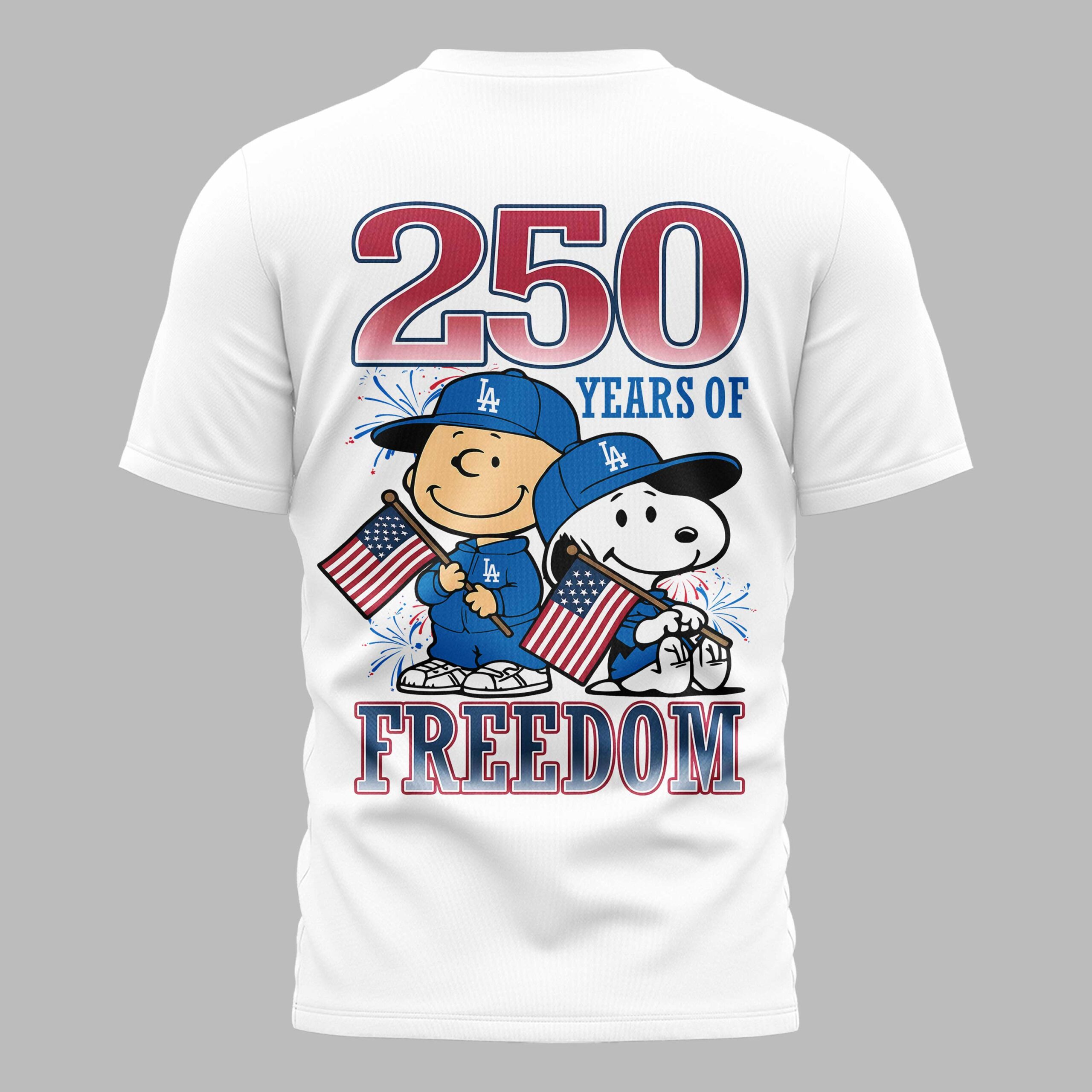 Los Angeles Dodgers 250th Freedom Anniversary Snoopy & Charlie Friendship Premium T-Shirt PH00003