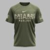 Show your unwavering support for the Miami Marlins and the heroes who defend our freedom with this special edition Military Appreciation Day t-shirt. This design perfectly blends your passion for South Florida baseball with a deep sense of national pride, making it an essential piece for any dedicated fan. The front features MIAMI in a rugged digital camouflage pattern accented by the team name. On the back, a bold MILITARY APPRECIATION DAY graphic takes center stage, framed by crossed bats and home plate. It proudly displays the seals of all six military branches surrounding the Marlins’ iconic ‘M’ logo to celebrate honor, respect, and gratitude. Whether you are heading to the ballpark for a game day salute, attending Independence Day celebrations, or simply representing your team around town, this shirt lets you show your colors with pride. It’s the ultimate way to honor our service members while cheering on the Marlins.