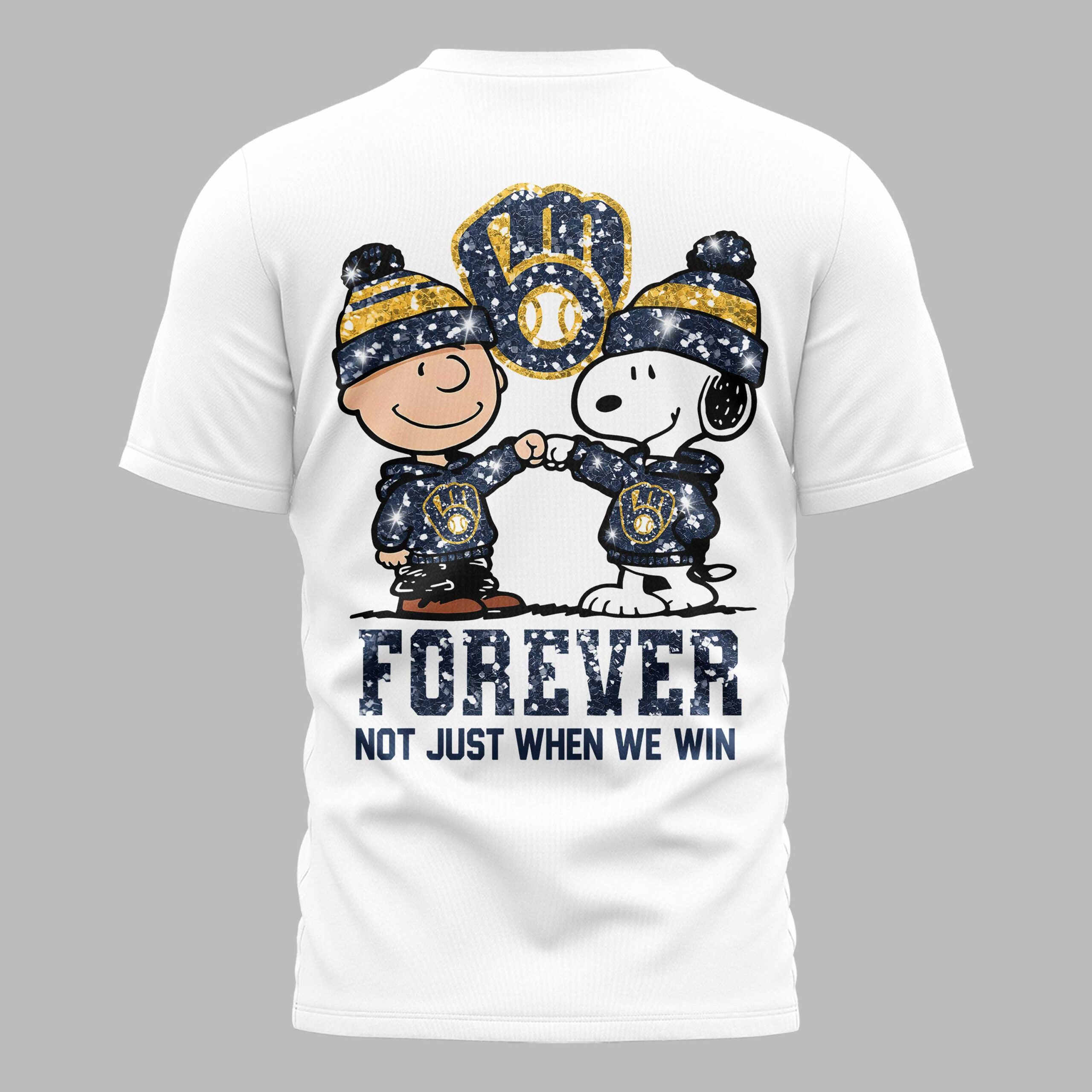 Milwaukee Brewers “FOREVER – Not Just When We Win” Snoopy & Charlie Glitter Friendship Premium T-Shirt PH00002