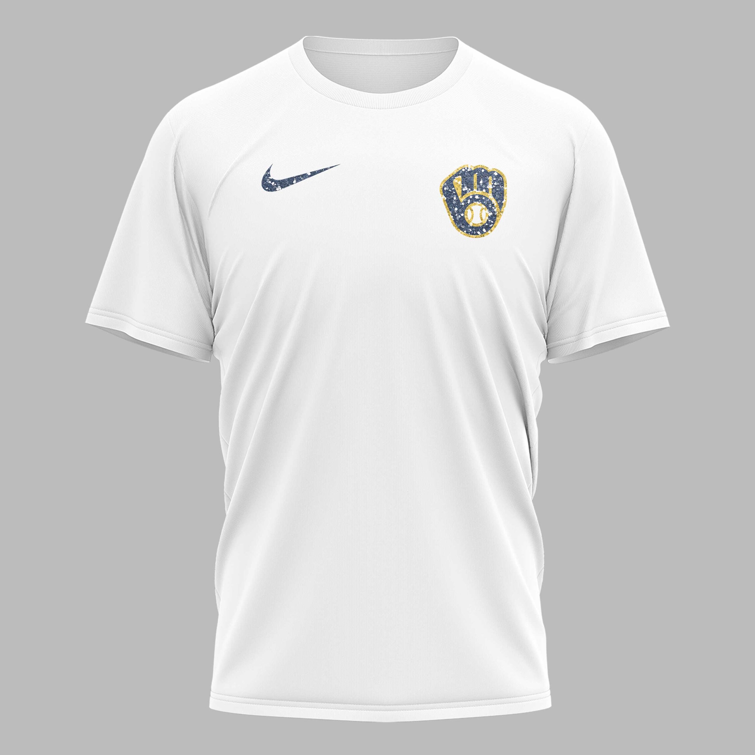Celebrate true baseball spirit and unwavering loyalty to your favorite team with this charming tee. Featuring beloved Peanuts characters, it’s perfect for Milwaukee Brewers fans who stand by their team through every inning, win or lose, embodying the ultimate dedication. The front of this vibrant white tee proudly displays a small, glittery Milwaukee Brewers glove logo on the left chest. The back showcases an adorable design of Charlie Brown and Snoopy, both decked out in matching Brewers hats and hoodies, sharing a supportive fist bump. Below them, the powerful message FOREVER NOT JUST WHEN WE WIN shines in a sparkling, glitter-infused text, emphasizing your unwavering dedication. Wear this spirited tee to American Family Field, during watch parties with friends, or while running errands around town to show off your Brewers pride and love for Peanuts. It’s ideal for game days, casual outings, or simply lounging at home, celebrating the enduring bond between fans and their team.