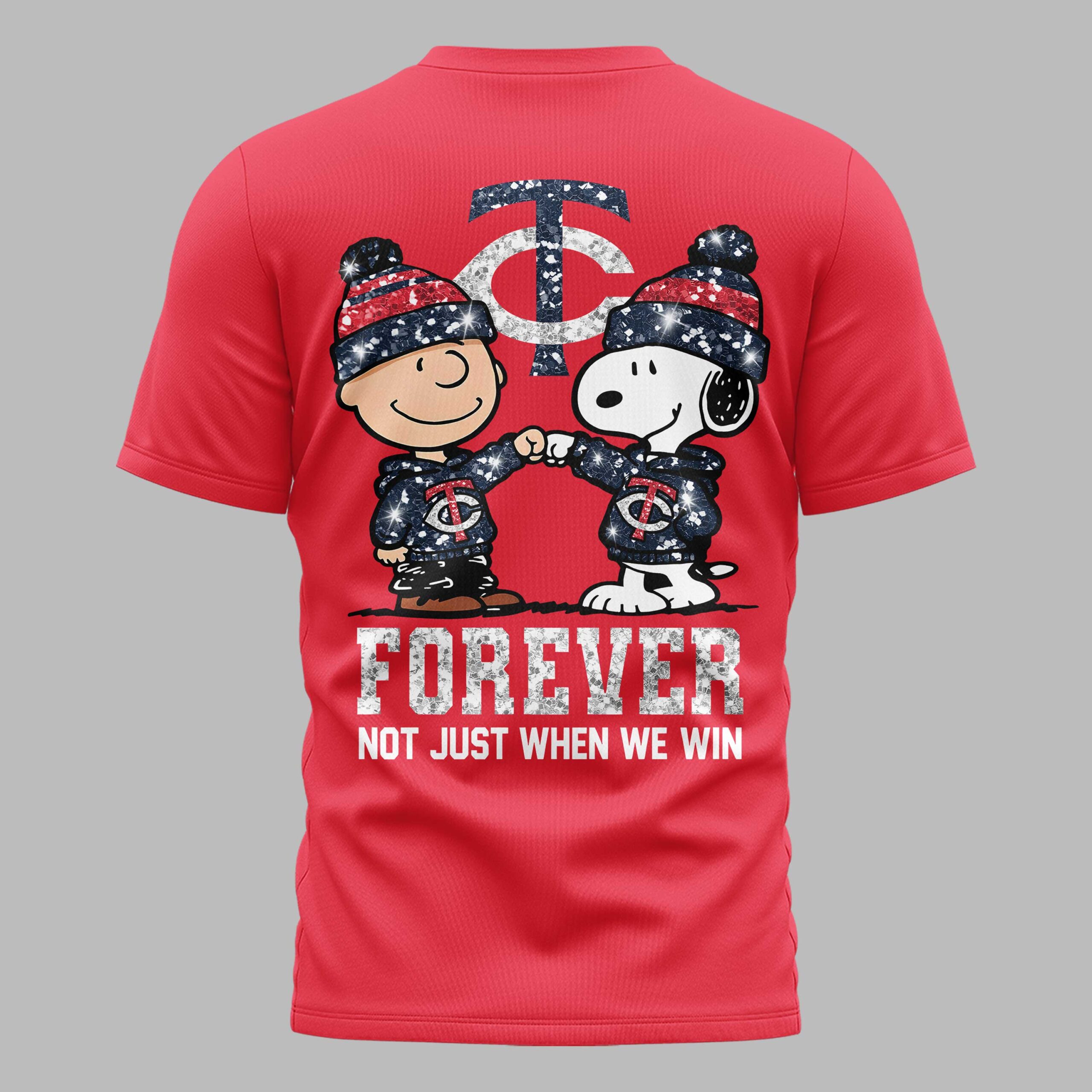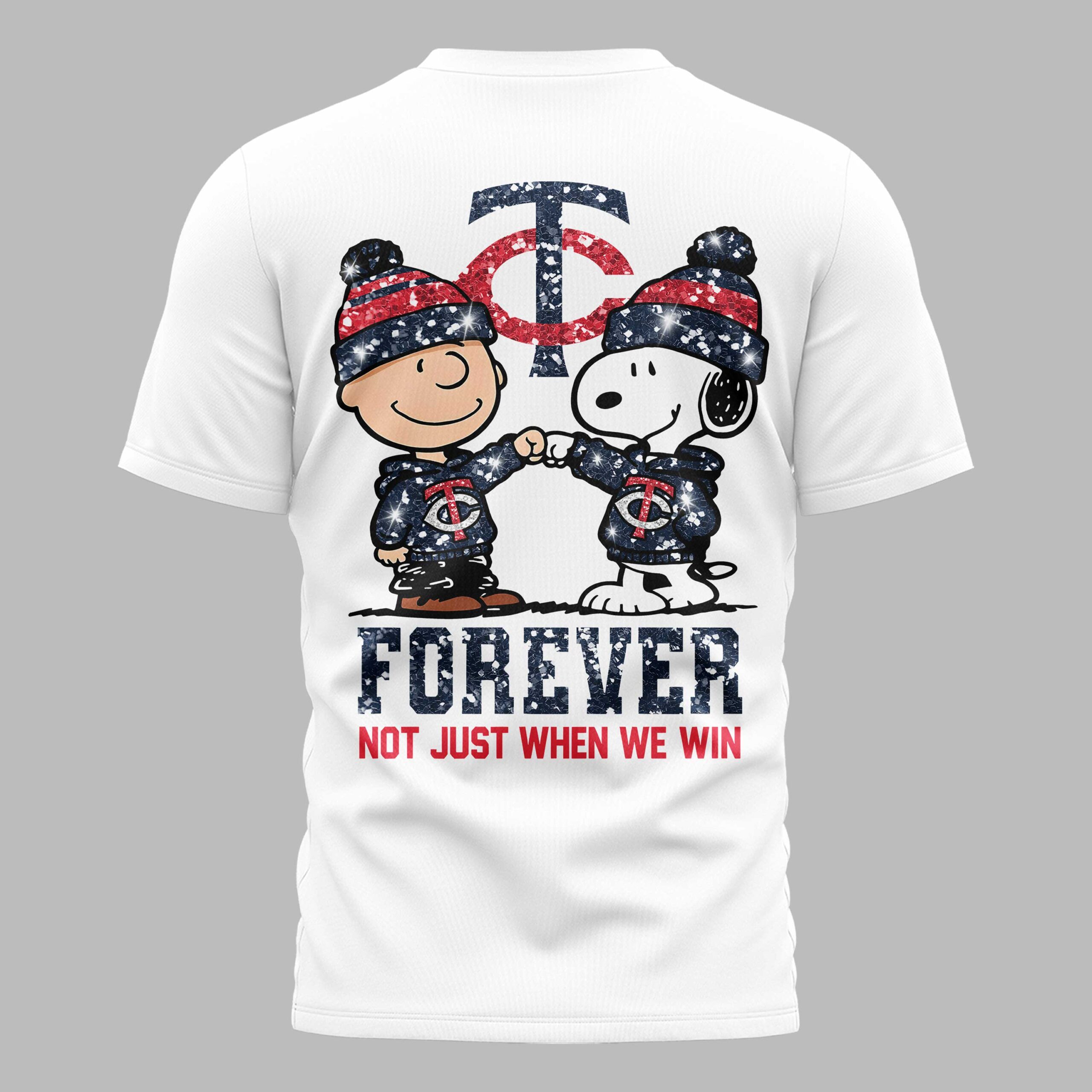 Minnesota Twins “FOREVER - Not Just When We Win” Snoopy & Charlie Glitter Friendship Premium T-Shirt PH00002 Minnesota Twins “FOREVER - Not Just When We Win” Snoopy & Charlie Glitter Friendship Premium T-Shirt PH00002