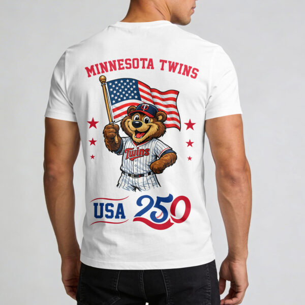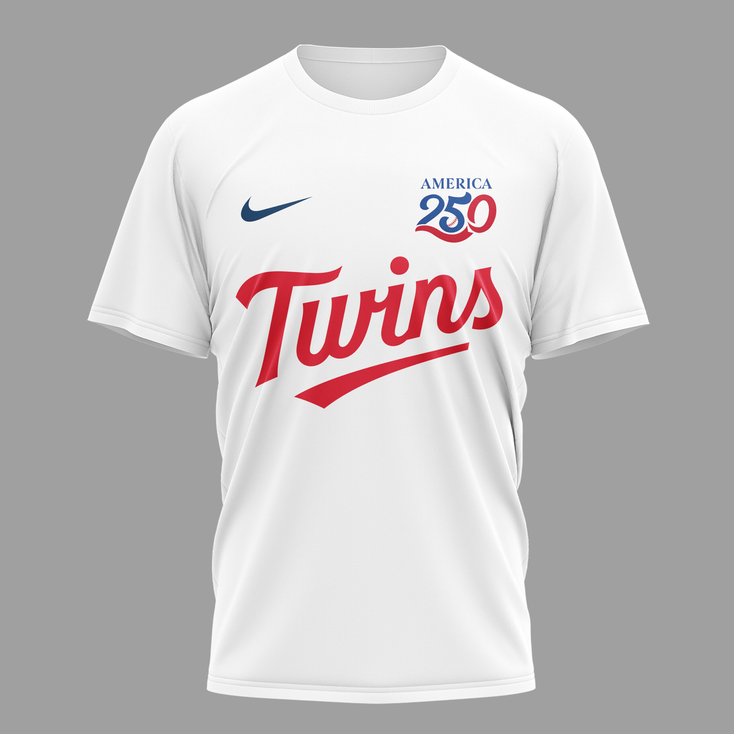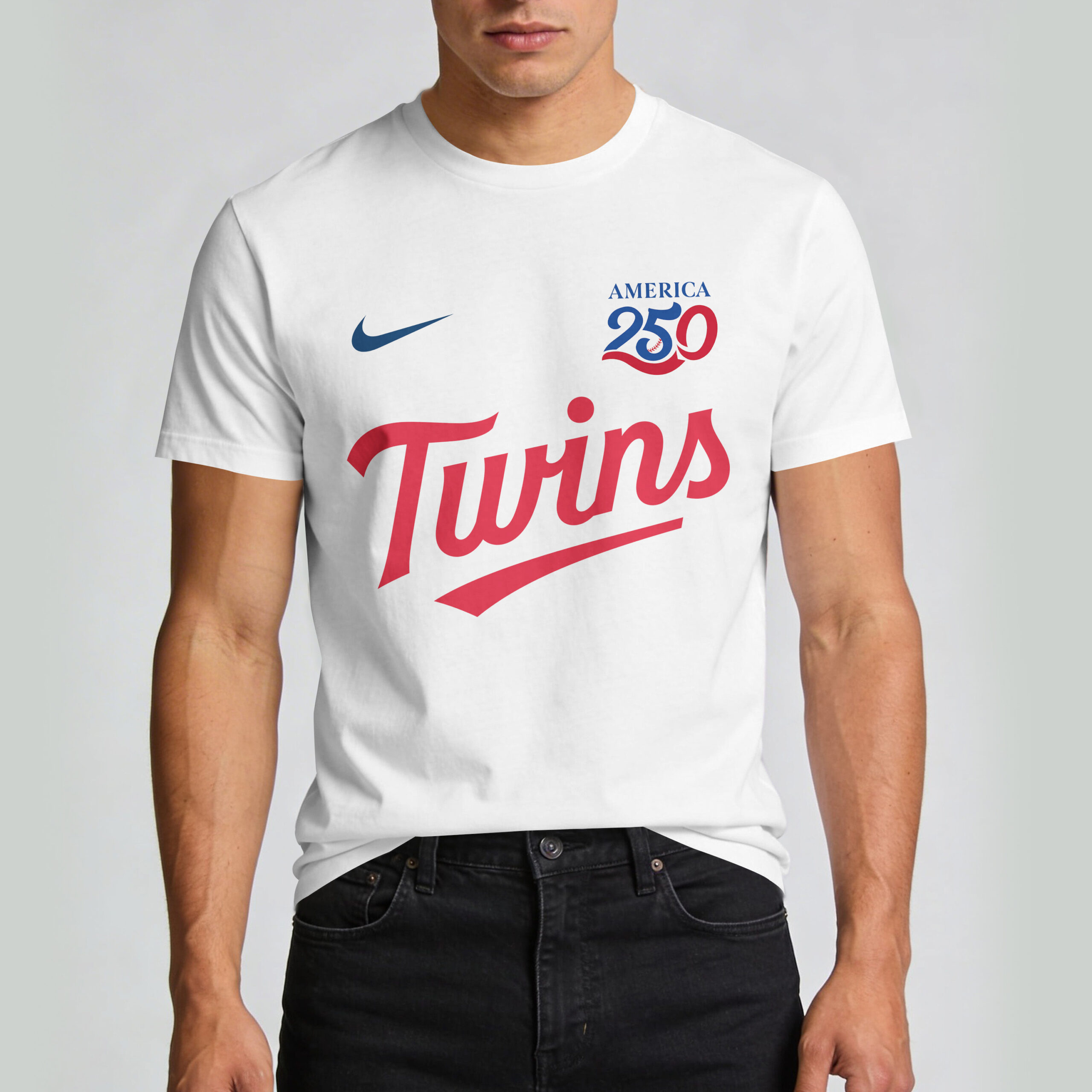 Celebrate two icons of the American summer—Minnesota Twins baseball and the historic 250th anniversary of independence. This striking white tee is designed for the ultimate fan who wants to showcase their Twin Cities loyalty alongside their national pride. It’s a bold, energetic way to honor the game and the country in one stylish look that every Twins supporter will appreciate. The front prominently features the classic Twins script logo in vibrant red, paired with a special America 250 commemorative emblem. Flip it over to find a spirited graphic of the team’s mascot proudly waving the Stars and Stripes. Arched Minnesota Twins text and patriotic stars complete the detailed back-of-shirt design, ensuring you make a statement from every angle. Whether you’re heading to Target Field, firing up the grill for an Independence Day barbecue, or just representing your team on a sunny afternoon, this shirt is your go-to gear for a season of celebration.