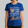 Show your unwavering New York Mets pride with this spirited tee designed especially for the best grandmas in the stands! If your heart beats for baseball and you cheer louder than anyone, this shirt is the perfect way to declare your loyalty to the team and your unique grandma style. It’s more than just a shirt; it’s a testament to your passion for the game and your beloved Mets. The front of this vibrant blue shirt features a dazzling design that truly stands out. A beautiful heart shape, sparkling with orange glitter, cradles a classic baseball adorned with the iconic NY logo. Swirling around the heart are elegant white diamond-like accents, adding a touch of sparkle. Bold white text proudly proclaims, Some Grandmas PLAY BINGO REAL GRANDMAS = Watch = NEW YORK, leading into the glittery orange Mets at the bottom, making a clear statement about where your priorities lie! Perfect for cheering on the Mets at Citi Field, hosting game day parties, or simply showing off your team spirit around town, this shirt is a home run for any dedicated grandma fan. Wear it to family gatherings, casual outings, or while watching the game from the comfort of your home. It’s an ideal gift for the Mets-loving grandma in your life, celebrating her love for both her family and her favorite baseball team.