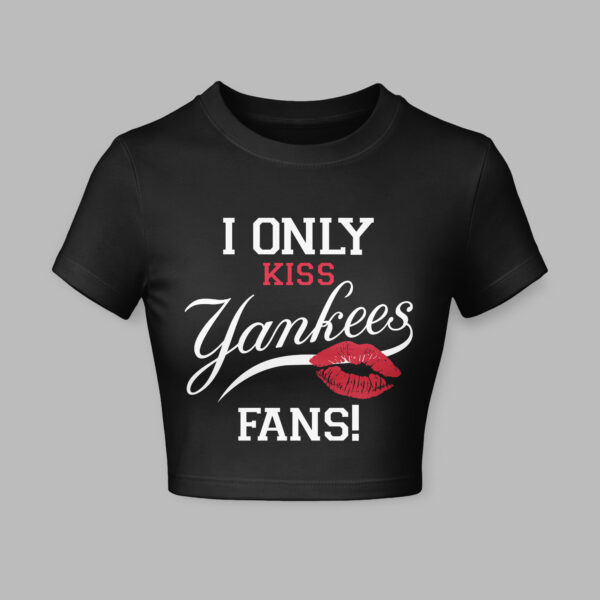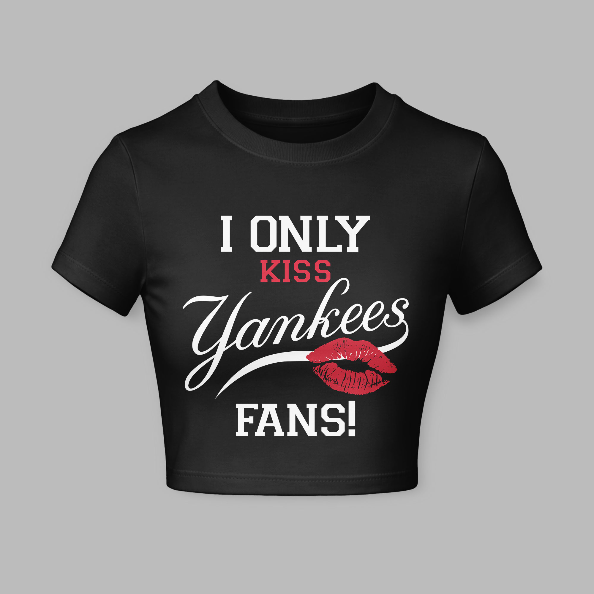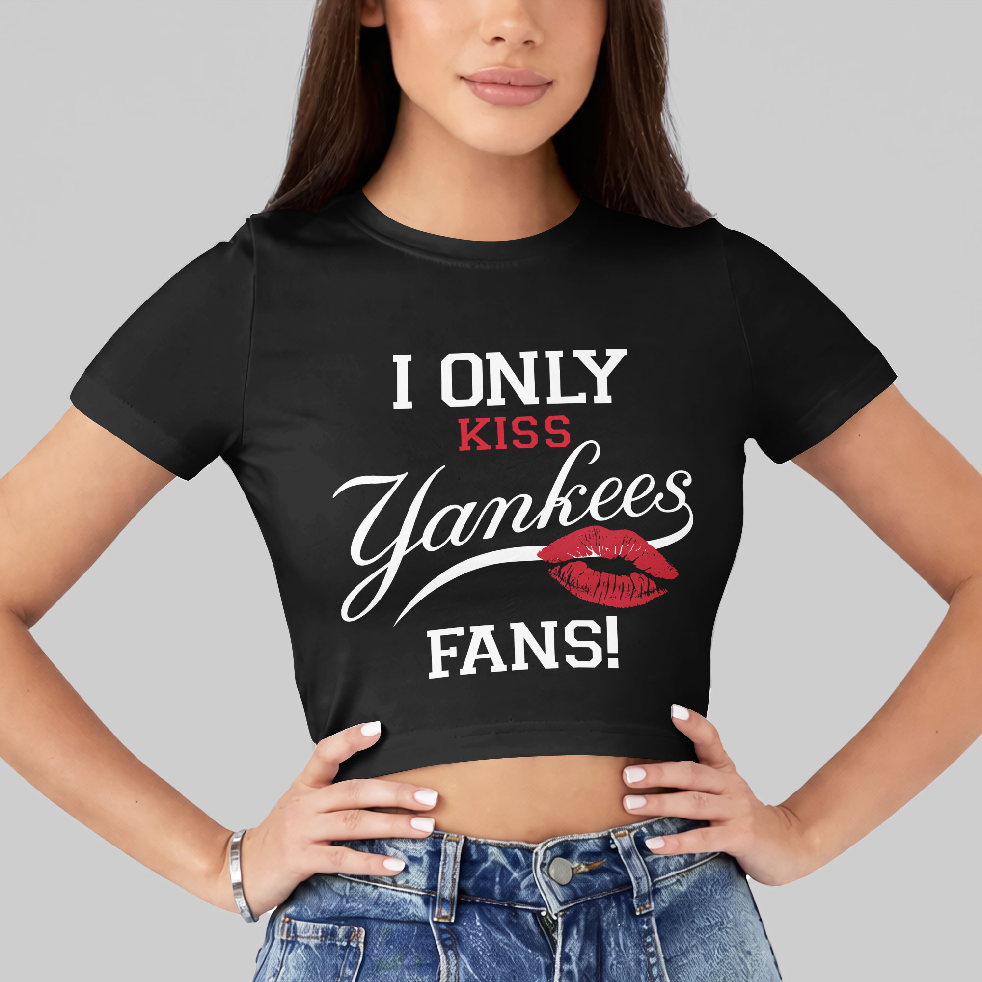 Show off your Bronx Bomber pride with a playful twist. This New York Yankees tee is for the most dedicated fans who aren’t afraid to state their loyalty loud and clear. It perfectly blends team devotion with a fun, spirited attitude that is ideal for any fan gathering or patriotic celebration. The design features bold collegiate lettering on the front reading I ONLY KISS Yankees FANS! accented by a vibrant red lip graphic. The team name pops in a classic white script with a sharp swoosh underline. The back is finished with the iconic MLB logo at the nape, marking your official fan status with a clean and professional touch. Grab this top for game day at the stadium, summer ballpark hangouts, or Independence Day festivities. It is a versatile piece that moves from the stands to everyday wear, ensuring everyone knows exactly where your heart and your loyalty lie.