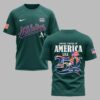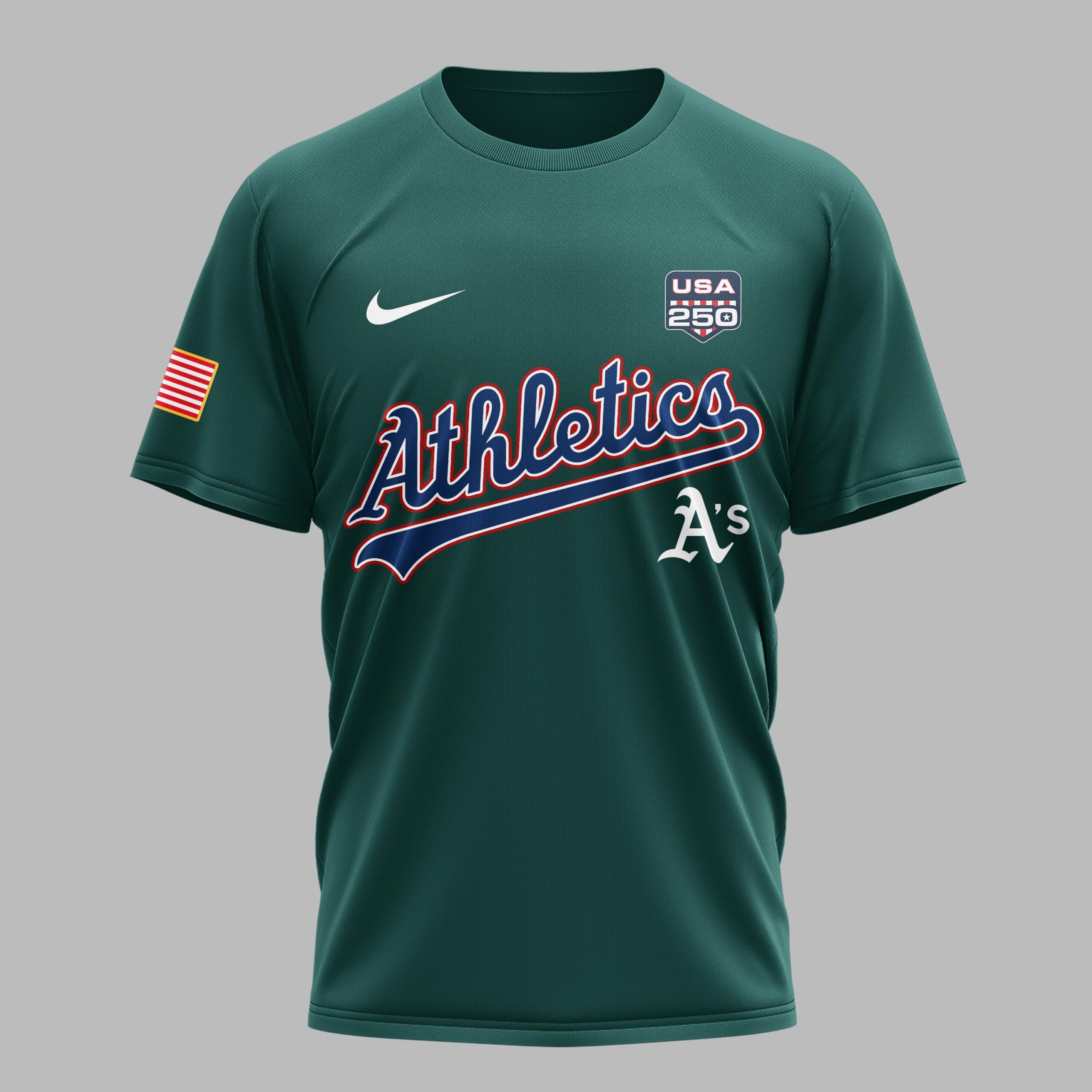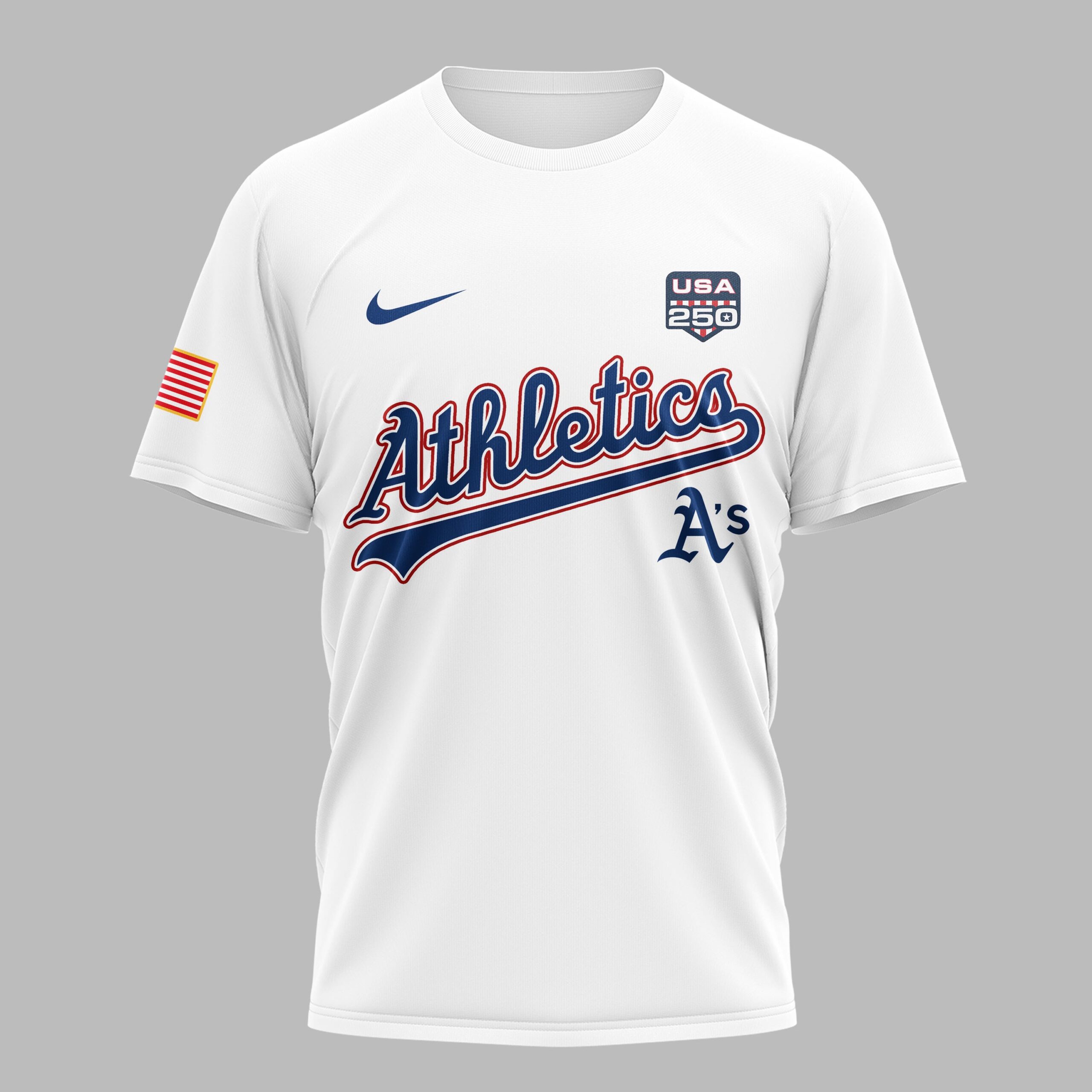 Athletics fans, get ready to celebrate a historic milestone in style. This Athletics USA 250 Independence T-Shirt is the ultimate tribute to both your favorite team and the nation’s semiquincentennial. Designed for fans who value tradition and national pride, this shirt combines the classic spirit of baseball with a bold, patriotic aesthetic that stands out in any crowd. The front showcases the legendary Athletics script and A’s logo, complemented by a USA 250 patch and an American flag on the sleeve. The back is a true showstopper, featuring a large United States of America graphic and a star-spangled 250th commemorative design marking the years 1776 to 2026. The vibrant red, white, and blue elements pop brilliantly against the team’s signature green background. This is the perfect choice for game days at the ballpark, Independence Day celebrations, or everyday wear for any proud supporter. Show off your Athletics loyalty while honoring 250 years of American history.