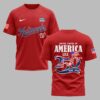 Celebrate a historic milestone with the Phillies USA 250 Independence Baseball Fan T-Shirt. This vibrant red tee perfectly blends your passion for Philadelphia baseball with a proud tribute to the nation’s 250th anniversary. It’s a must-have for any fan looking to showcase their team loyalty and American spirit in one bold look. The front displays the iconic Phillies script and a special USA 250 chest shield, complemented by patriotic flag patches on the sleeves. On the back, a massive 250th graphic takes center stage, featuring stars-and-stripes detailing and a 1776-2026 banner. This detailed design ensures you stand out as a dedicated supporter of both the team and the country’s heritage. Perfect for game days at the ballpark, Independence Day celebrations, or casual everyday wear, this shirt is designed for the ultimate fan. Represent your team with pride while commemorating a once-in-a-lifetime national anniversary.