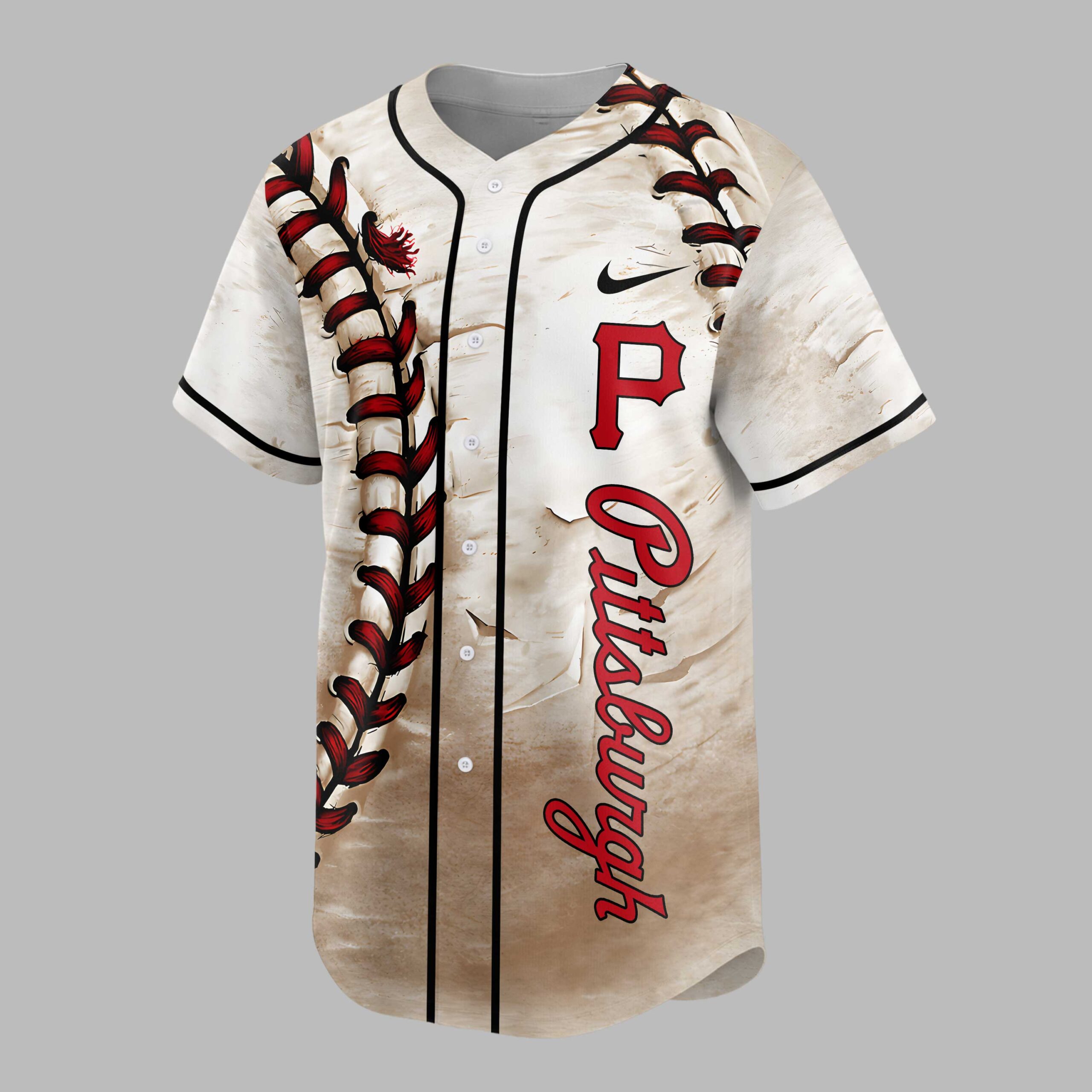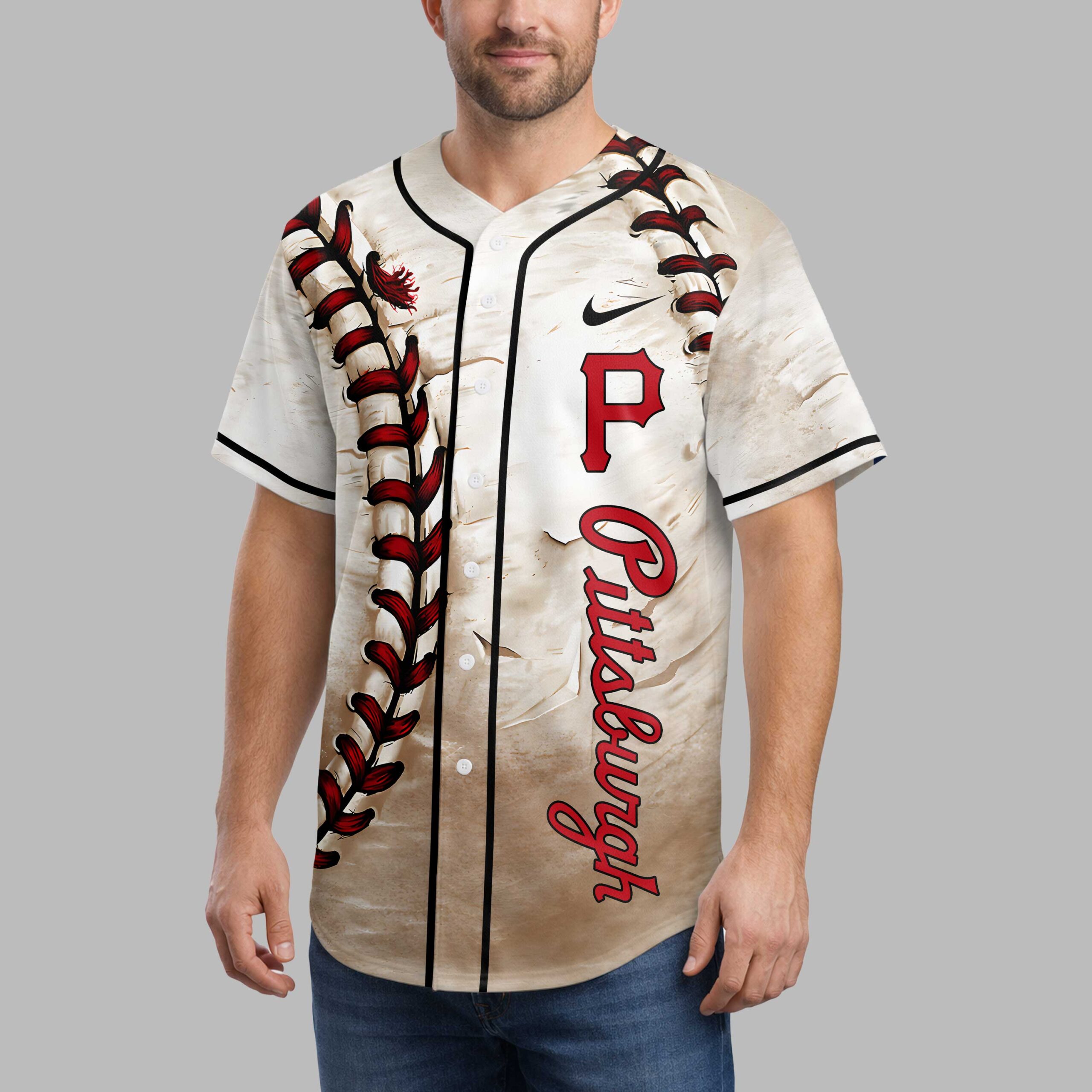 Showcase your unwavering devotion to Pittsburgh baseball with this vintage-inspired fan jersey. Crafted for the true enthusiast, this shirt embodies the spirit of the game with its classic distressed look, perfect for celebrating every home run and unforgettable moment. It’s more than just apparel; it’s a tribute to your team and the timeless tradition of America’s favorite pastime. The front of the jersey features a striking vertical baseball lacing design in bold red, complemented by a prominent P and the team city Pittsburgh in elegant red script down the side. The back proudly displays customizable Your Name and 00 numbering, with the same iconic baseball stitching subtly incorporated into the numbers themselves, all set against a matching weathered backdrop. Whether you’re cheering from the stands, gathering with friends for a watch party, or simply enjoying a sunny day out, this jersey is your go-to. It’s ideal for game days, casual outings, or any occasion where you want to display your Pittsburgh pride with a touch of timeless baseball flair.
