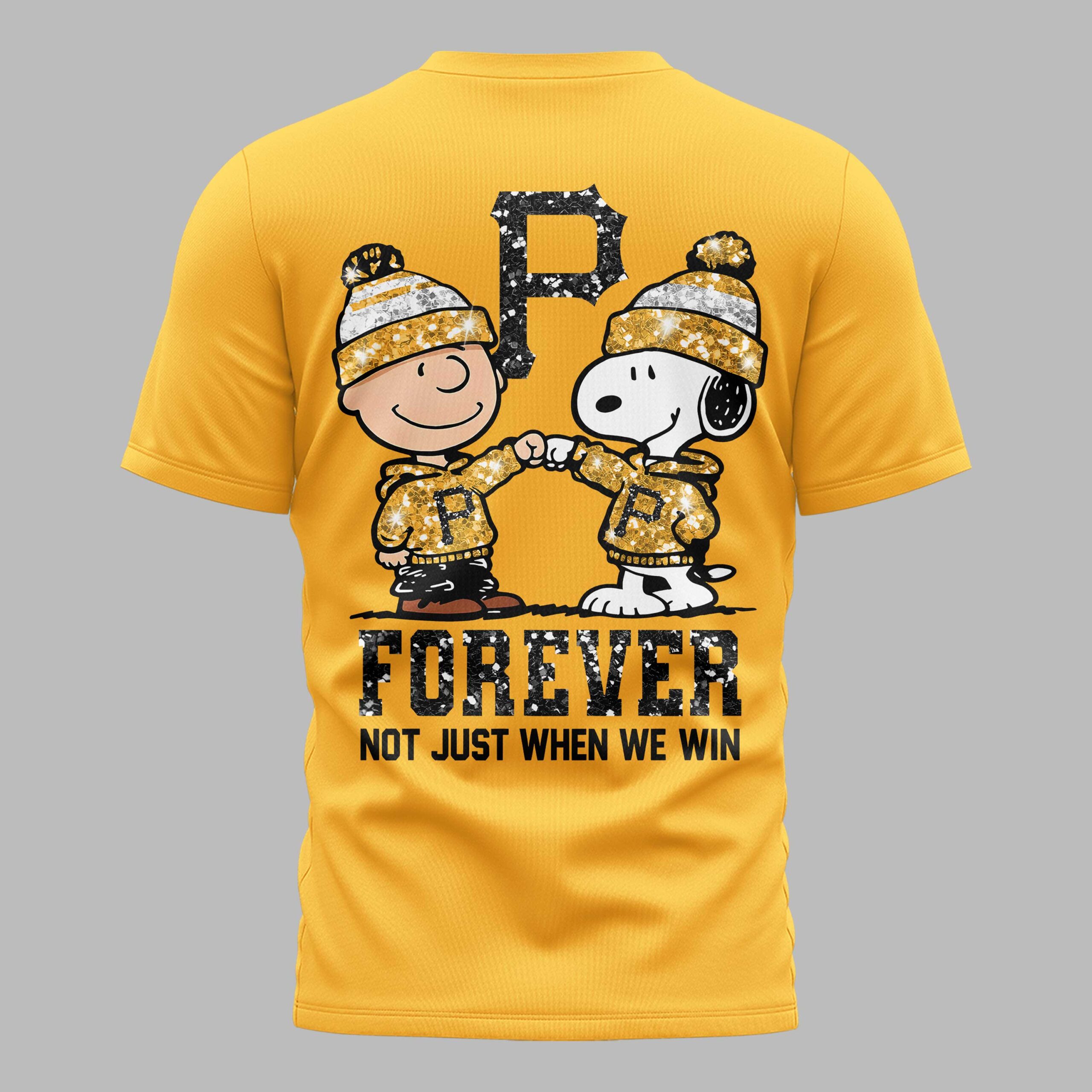 Pittsburgh Pirates “FOREVER - Not Just When We Win” Snoopy & Charlie Glitter Friendship Premium T-Shirt PH00002 Pittsburgh Pirates “FOREVER - Not Just When We Win” Snoopy & Charlie Glitter Friendship Premium T-Shirt PH00002