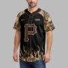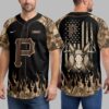 Unleash your dual passions for the Pittsburgh Pirates and the great outdoors with this unique baseball jersey. It’s more than just team gear; it’s a bold statement that blends your loyalty to the diamond with your adventurous spirit, perfect for any fan who loves the game as much as they love nature. The front features a striking wood-textured ‘P’ emblem against a sleek black backdrop, complemented by rugged camouflage sleeves and a subtle ‘PIRATES’ tag. The back truly makes a statement, showcasing the iconic ‘P’ set against a distressed American flag, powerfully combined with a detailed deer skull, crossed baseball bats, and subtle pine tree silhouettes. Camo flames lick up from the bottom hem, adding an extra layer of fierce style to both the front and back. This one-of-a-kind jersey is ideal for cheering on the Pirates at the ballpark, enjoying a weekend hunting trip, or simply showcasing your unique blend of team pride and outdoor lifestyle. Wear it to express your enduring spirit, whether you’re in the stands or out in the wild.