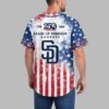 Celebrate both your unwavering San Diego Padres pride and American spirit with this striking patriotic baseball jersey. Commemorating 250 years of freedom, this vibrant top blends your love for the game with a bold display of national pride, perfect for any devoted fan. The jersey features a dynamic distressed American flag design with classic red and white stripes and star-spangled blue sections. The front proudly displays Padres in bold blue lettering with the iconic SD logo, alongside a detailed image of the Statue of Liberty and a special 250 Years of Freedom emblem with an eagle. The back echoes this powerful message with 1776 250 2026 YEARS OF FREEDOM and the large SD logo. Whether you’re cheering at Petco Park, attending a Fourth of July celebration, or simply enjoying a summer day, this jersey is designed to make a statement. It’s the ideal way to show your allegiance to the Padres and honor the enduring spirit of American liberty all season long.