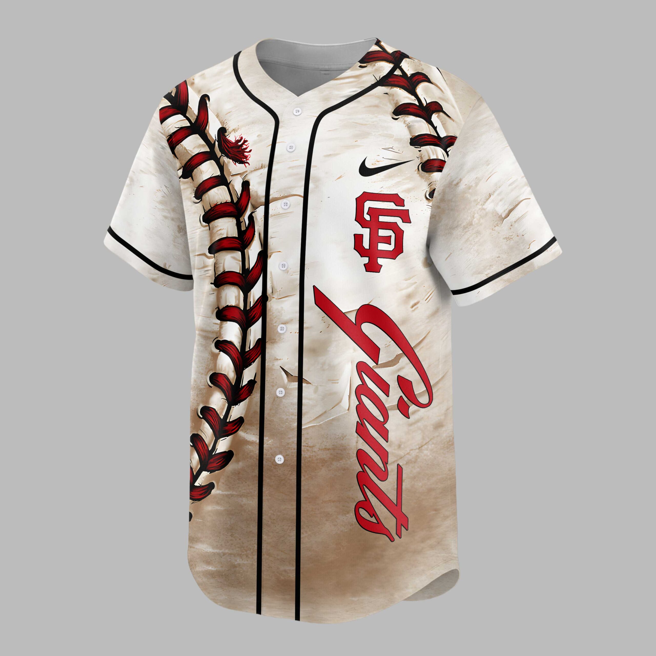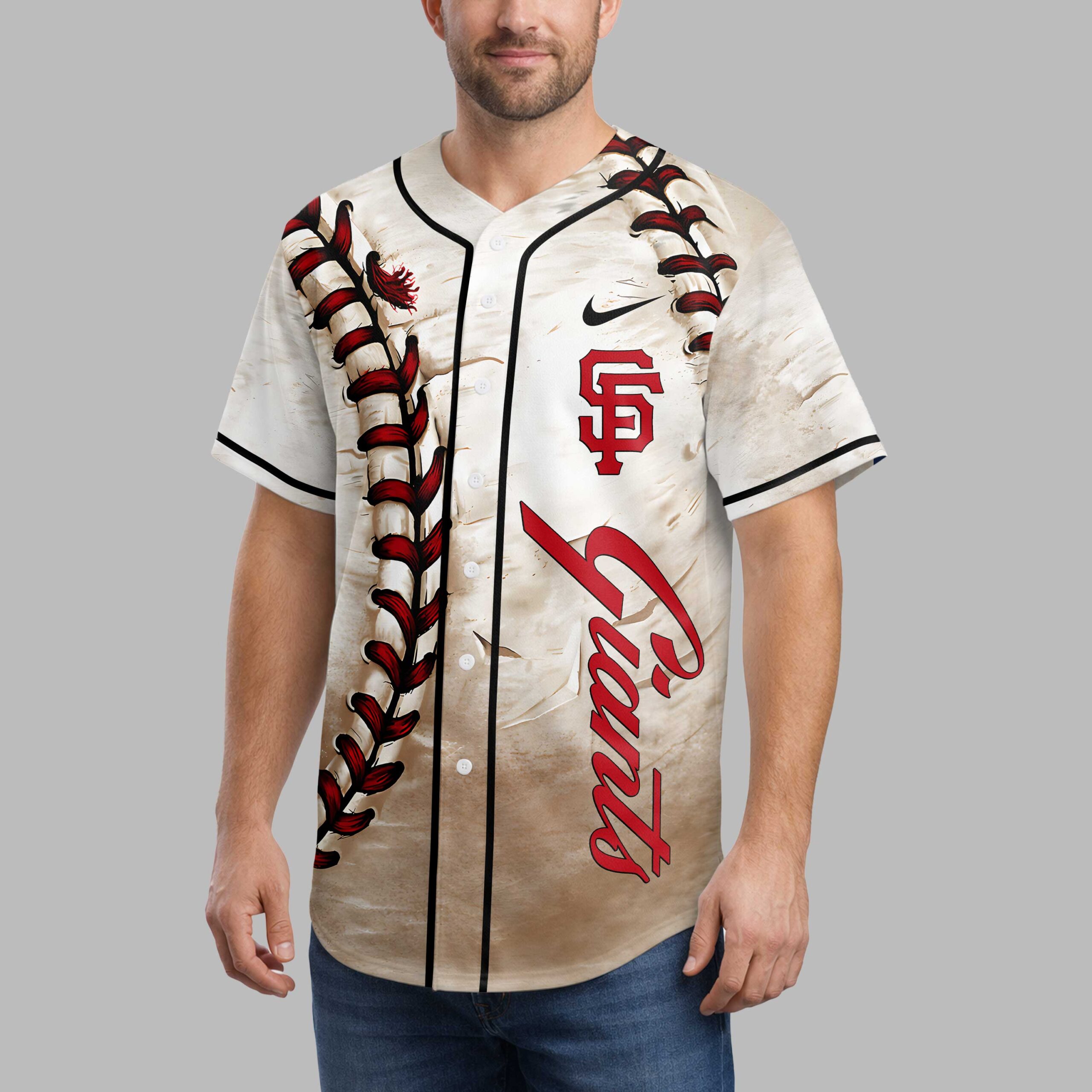 Step up to the plate in authentic style with this unique Vintage Giants Baseball Jersey! Perfect for dedicated fans, this custom top combines classic baseball aesthetics with a rugged, distressed look, letting you celebrate your team with a one-of-a-kind flair. Show your unwavering loyalty and timeless passion for the game and the Giants. The front features a striking cream-colored, worn-in design with a prominent red baseball stitch graphic running down the side. The iconic red SF logo proudly sits on the chest, accompanied by the vertical Giants text and a subtle Nike swoosh. The back lets you personalize your gear with Your Name in a stylish script above the large 00 numbers, each cleverly designed with baseball stitching inside, enhancing the vintage appeal. Whether you’re catching a game at the ballpark, hosting a watch party, or just heading out for a casual day, this personalized jersey is your go-to. It’s the ultimate way to display your team pride and stand out from the crowd with a cool, retro baseball vibe that speaks volumes about your fandom.