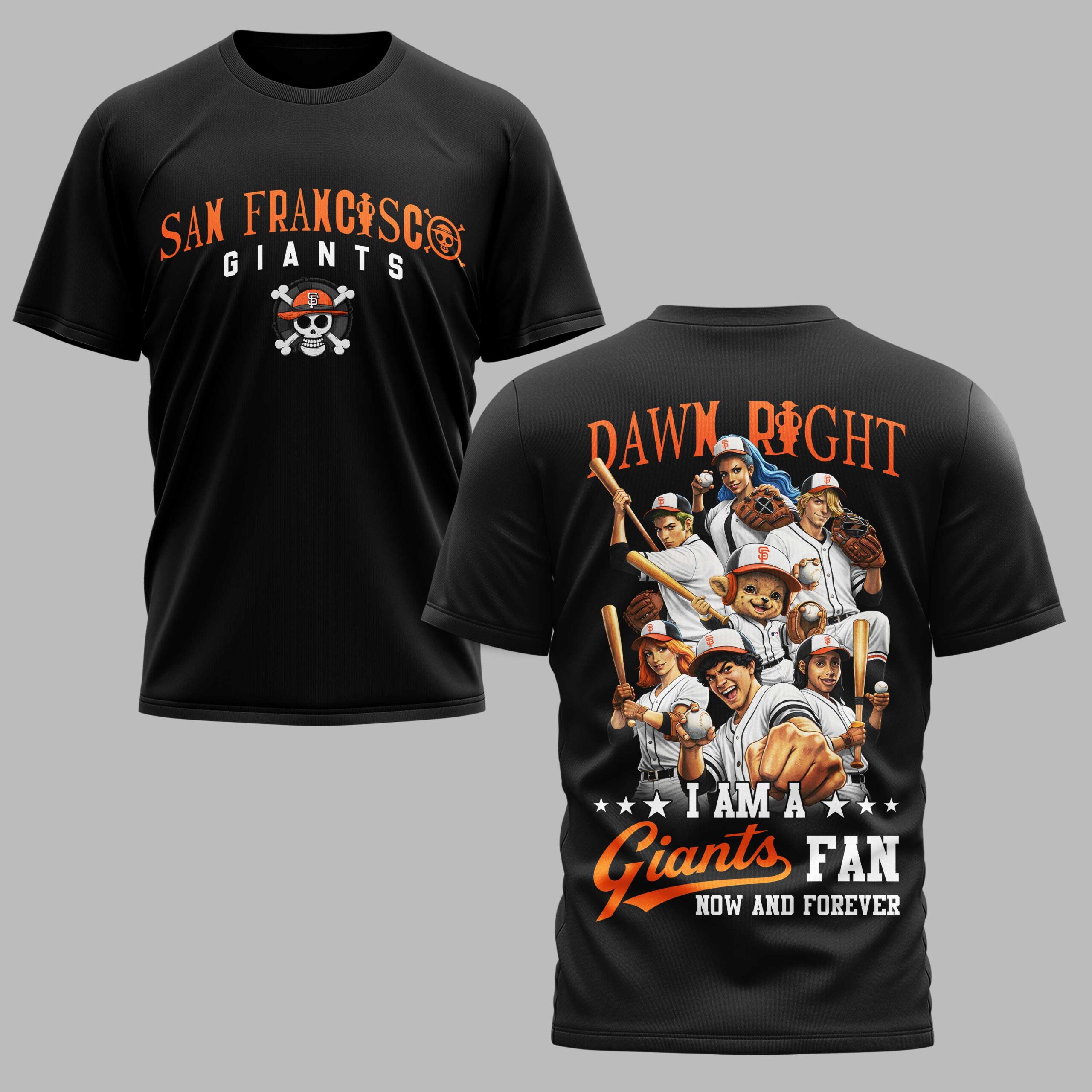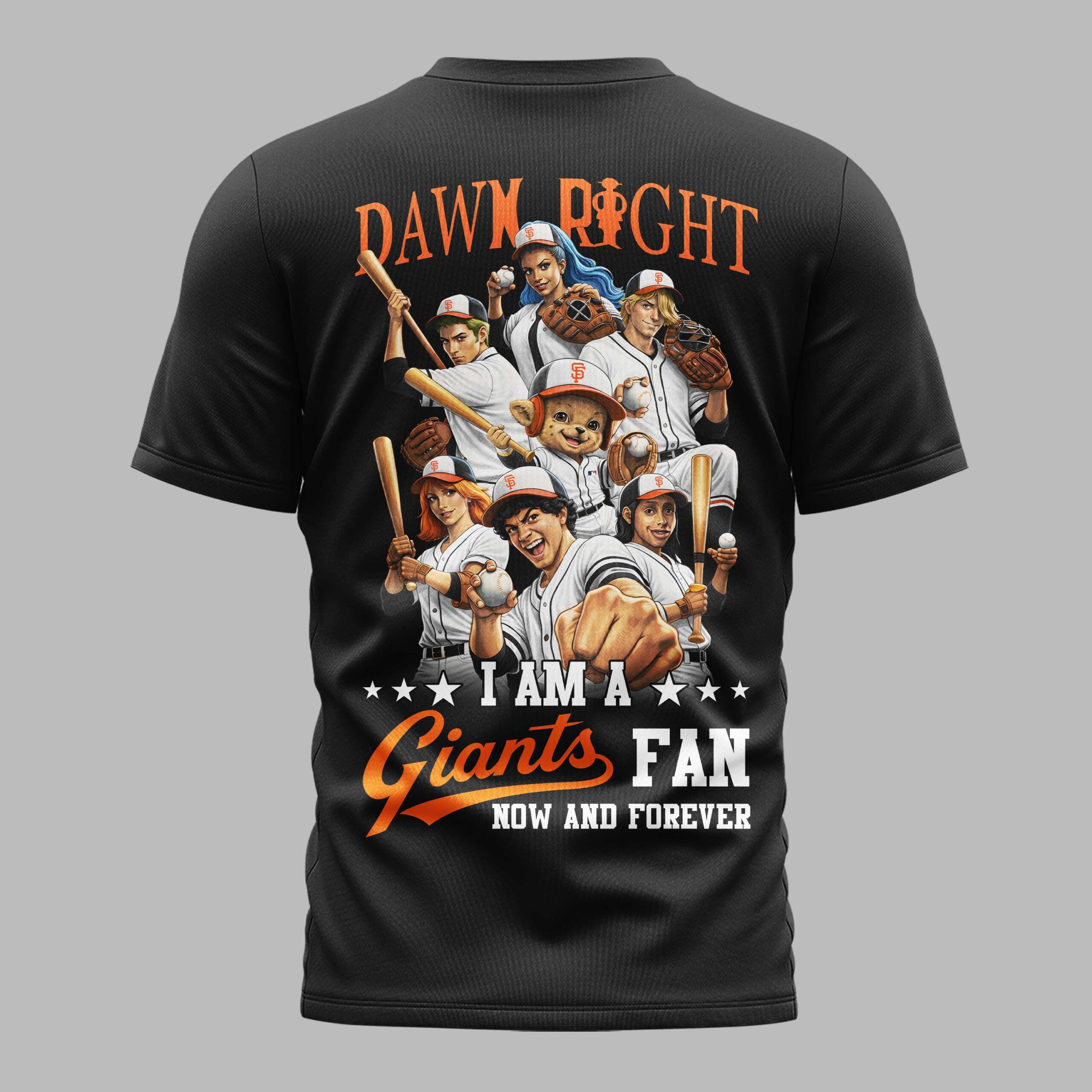 Declare your unwavering loyalty to the San Francisco Giants with this energetic fan tee! Perfect for true devotees, this shirt celebrates the spirit of the game and your deep-seated pride for the team, letting everyone know where your baseball heart truly lies. It’s more than just apparel; it’s a statement of passion for the orange and black. The front proudly displays SAN FRANCISCO GIANTS alongside a unique skull and crossbones emblem, featuring a Giants cap and crossed bats for an edgy, dedicated look. The back erupts with enthusiasm, showcasing DAWN RIGHT above a dynamic illustration of diverse, cheering Giants fans, complete with a spirited bear mascot, all ready for game day. Below this vibrant scene, I AM A ★★★★★ Giants FAN NOW AND FOREVER seals your commitment. Whether you’re catching a game at Oracle Park, hosting a watch party, or simply out and about, this T-shirt is the ultimate way to display your Giants devotion. Wear it to feel connected to the crowd, ignite conversations, and champion your team with every step.