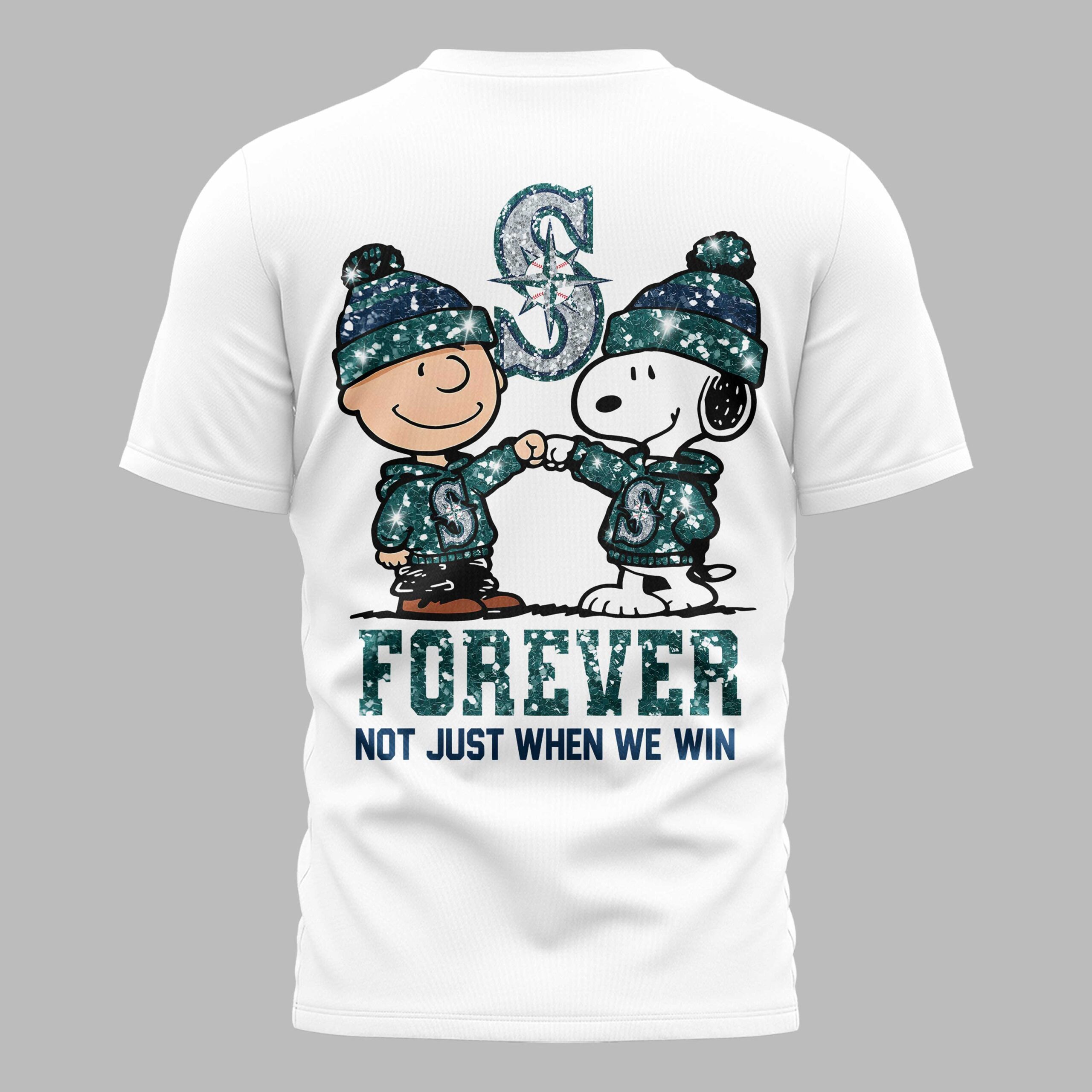 Seattle Mariners “FOREVER – Not Just When We Win” Snoopy & Charlie Glitter Friendship Premium T-Shirt PH00002