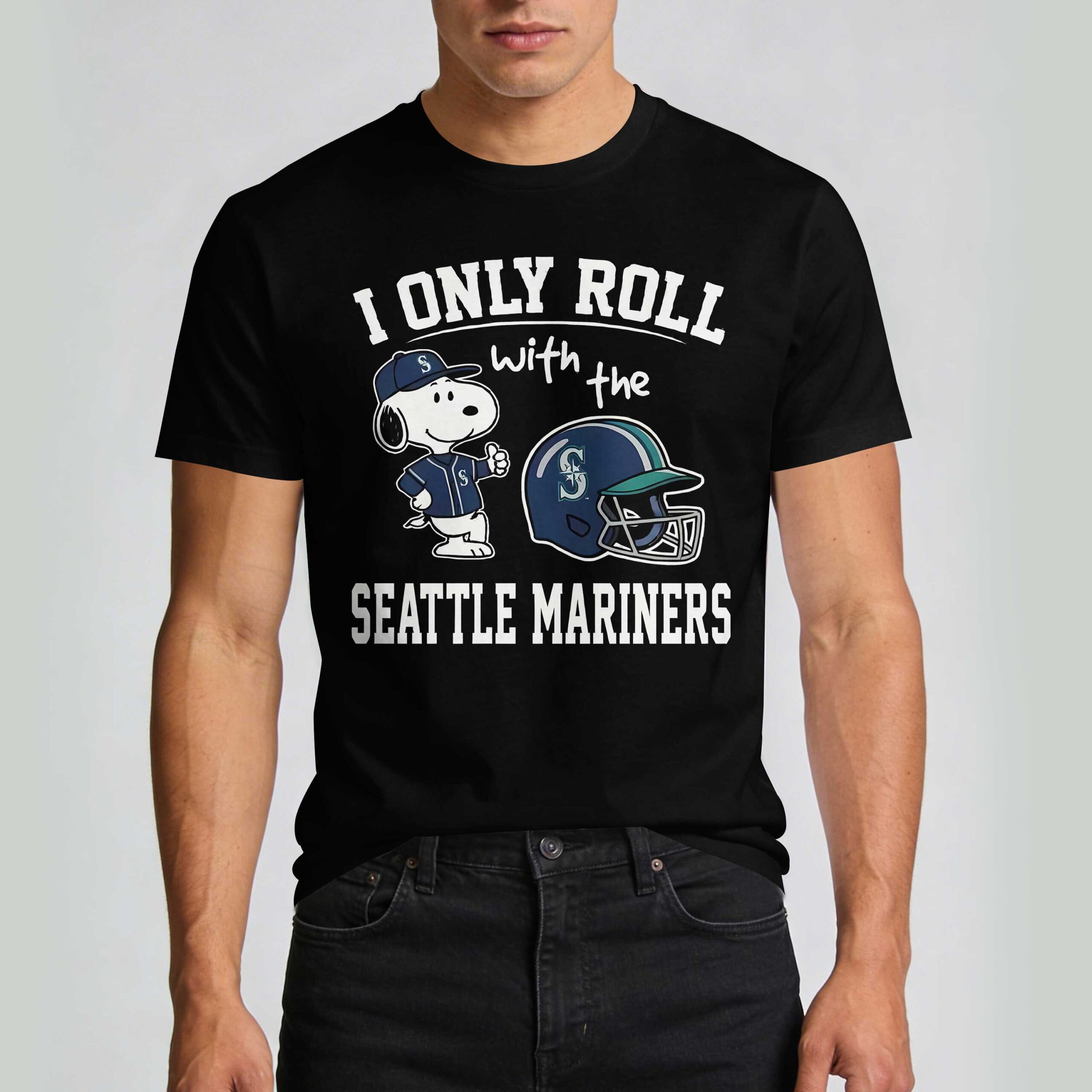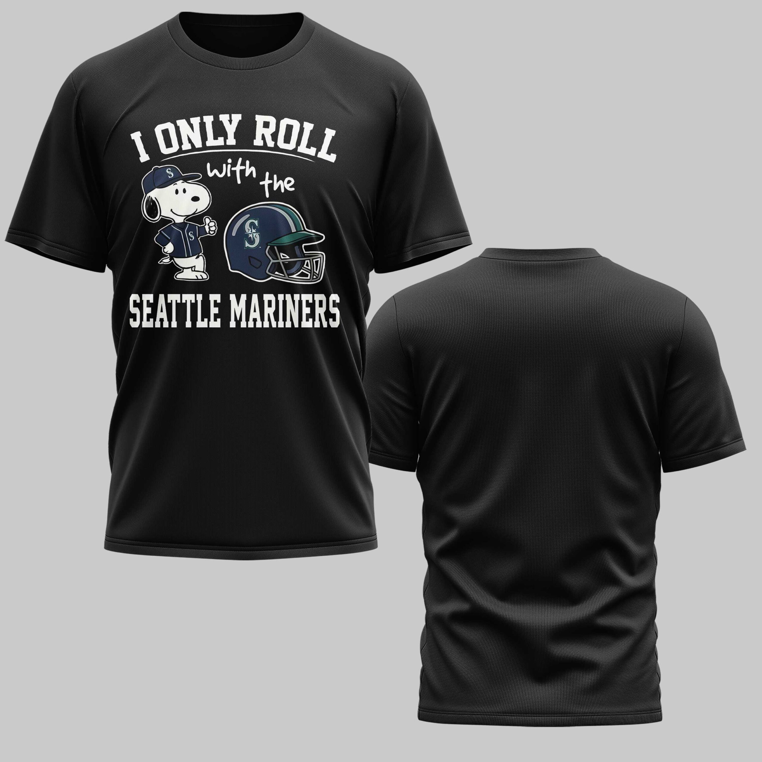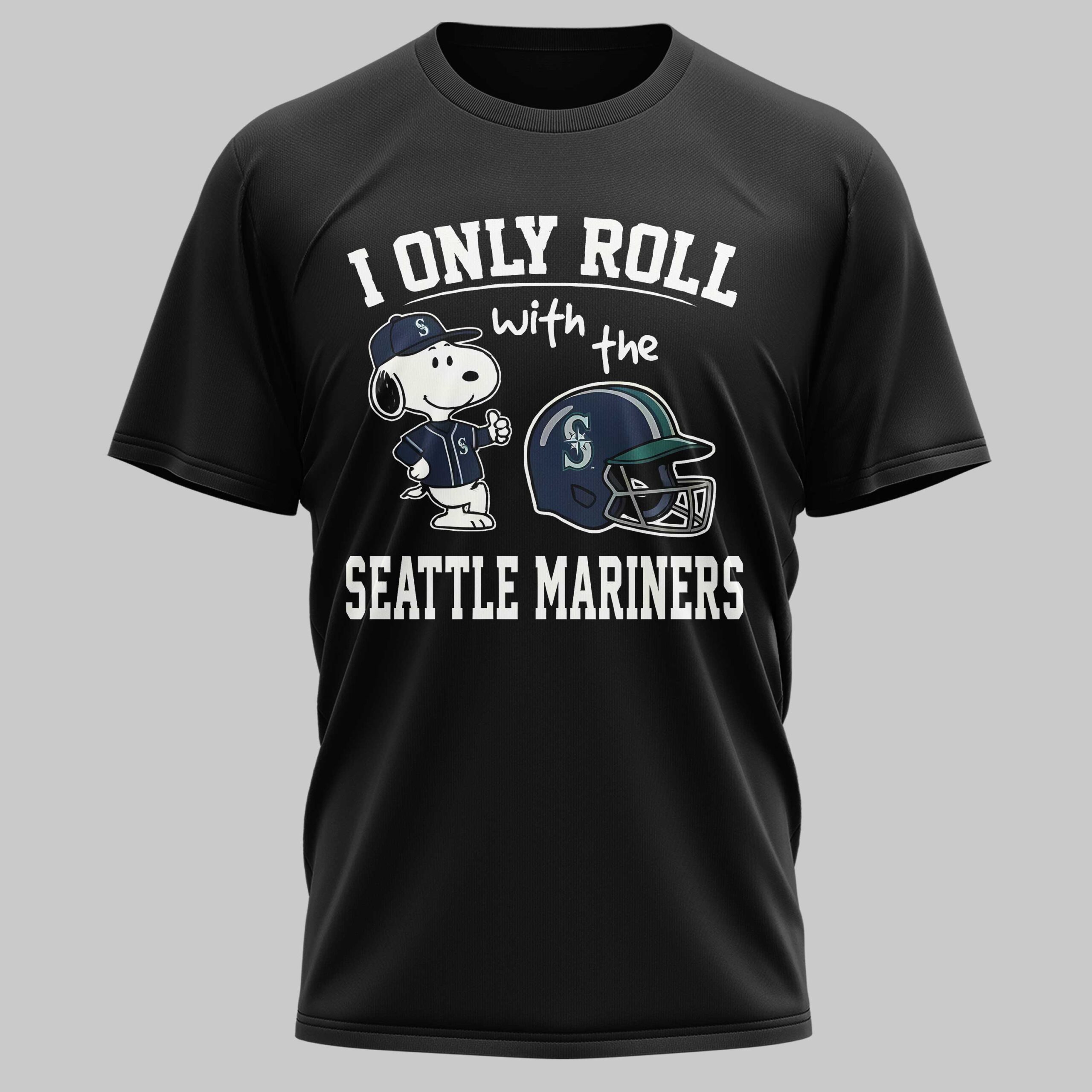 Show off your Seattle Mariners pride and celebrate American tradition with this one-of-a-kind fan tee. Combining your love for the M’s with a patriotic spirit, this shirt is designed for fans who stand tall for their team and their country. It’s a bold way to honor the game’s place in American culture while cheering for Seattle. The design features everyone’s favorite beagle, Snoopy, sporting a Mariners uniform and giving a confident thumbs up. Beside him sits a detailed Seattle Mariners batting helmet, complete with the iconic team logo. The front is tied together with the spirited declaration, “I ONLY ROLL with the SEATTLE MARINERS,” while the back is left sleek and unadorned for a modern look. Perfect for game days at the stadium, Independence Day celebrations, or casual outings, this shirt lets you represent Seattle with energy. Whether you’re at a tailgate or a backyard BBQ, it’s a must-have for any fan who wants to showcase their team spirit and American pride all season long.
