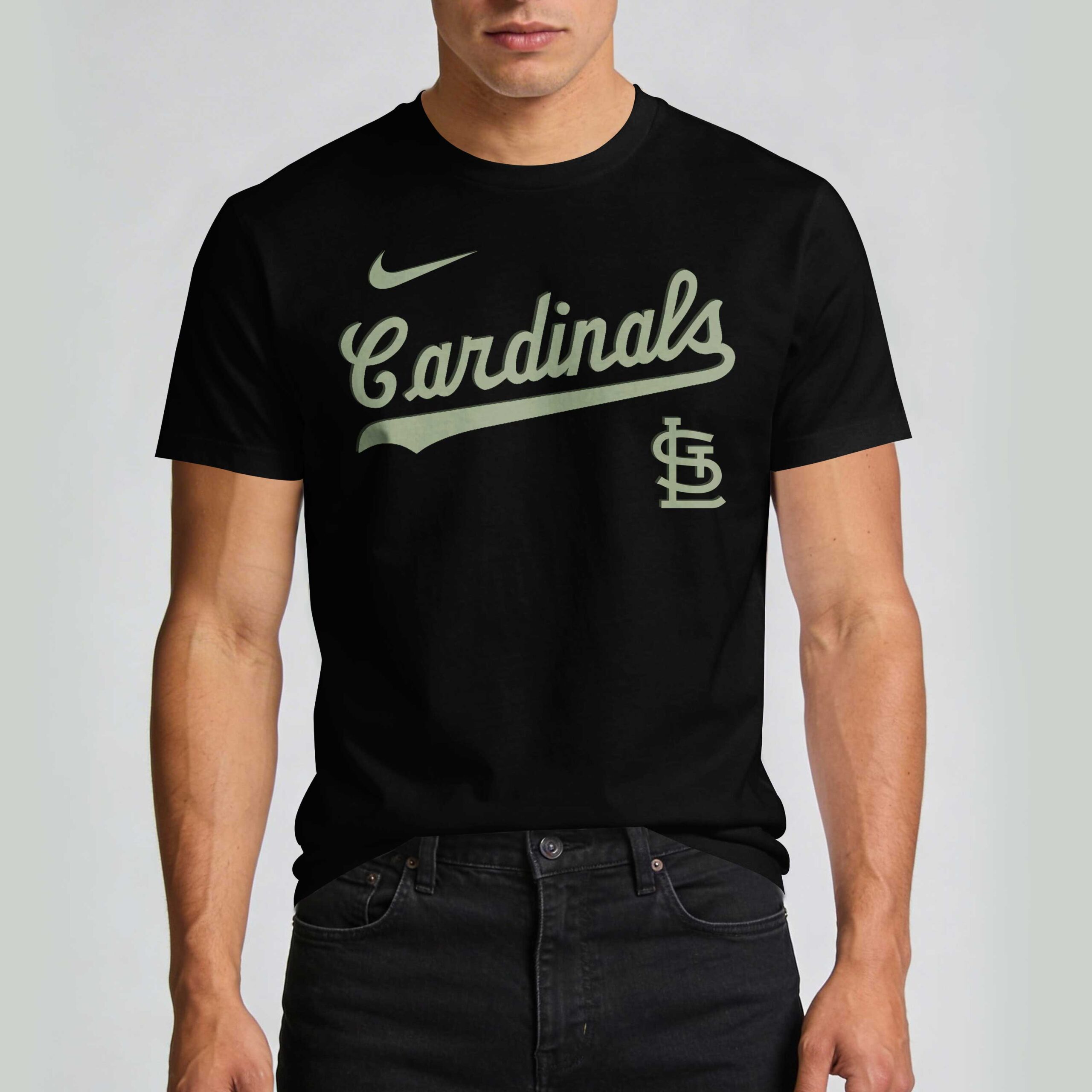 Show off your unwavering loyalty to the Redbirds while honoring the nation’s heroes with this special edition Cardinals t-shirt. Blending St. Louis pride with a powerful patriotic theme, this shirt is perfect for fans who stand tall for their team and their country. Whether you’re at the stadium or celebrating a national milestone, this gear makes a bold statement of respect. The front features the classic Cardinals script and iconic STL logo in rugged tactical green. The back displays a detailed bird-on-bat logo inside a shielded stars-and-stripes backdrop. Surrounding the center are the official seals of the US Armed Forces, including the Army and Navy, highlighted by Military Appreciation Month text to create a comprehensive tribute. Wear this to the ballpark, Independence Day celebrations, or any military appreciation event. It’s the ideal choice for everyday wear to showcase St. Louis spirit alongside American pride. Represent the Cardinals with a design that honors both baseball tradition and national service.