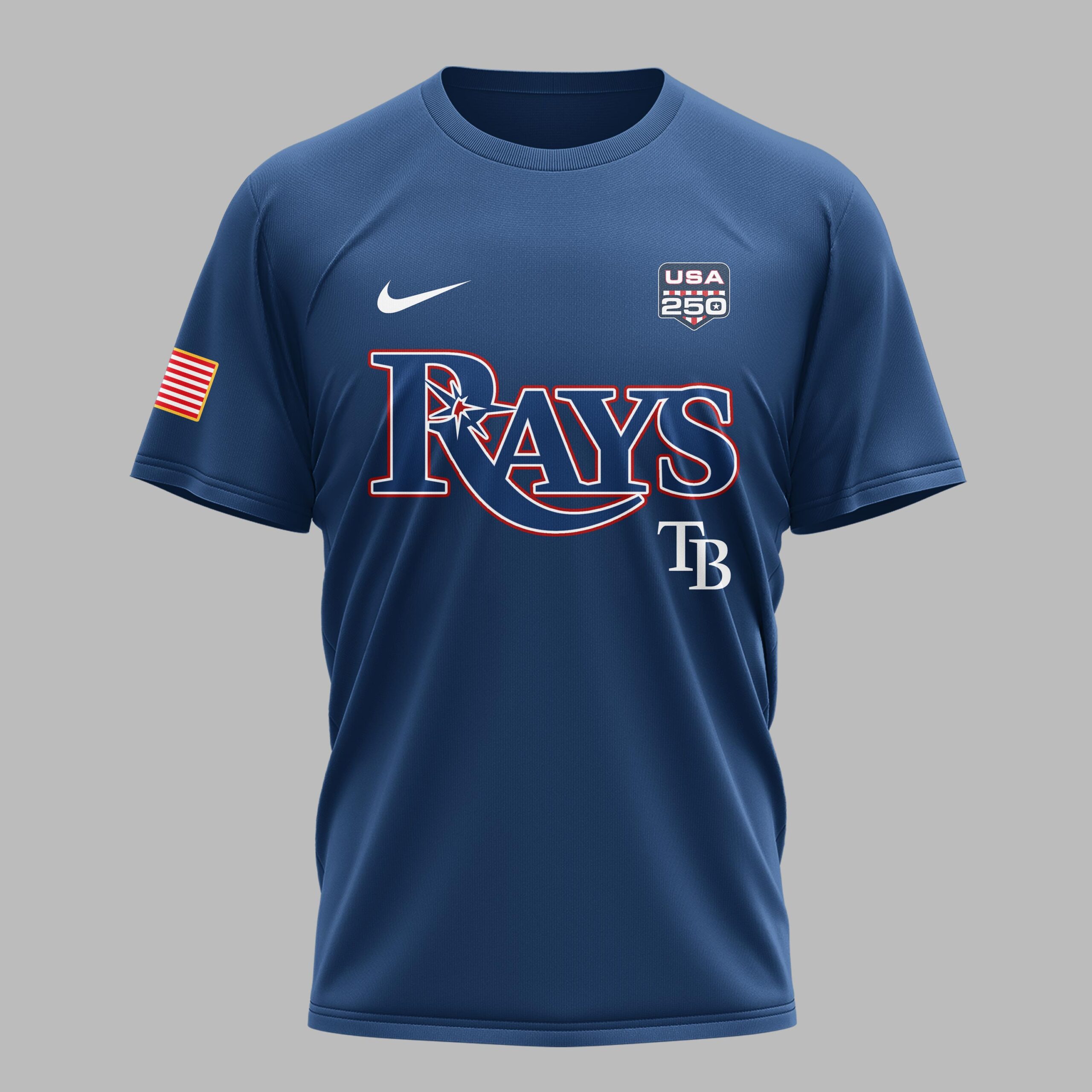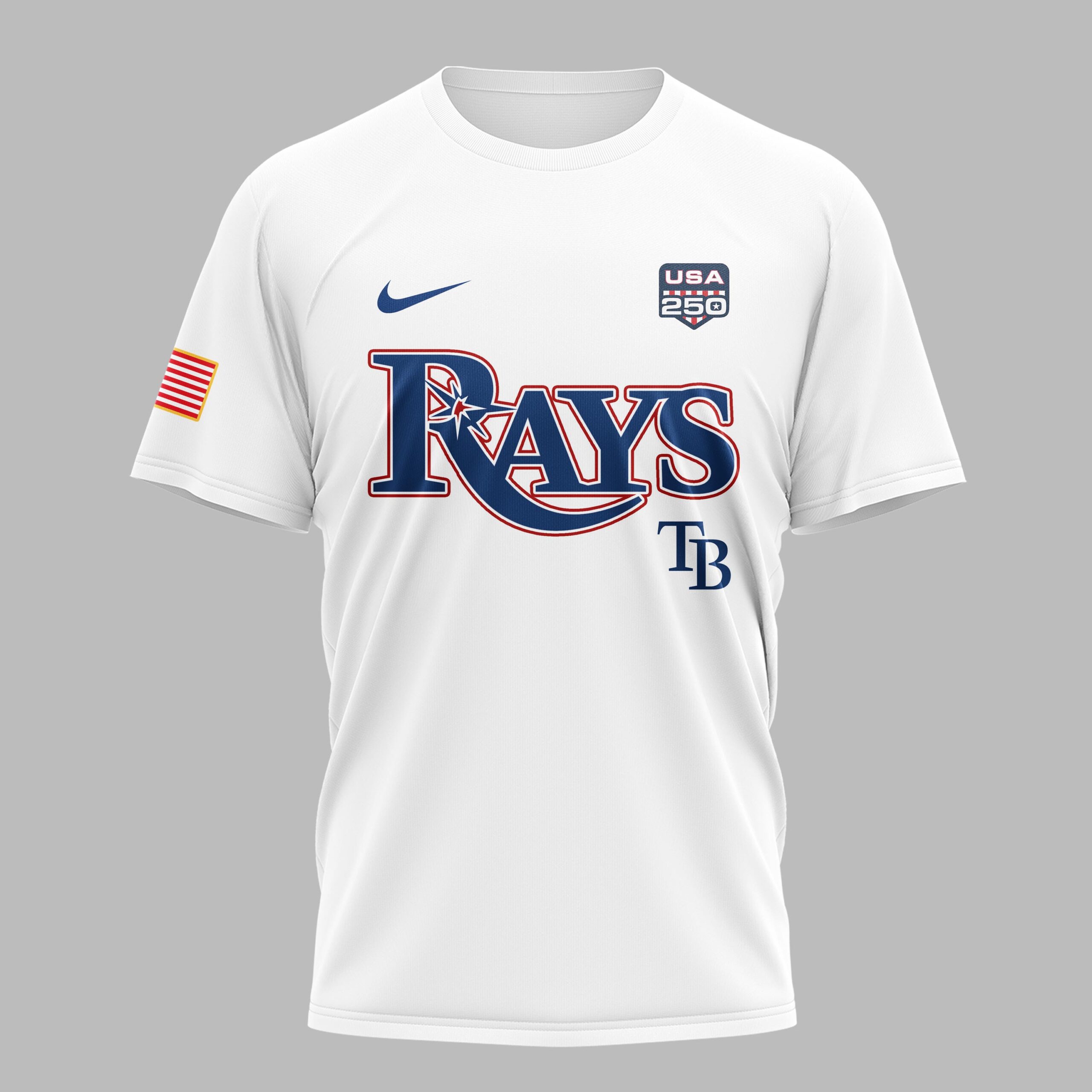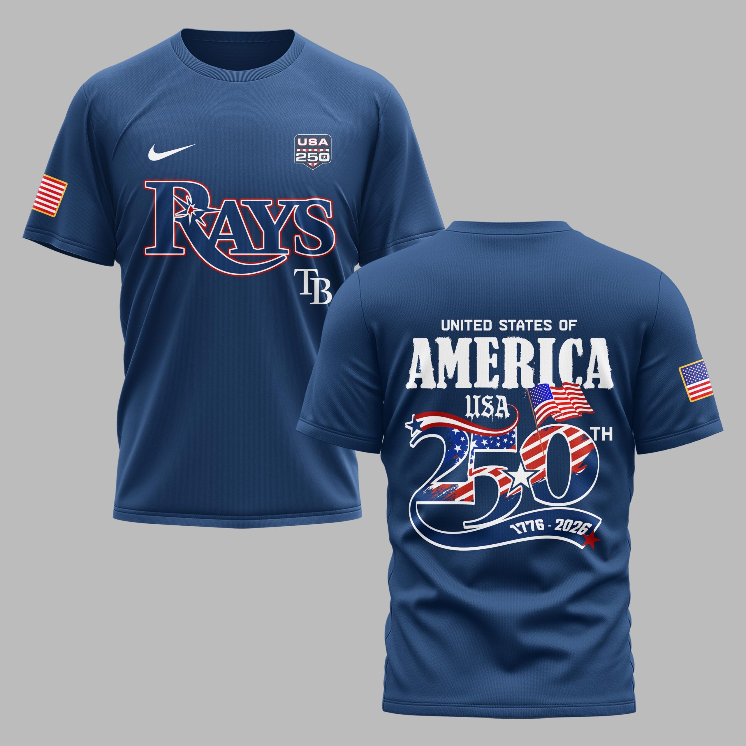 Show off your Tampa Bay Rays pride while honoring a historic American milestone with this special edition fan tee. This shirt perfectly blends your passion for baseball with a deep sense of national spirit, celebrating the upcoming 250th anniversary of the United States. It is the ultimate way for Rays fans to show they are proud of their team and their country in one striking design. The front features the iconic Rays script logo in a bold navy and red palette, accented by the official USA 250 emblem and the TB mark. The back reveals a stunning graphic showcasing United States of America and a large, stylized 250th design filled with patriotic stars and stripes. With American flag details on the sleeves and the 1776-2026 commemorative banner, every detail is crafted for the ultimate fan. This shirt is perfect for game days at the ballpark, Independence Day celebrations, or everyday wear. Wear it with pride to celebrate the nation’s heritage while cheering on your favorite team all season long.