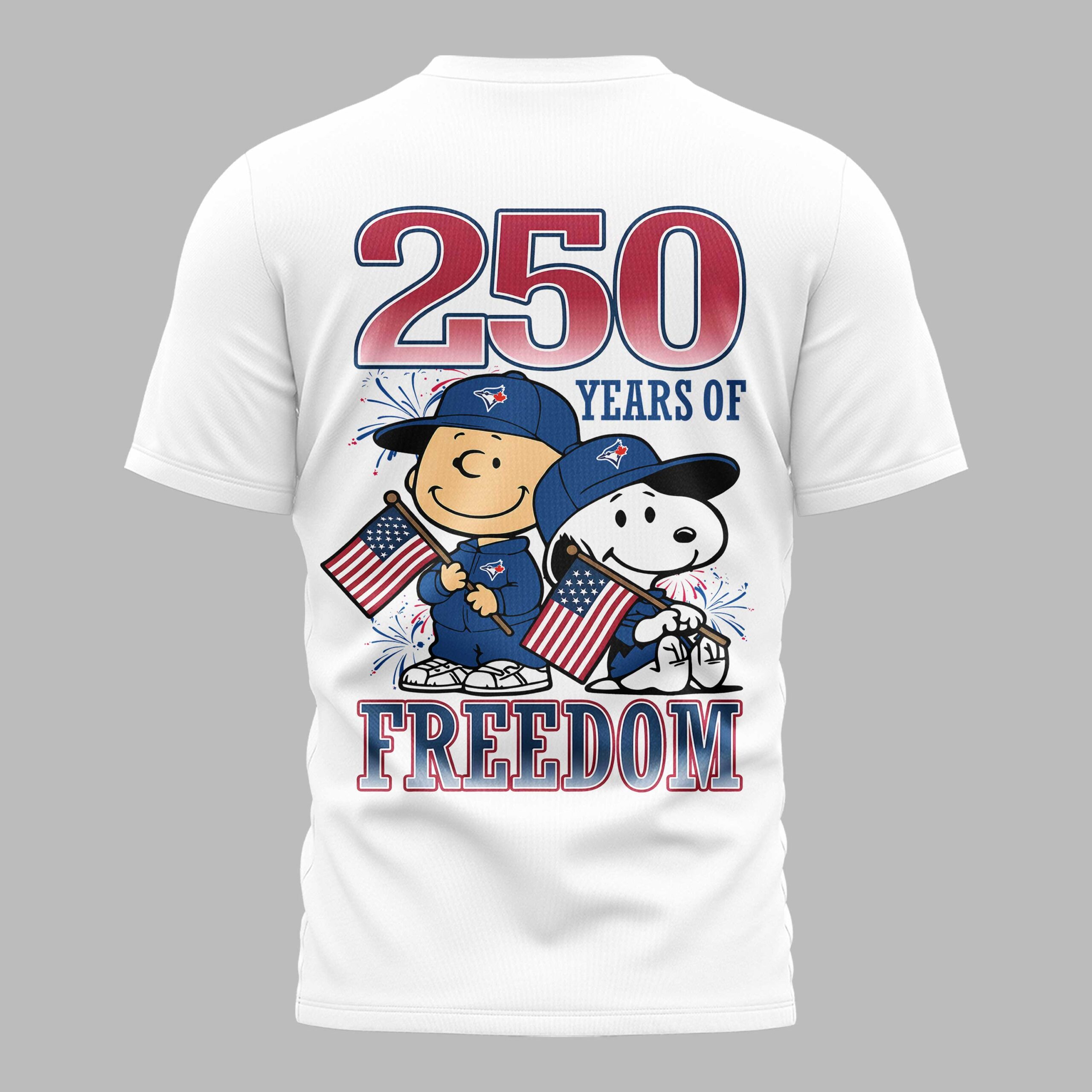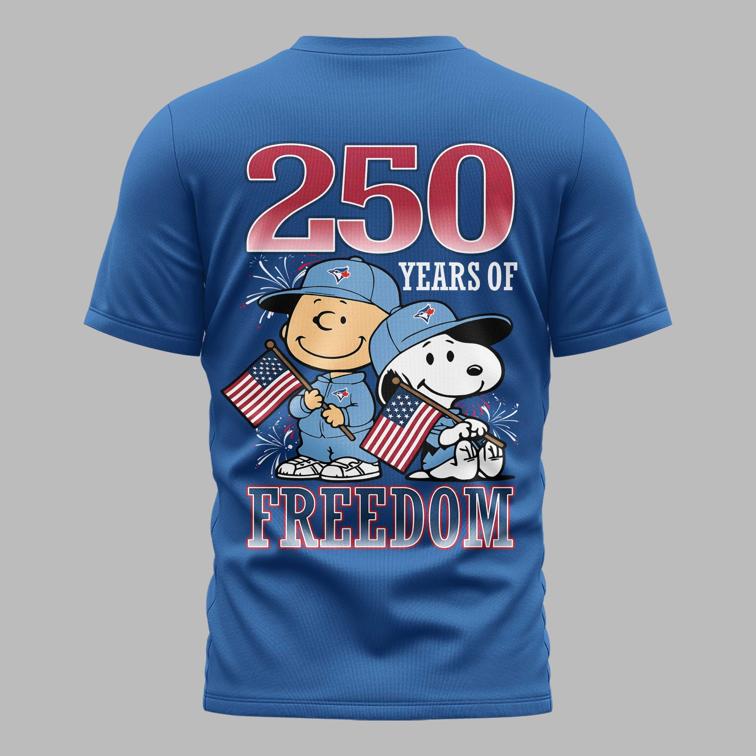 Toronto Blue Jays 250th Freedom Anniversary Snoopy & Charlie Friendship Premium T-Shirt PH00003