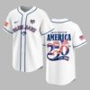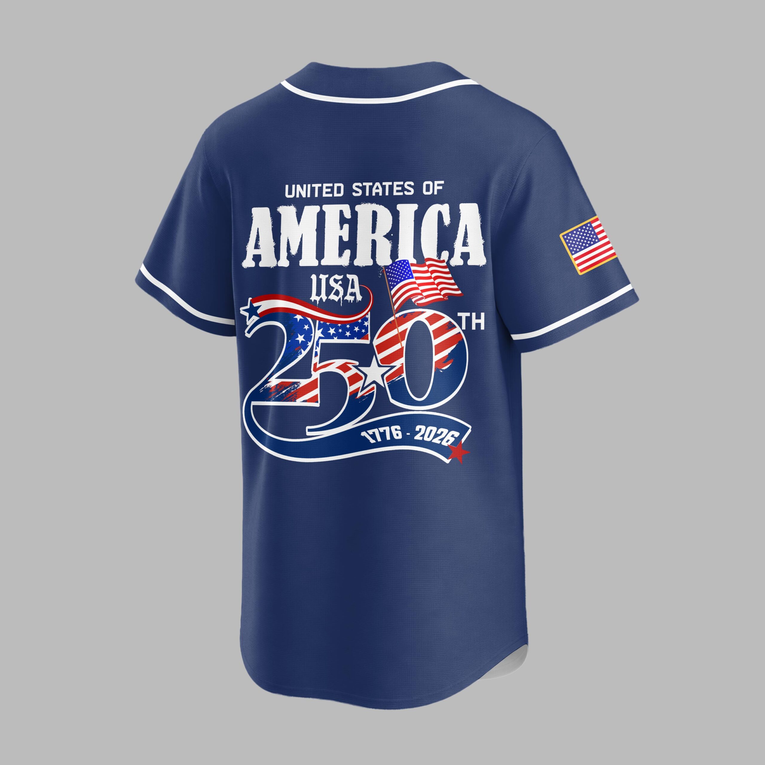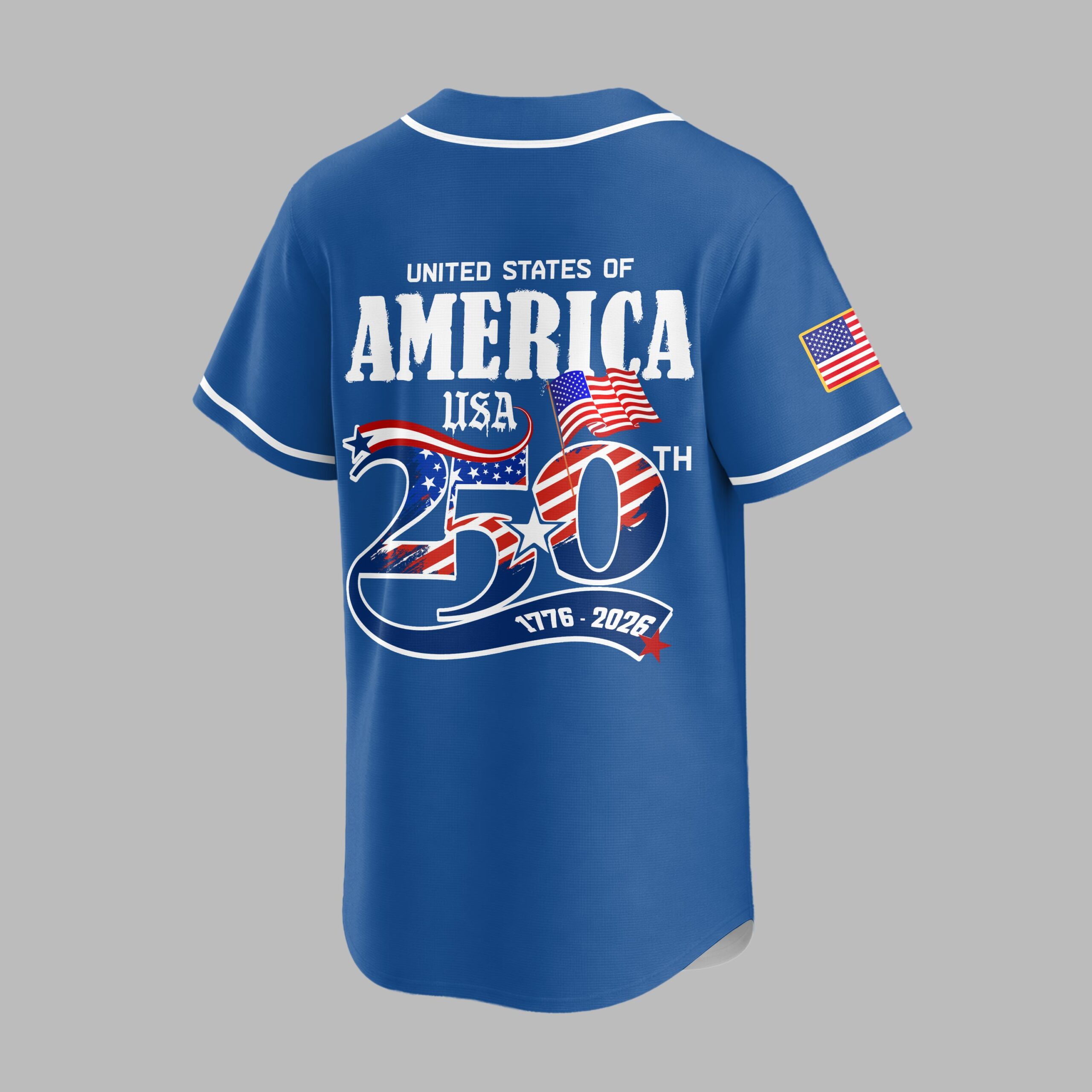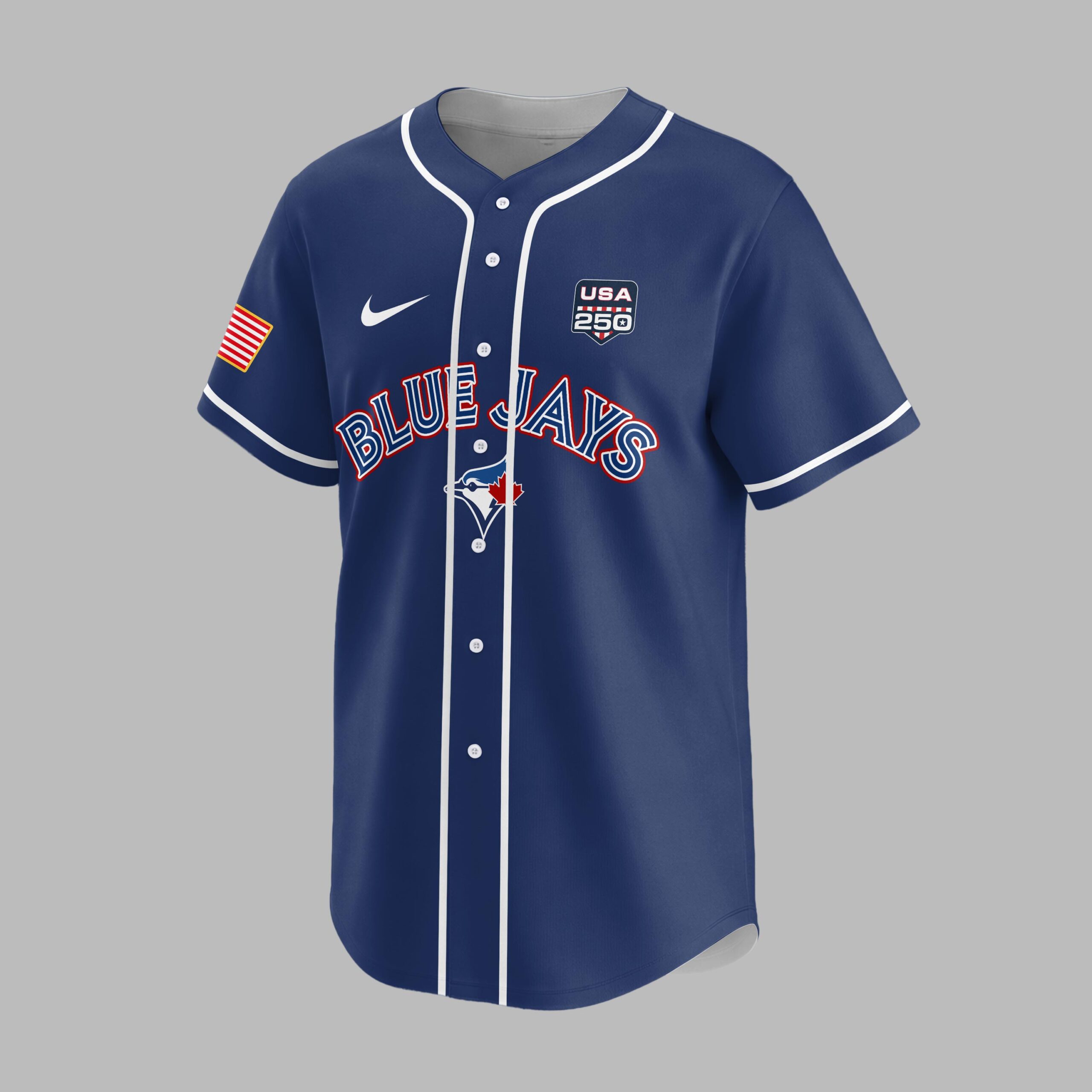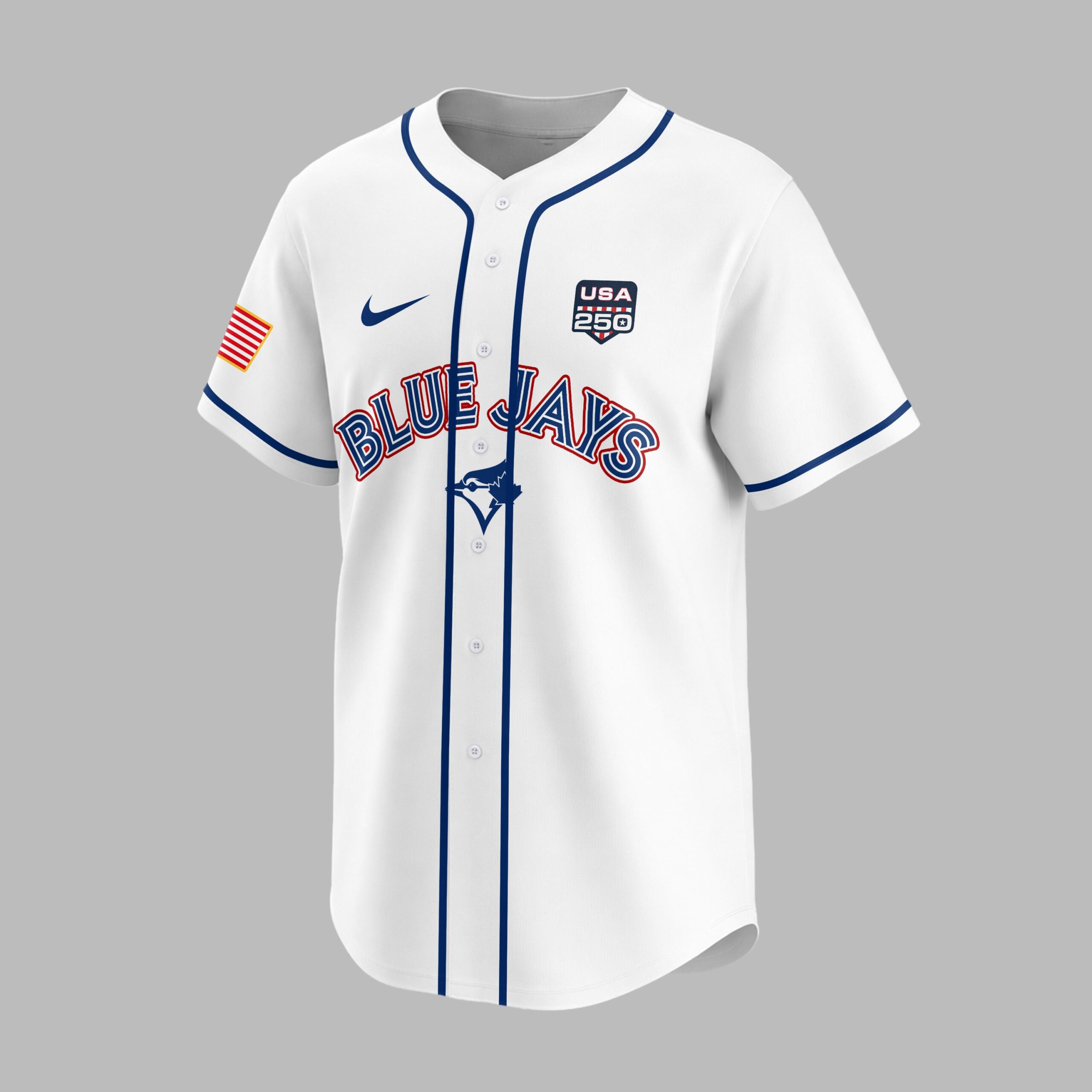 Celebrate a momentous milestone with this distinctive baseball jersey, uniting your love for the game and national pride. This special edition shirt honors the 250th anniversary of the United States, allowing you to showcase both your unwavering support for the Blue Jays and your American spirit. The front proudly displays BLUE JAYS alongside the iconic team logo, complemented by a patriotic USA 250 emblem and an American flag patch on the sleeve. The back is a powerful tribute, featuring UNITED STATES OF AMERICA above a striking USA 250TH graphic, where the numbers are infused with the stars and stripes. The dates 1776 – 2026 are elegantly presented below, flanked by waving American flags. Perfect for game days, Fourth of July celebrations, or any patriotic event, this jersey is a bold statement. Wear it to rallies, parades, or simply as everyday attire to commemorate a significant chapter in American history while cheering on your favorite team.